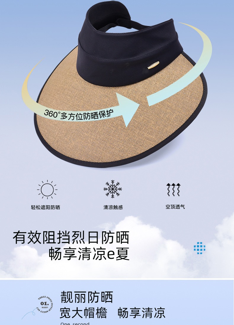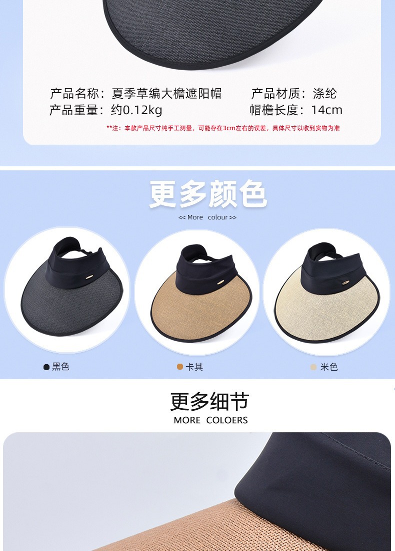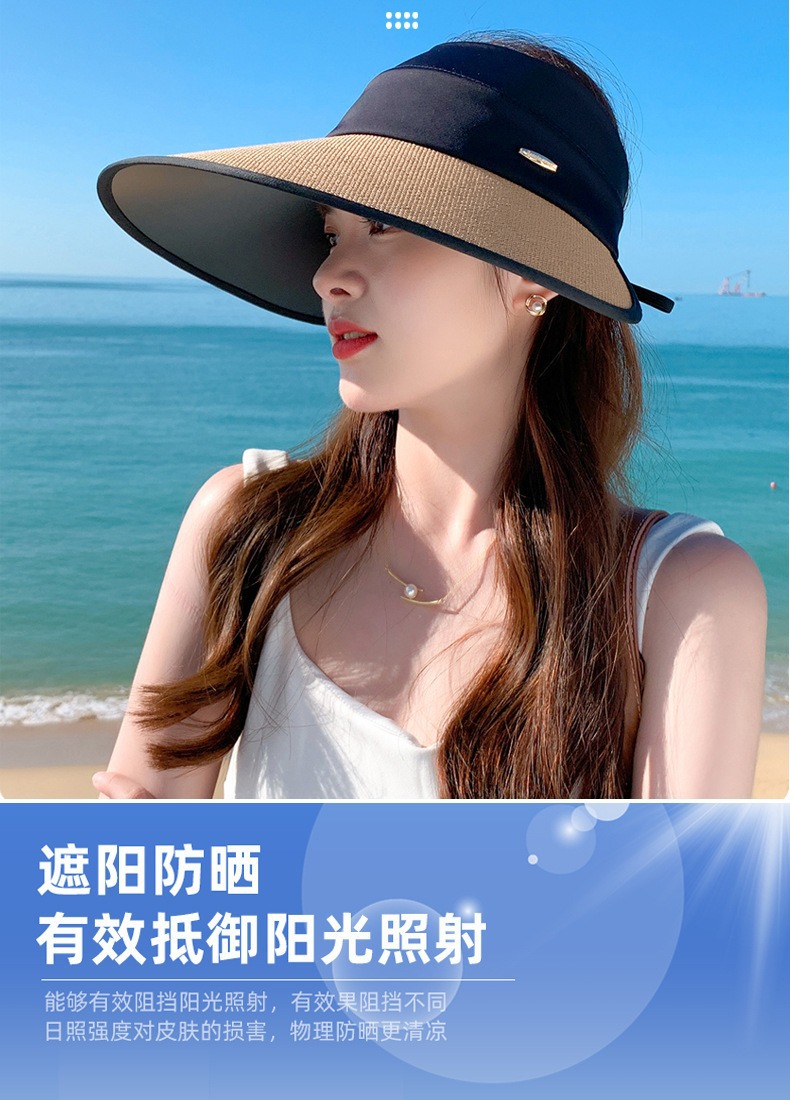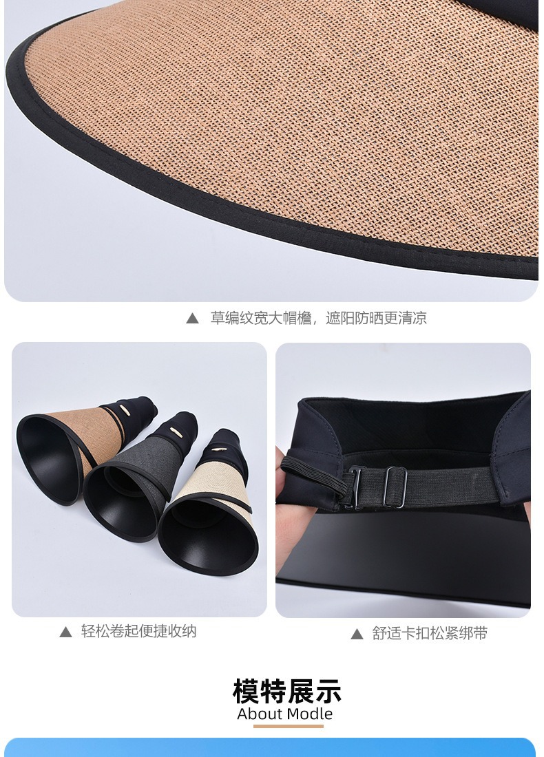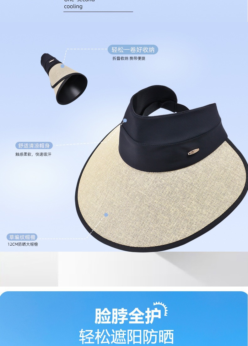 草编遮阳帽女夏季大檐遮脸防晒太阳帽出游黑胶时尚休闲空顶户外