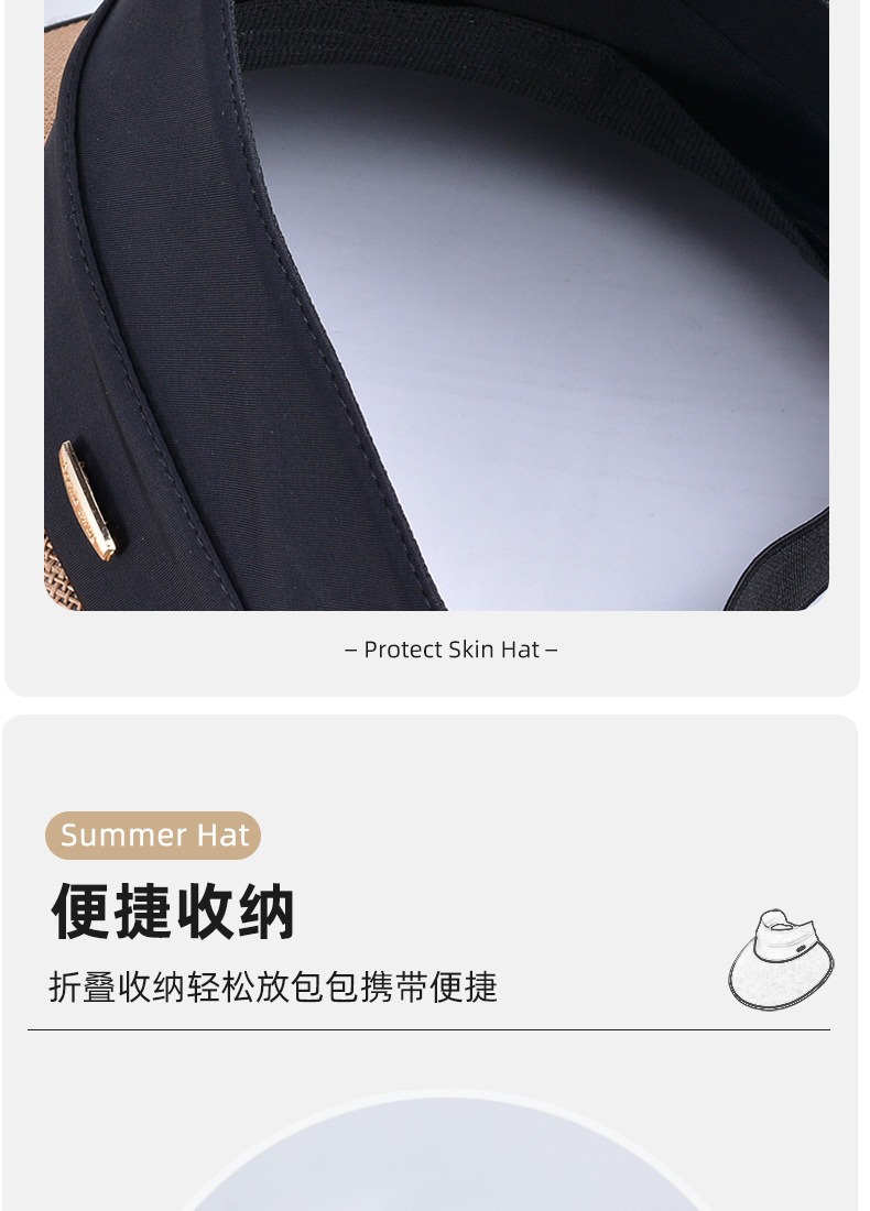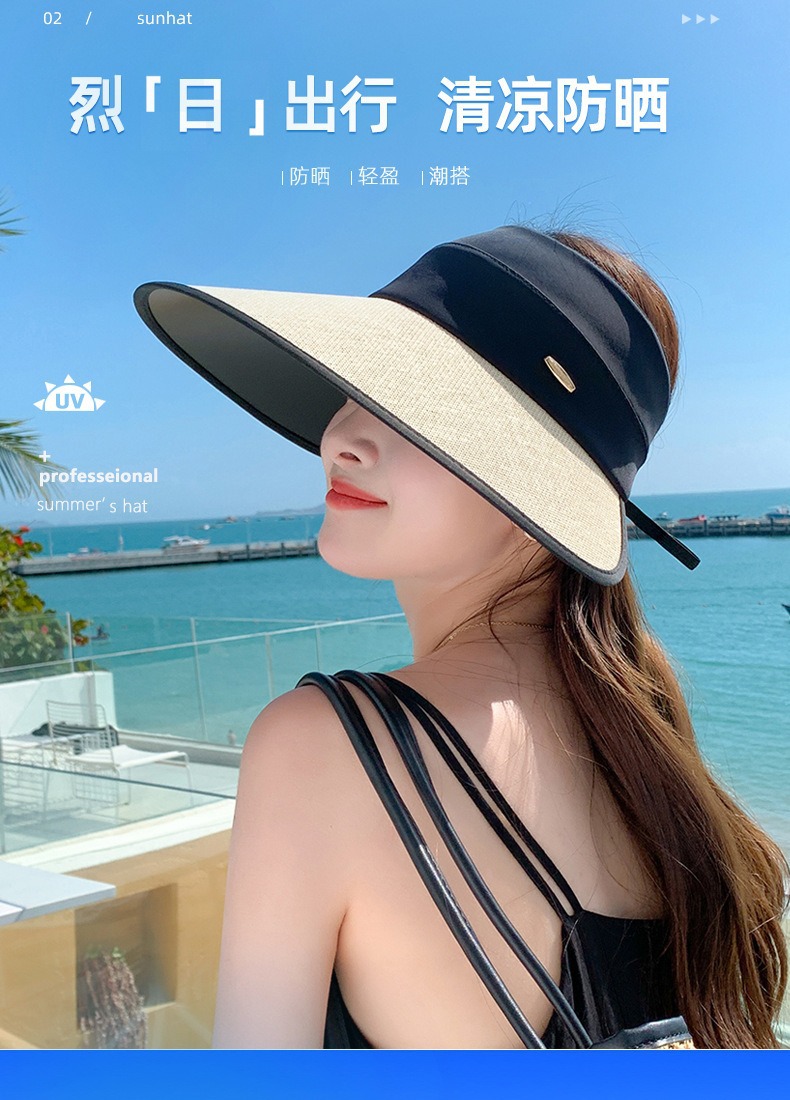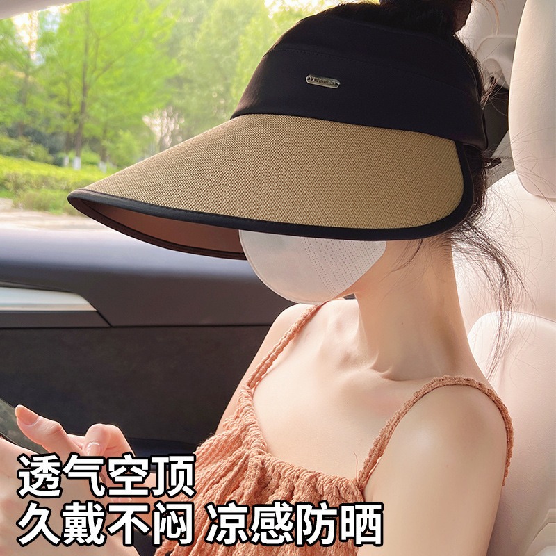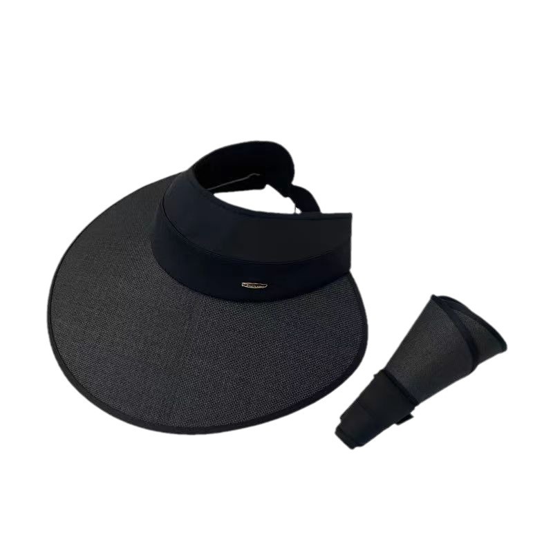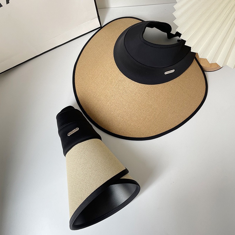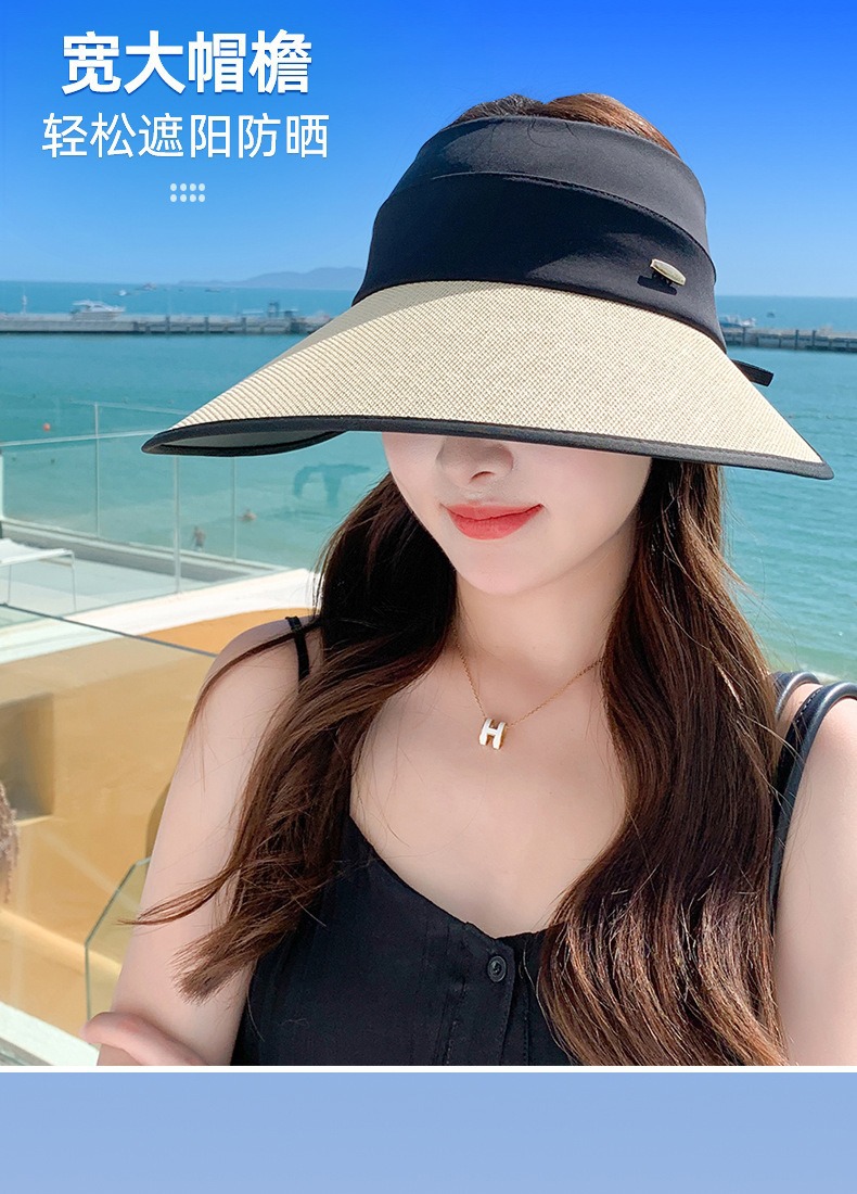 草编遮阳帽女夏季大檐遮脸防晒太阳帽出游黑胶时尚休闲空顶户外