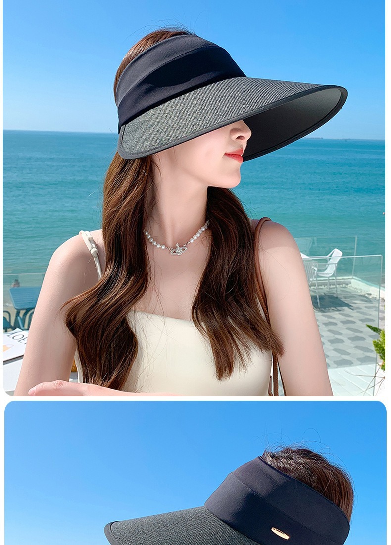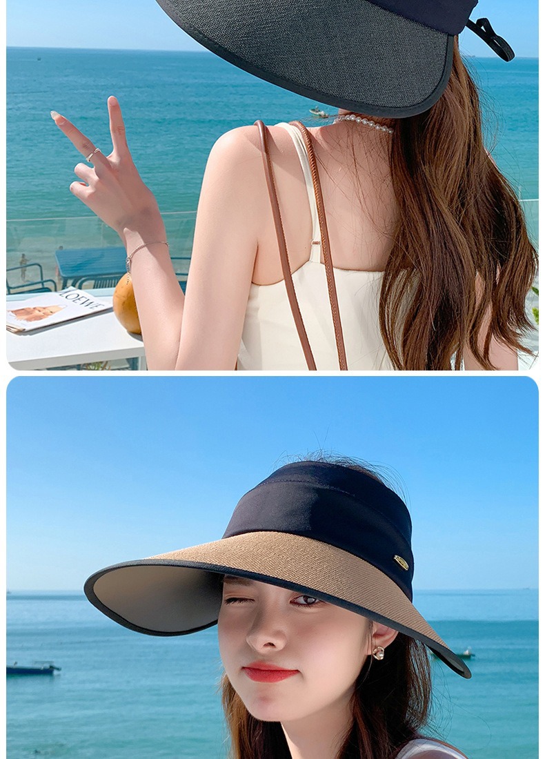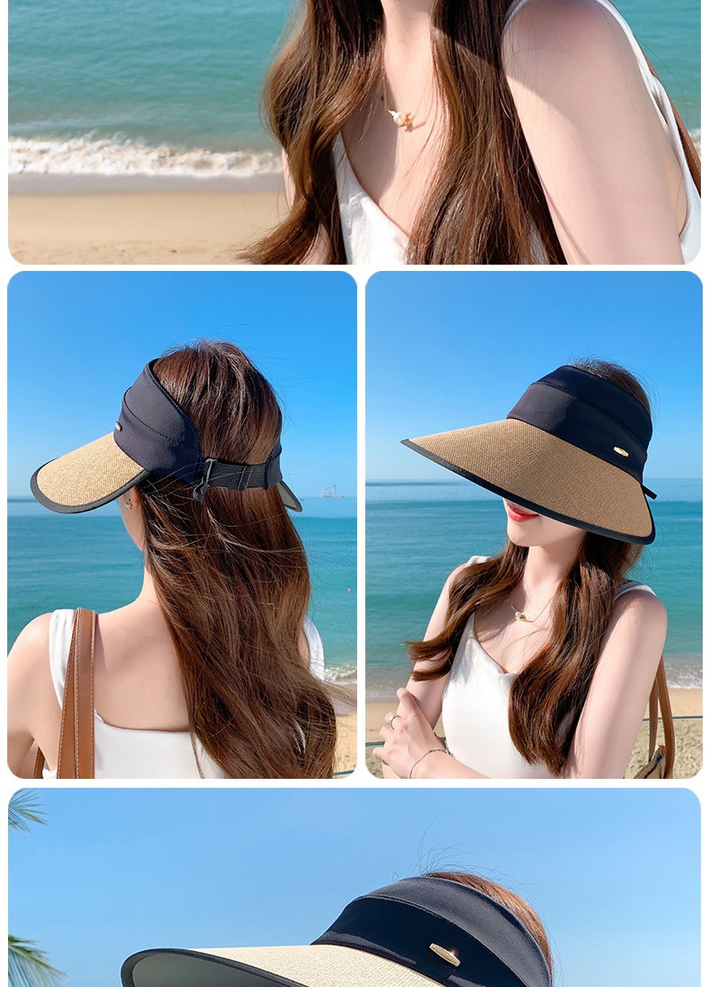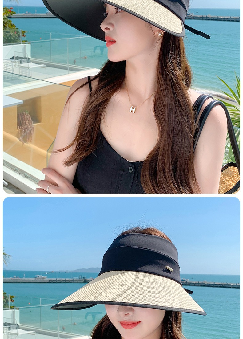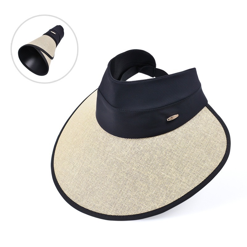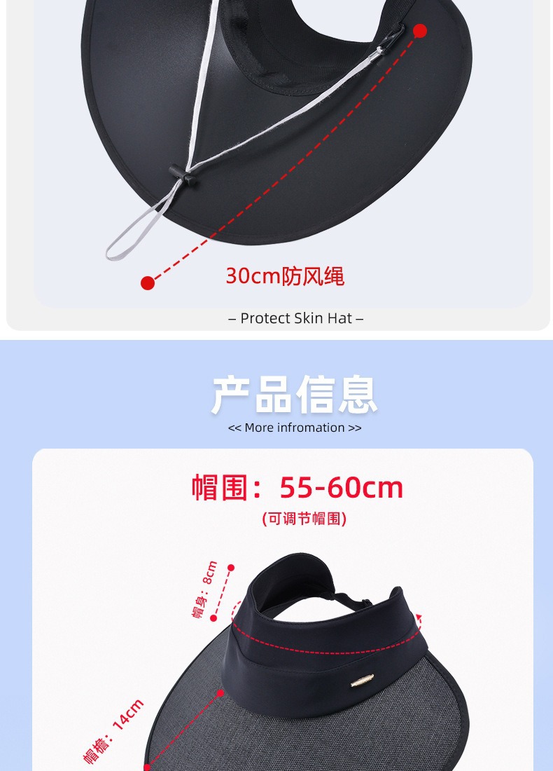 草编遮阳帽女夏季大檐遮脸防晒太阳帽出游黑胶时尚休闲空顶户外