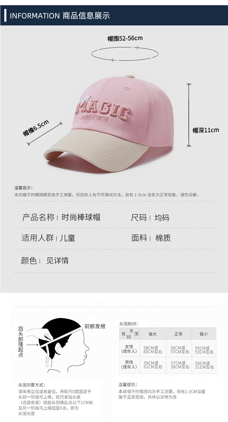 儿童款鸭舌帽美式复古撞色字母棒球帽子男款百搭显脸小春秋帽子女