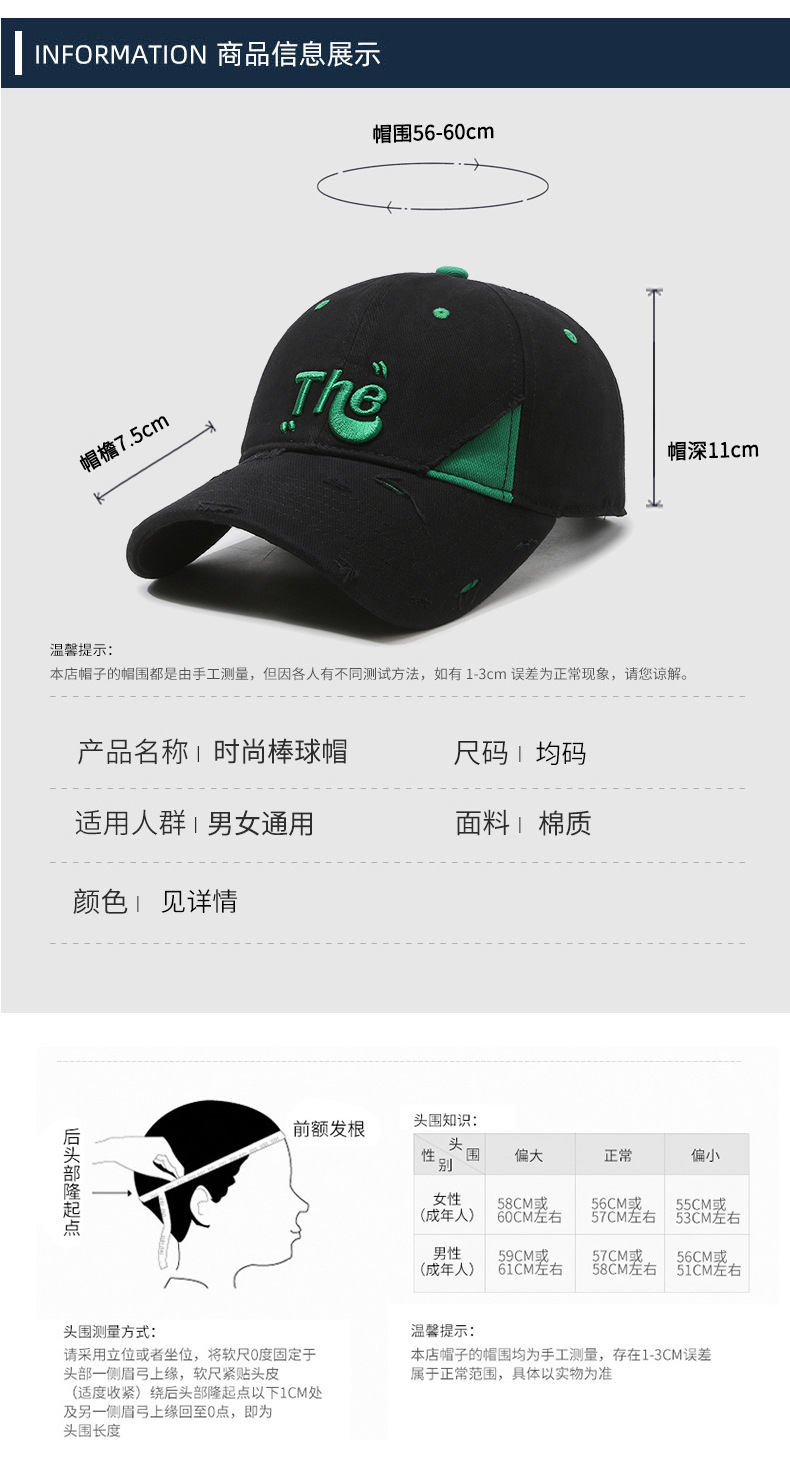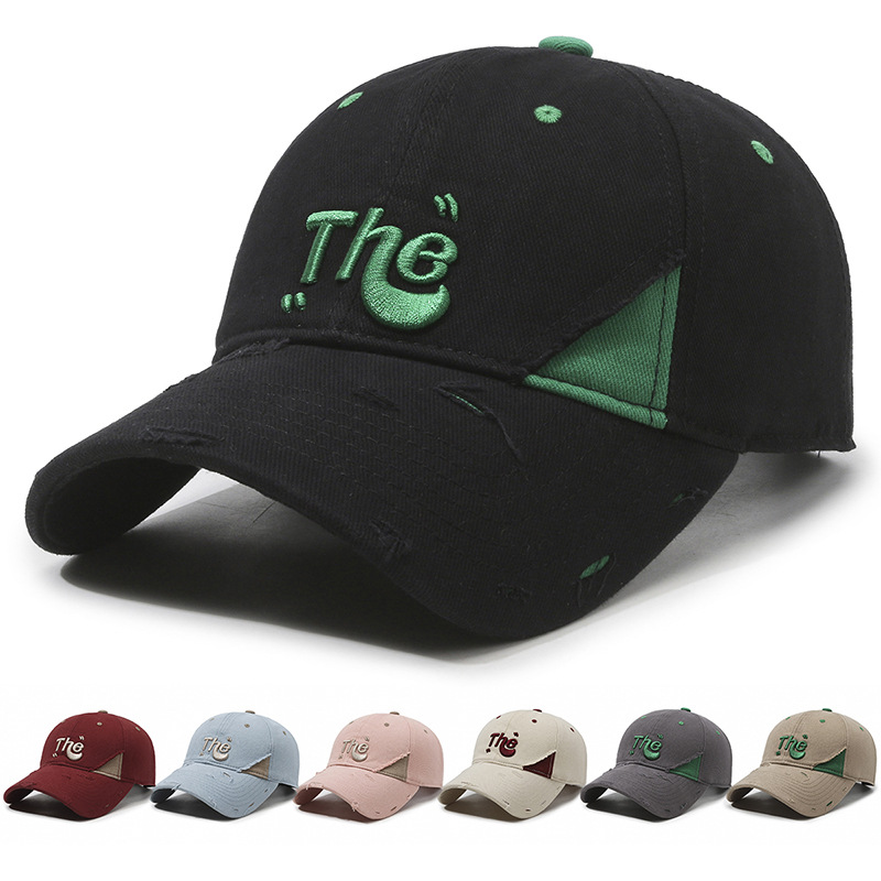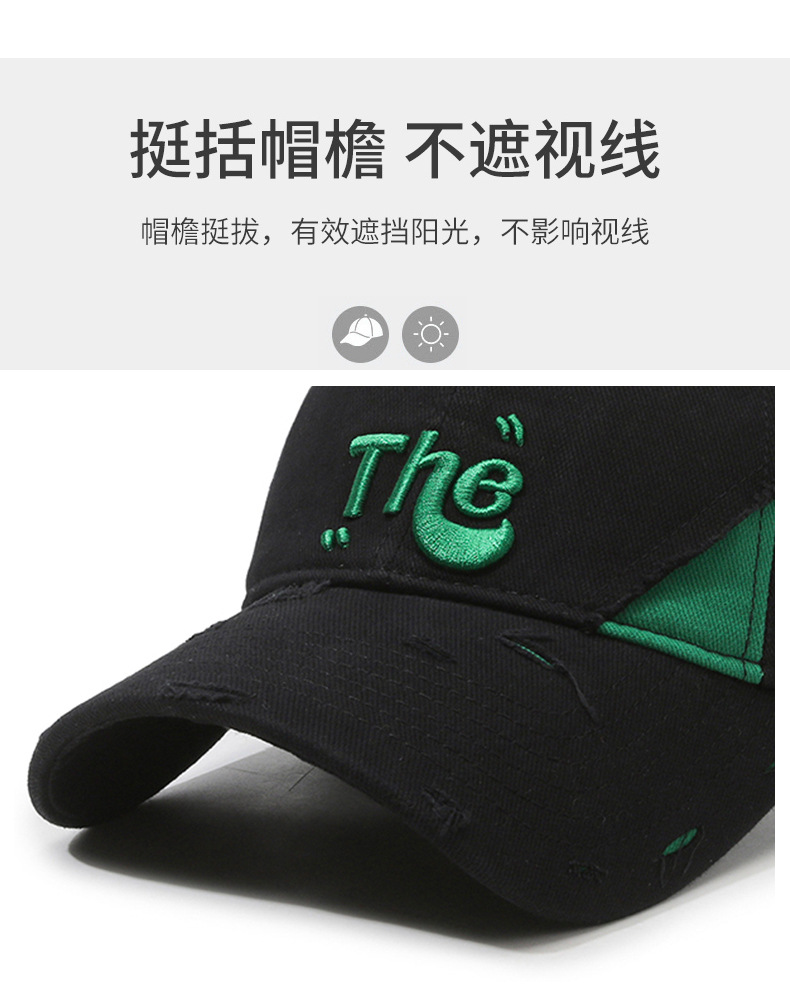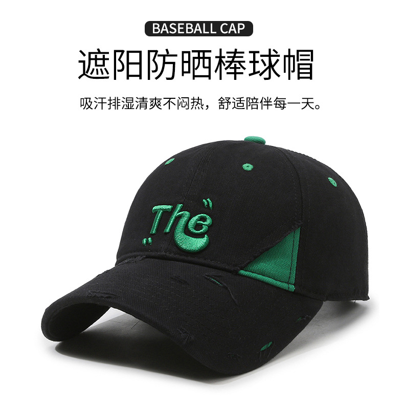 男女破洞拼接街头日韩时尚潮流百搭户外休闲简约ins风鸭舌棒球帽
