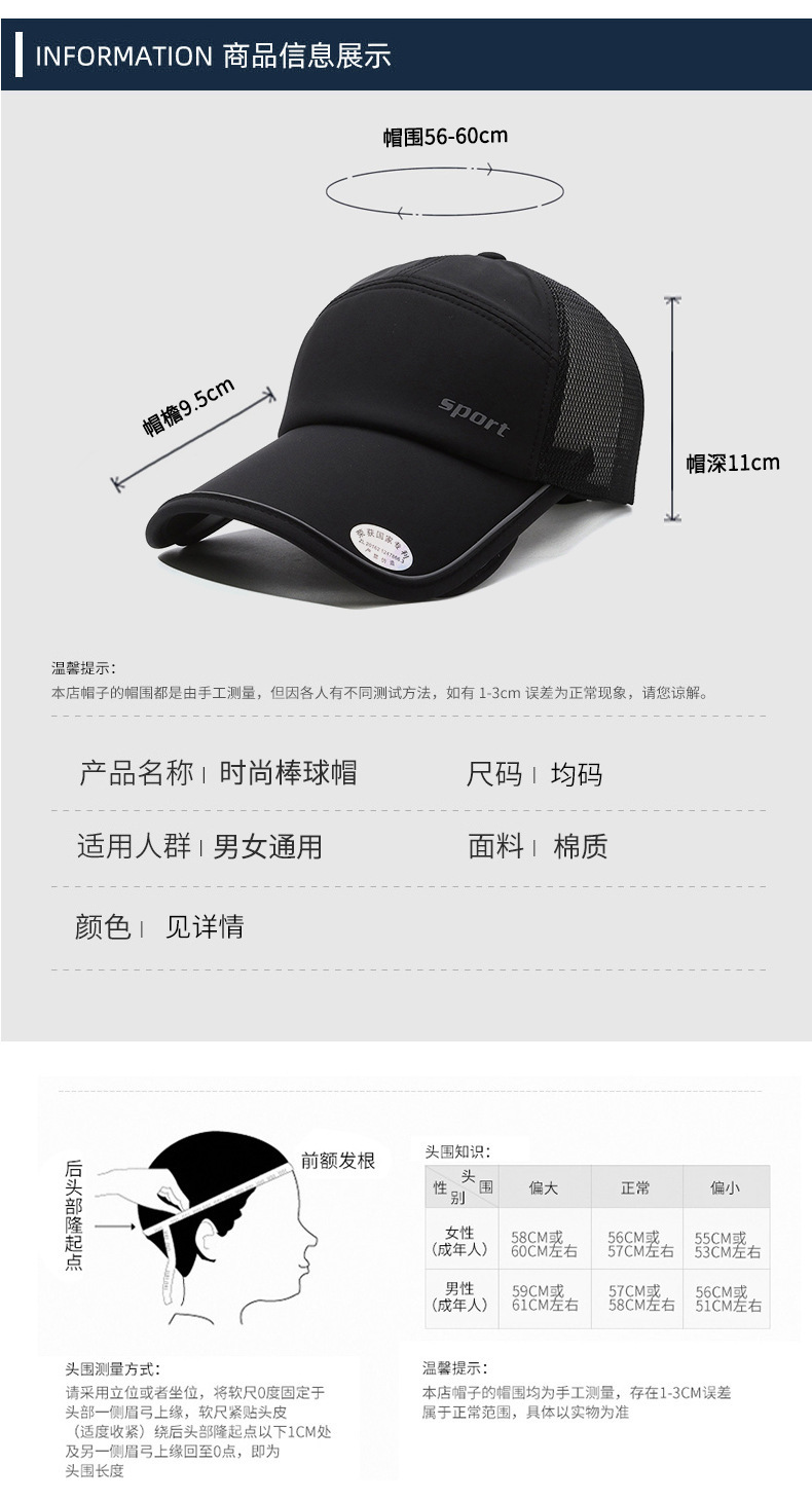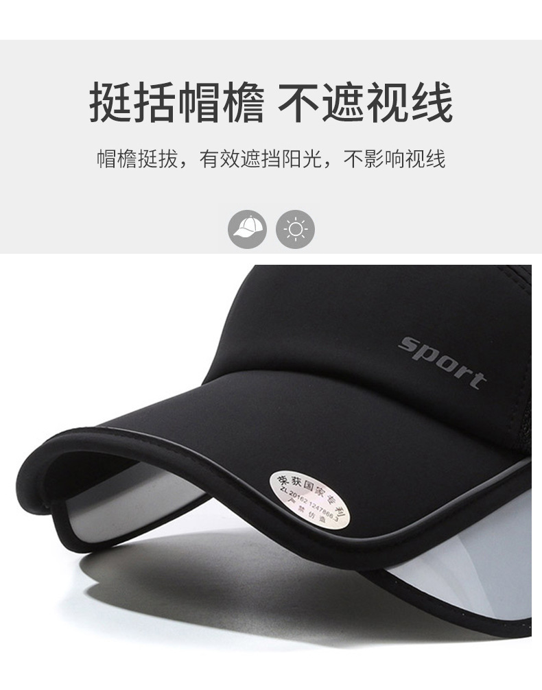 帽子男士抽拉帽檐速干帽户外运动遮阳帽女马卡龙色鸭舌帽防晒透气