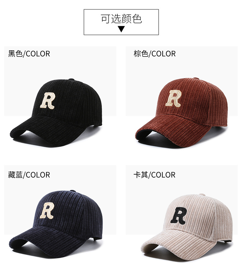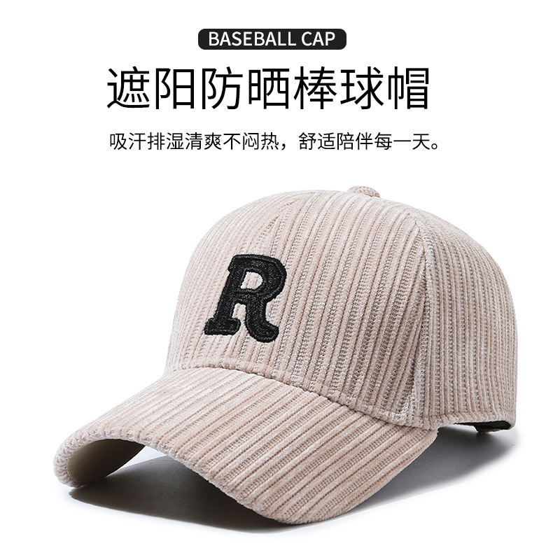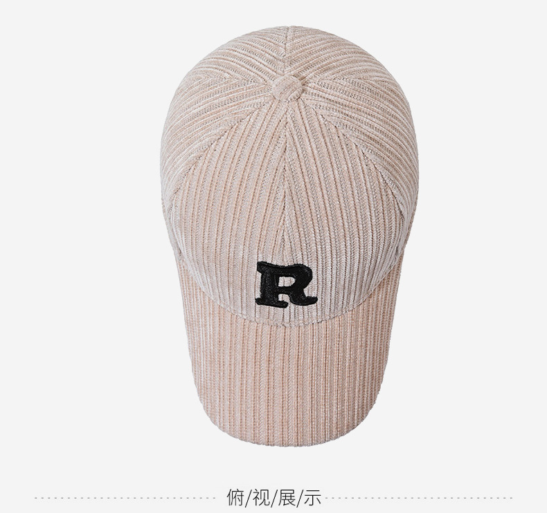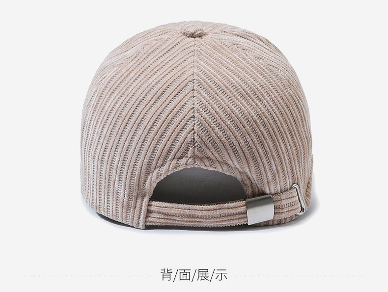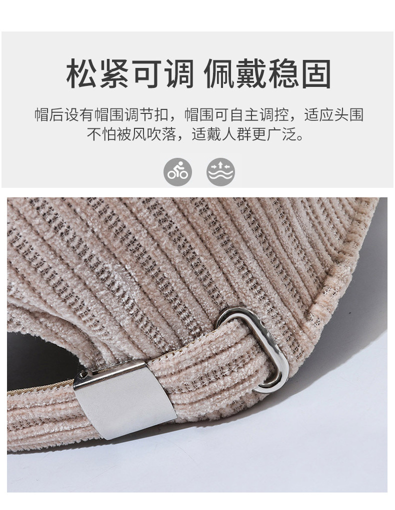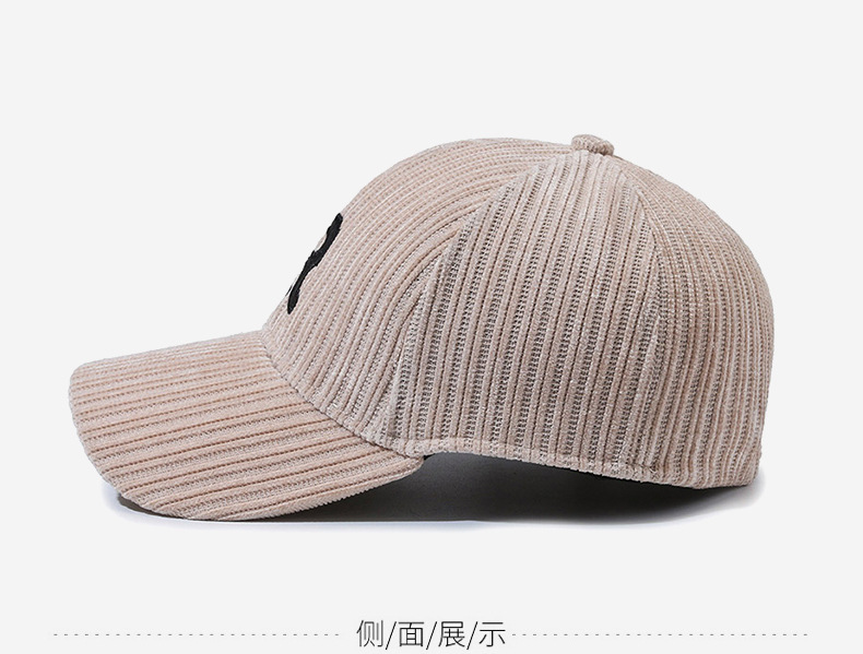 棒球帽女鸭舌帽韩版新款秋冬复古灯芯绒显脸小条纹时尚百搭帽子男