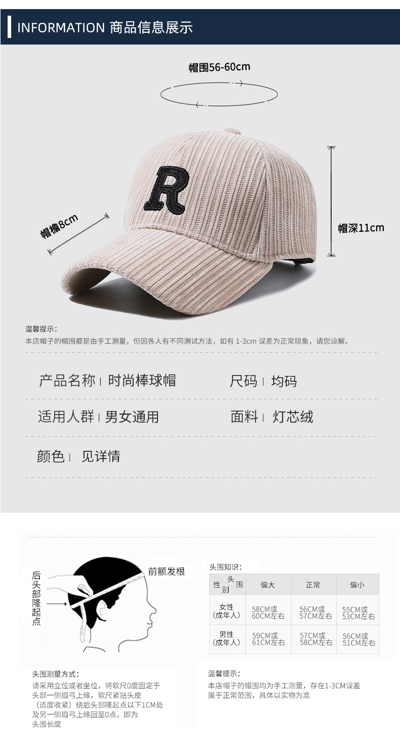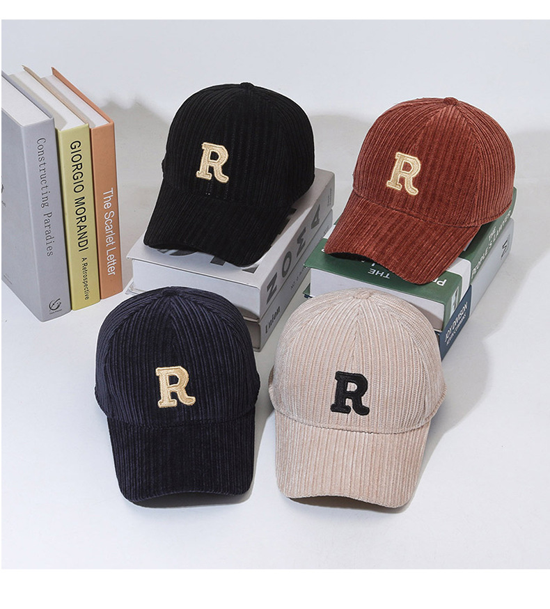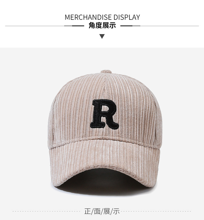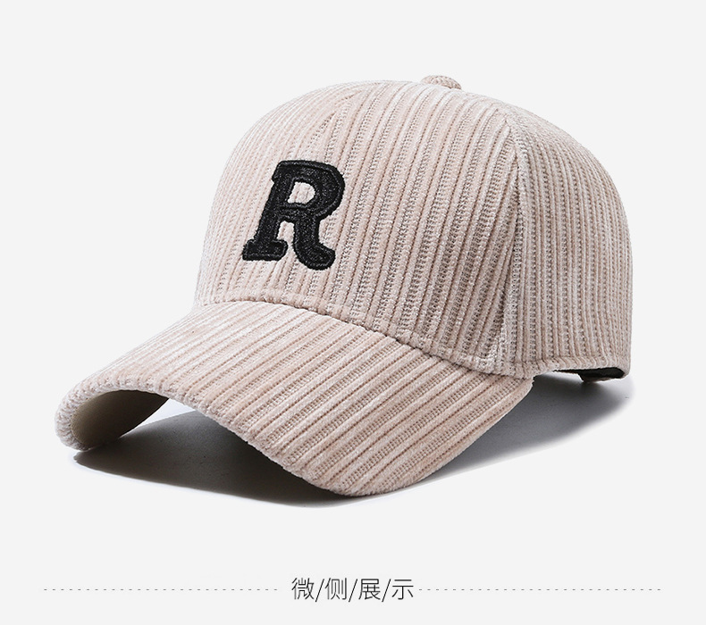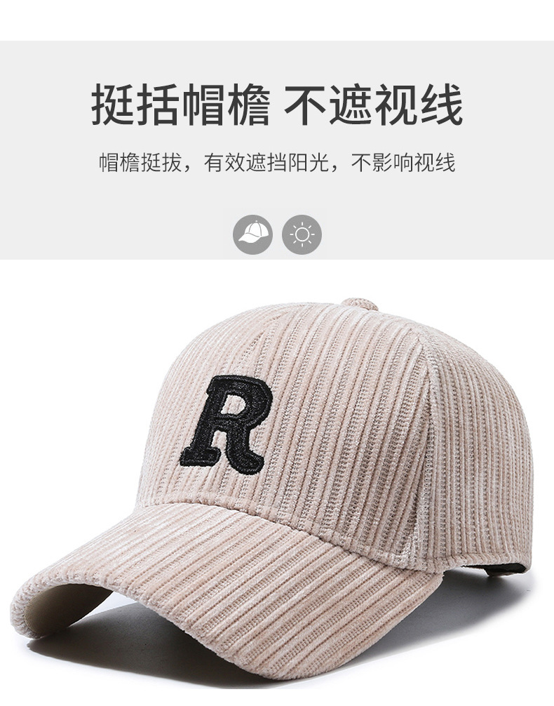 棒球帽女鸭舌帽韩版新款秋冬复古灯芯绒显脸小条纹时尚百搭帽子男