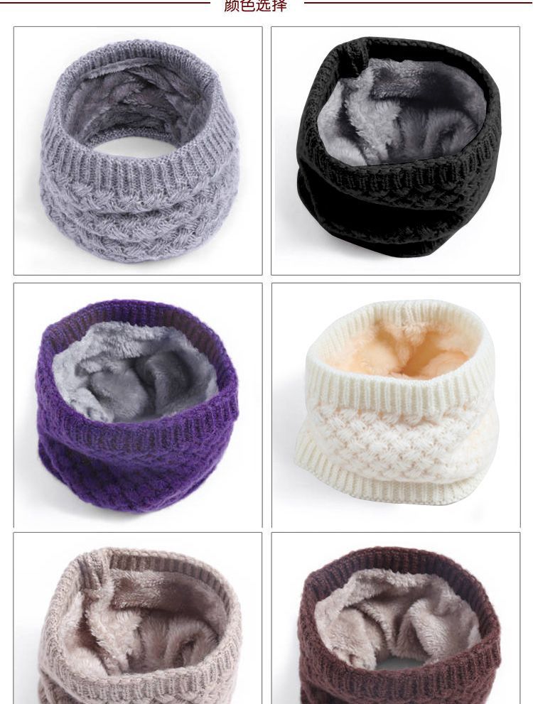 围脖毛线韩版冬季男女成人百搭加绒围脖学生纯色套头加厚保暖围巾