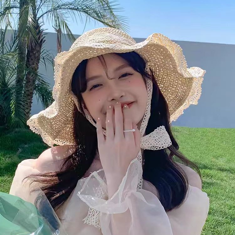 帽子女春夏新款法式草帽百搭蕾丝花边防晒帽夏季海边沙滩遮阳帽