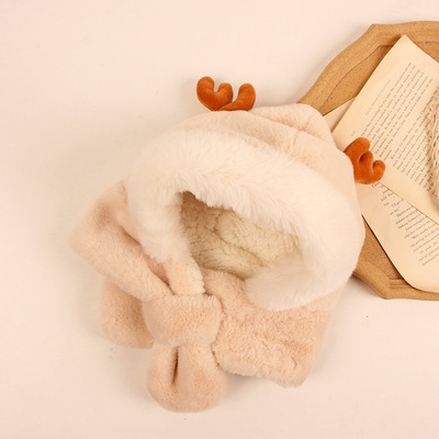 冬天儿童帽子围巾一体 圣诞毛绒圣诞婴儿帽 宝宝护耳男女童圣诞帽