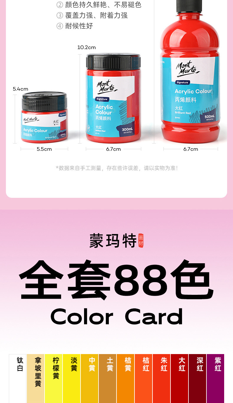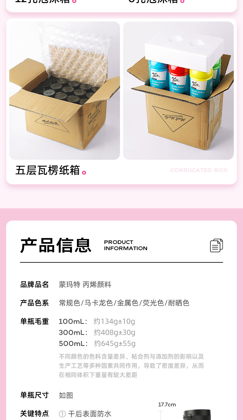 蒙玛特丙烯颜料美术生专用罐装100ml颜料大桶白色丙乙烯颜料套装