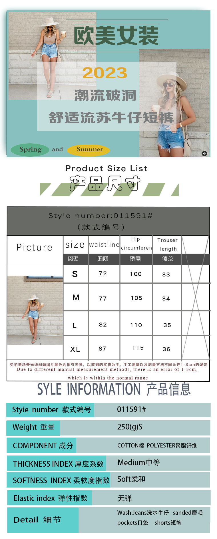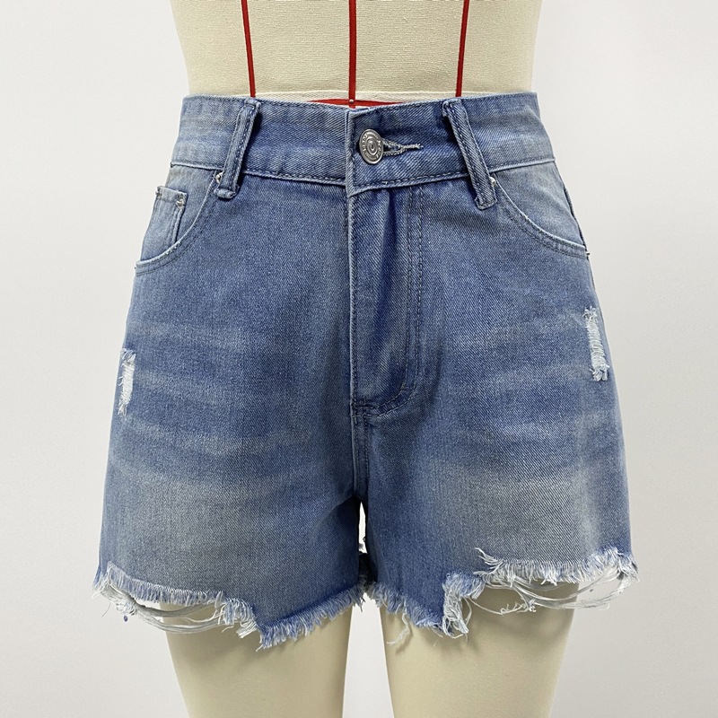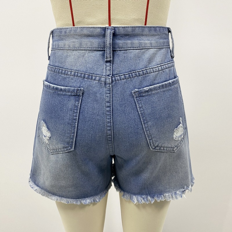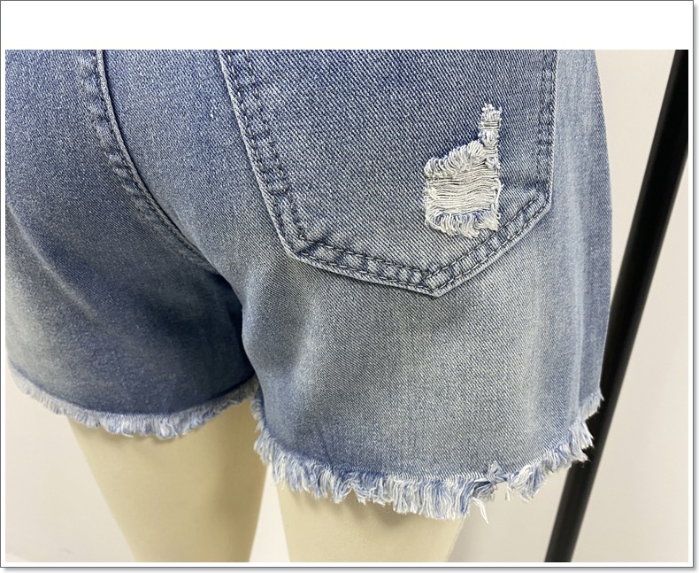 厂家直销2025欧美春夏新款跨境破洞休闲牛仔短裤高腰显瘦现货批发