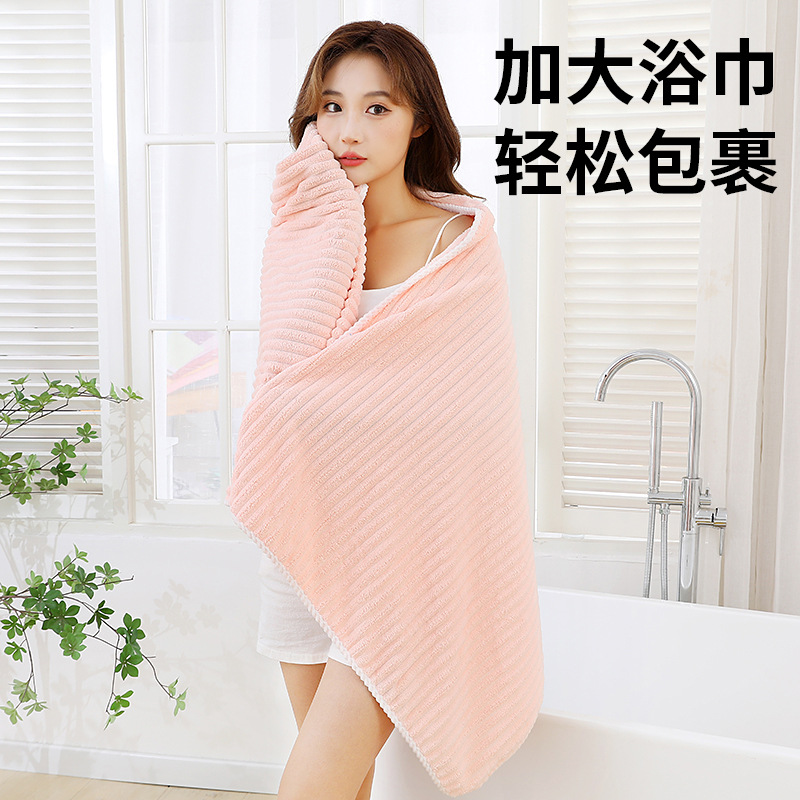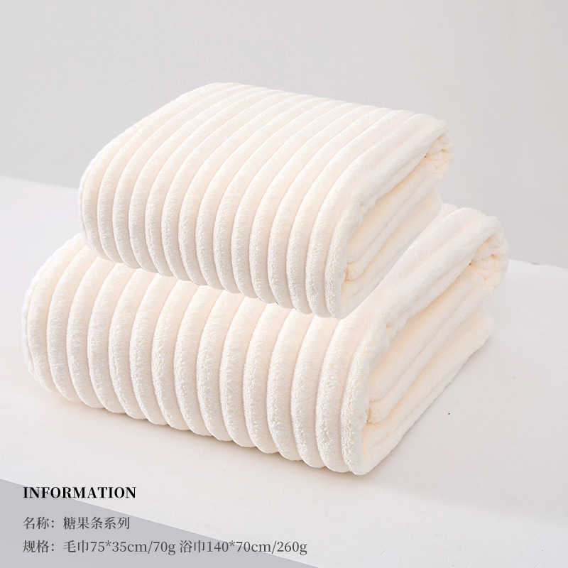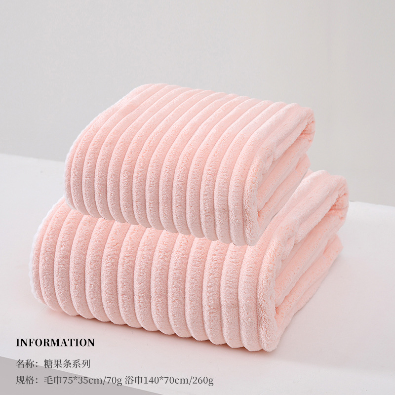 珊瑚绒浴巾柔软糖果条毛巾加厚浴巾家用擦脸巾成人吸
