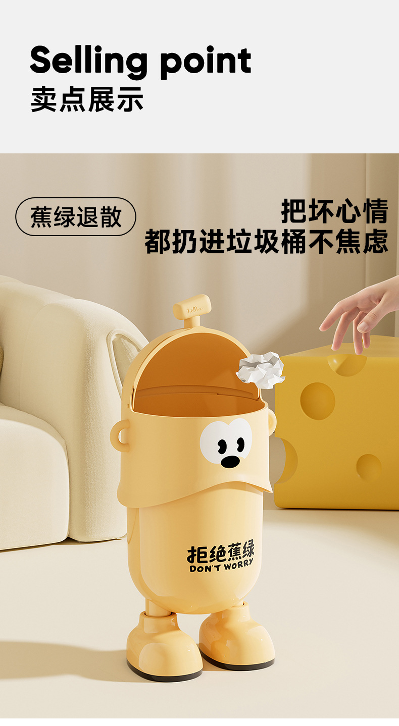 垃圾桶家用高颜值大号大容量免弯腰客厅办公室加厚卡通带脚垃圾筒
