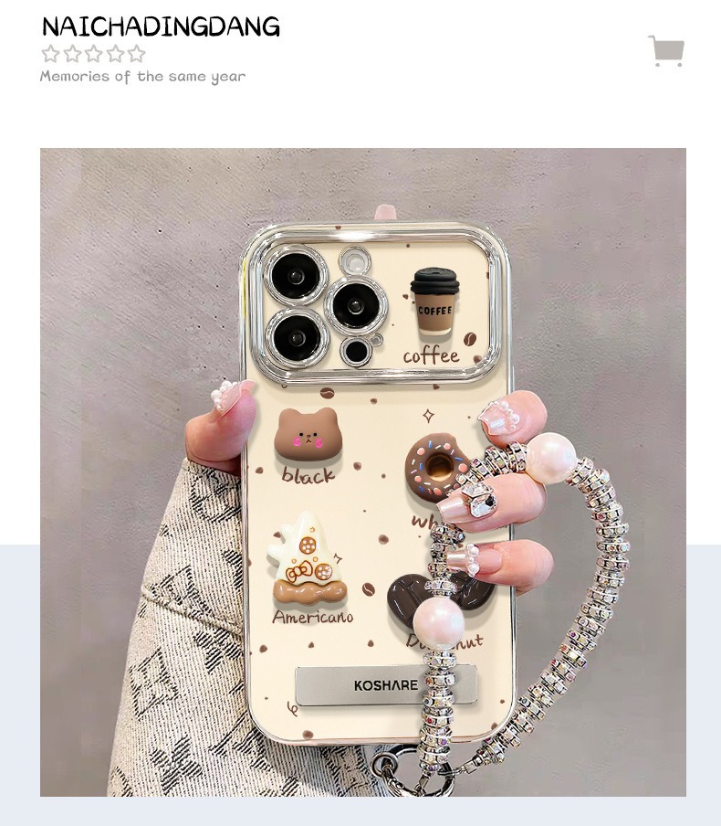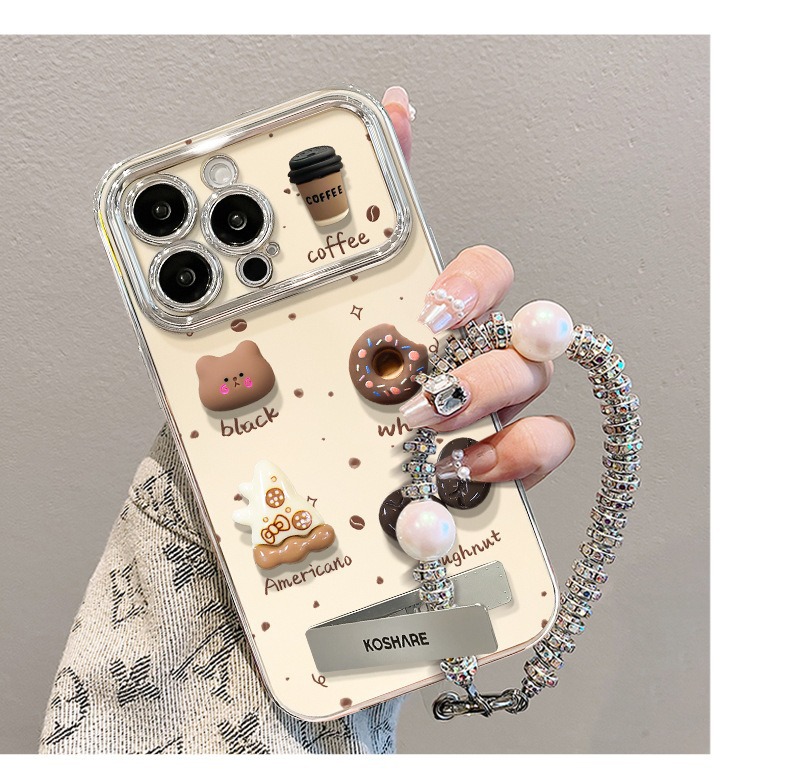 卡通咖啡小熊适用小米15手机壳14ULTRA手链K80支架NOTE14视窗防摔