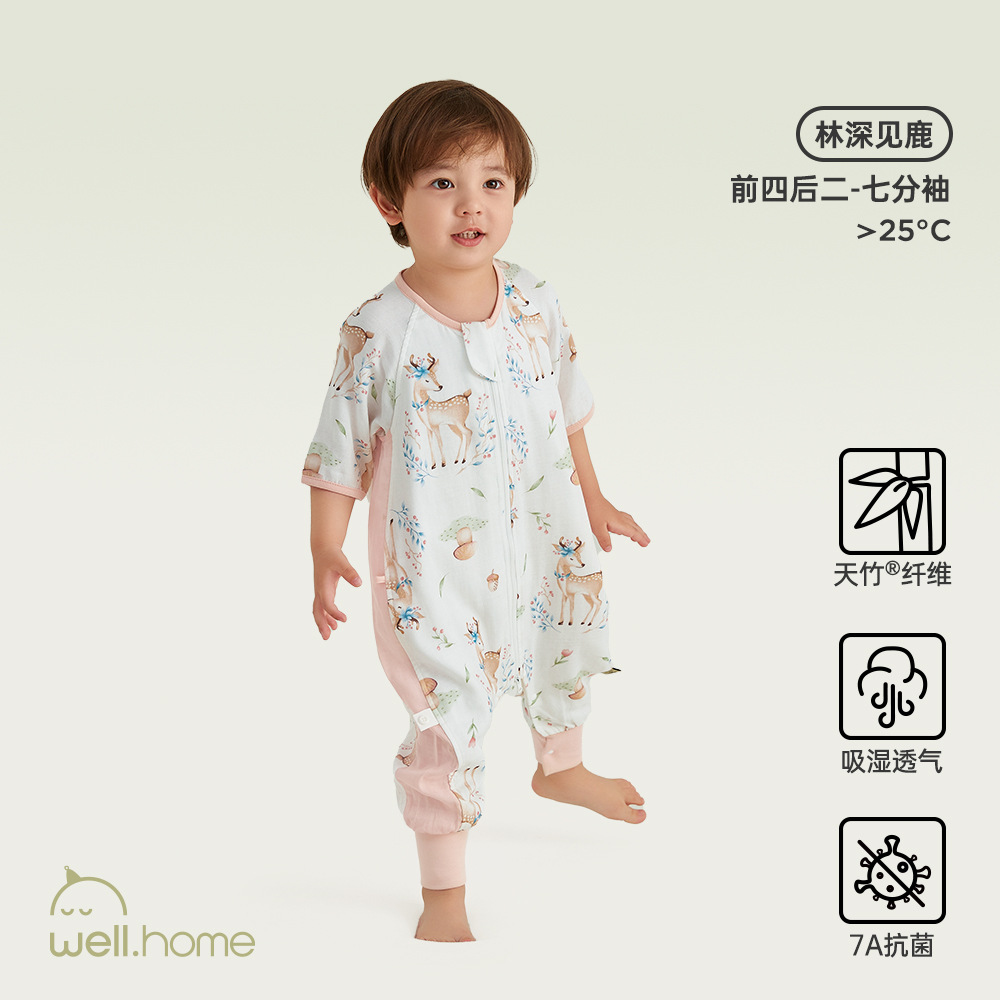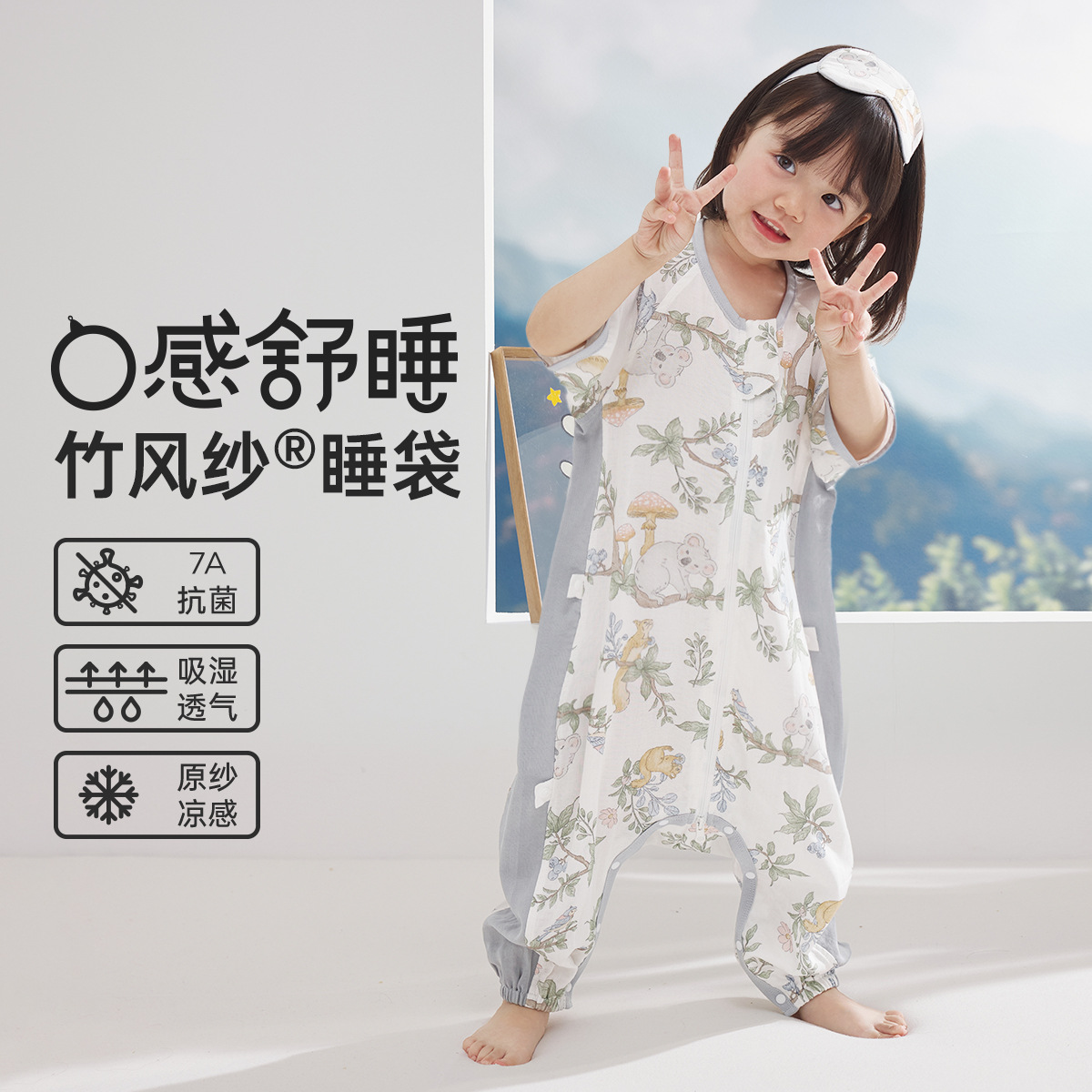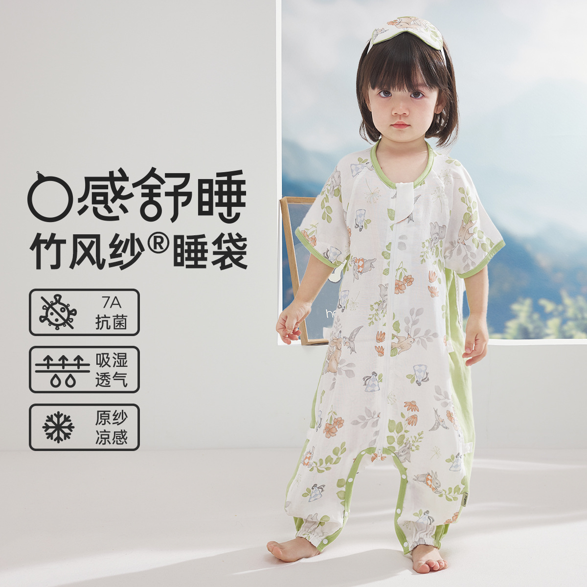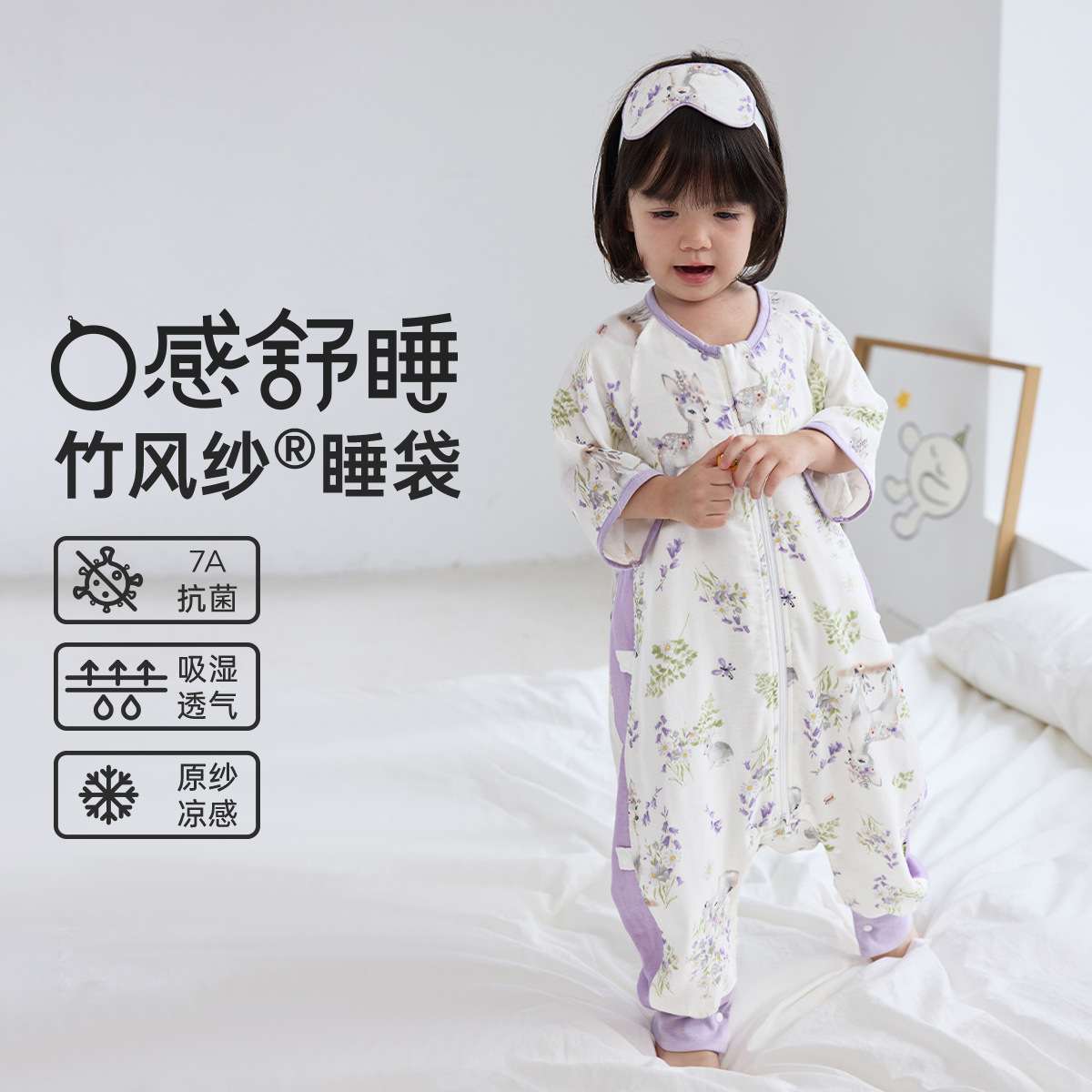 威尔贝鲁婴儿睡袋春夏a类宝宝连体儿童防踢被竹棉纱布