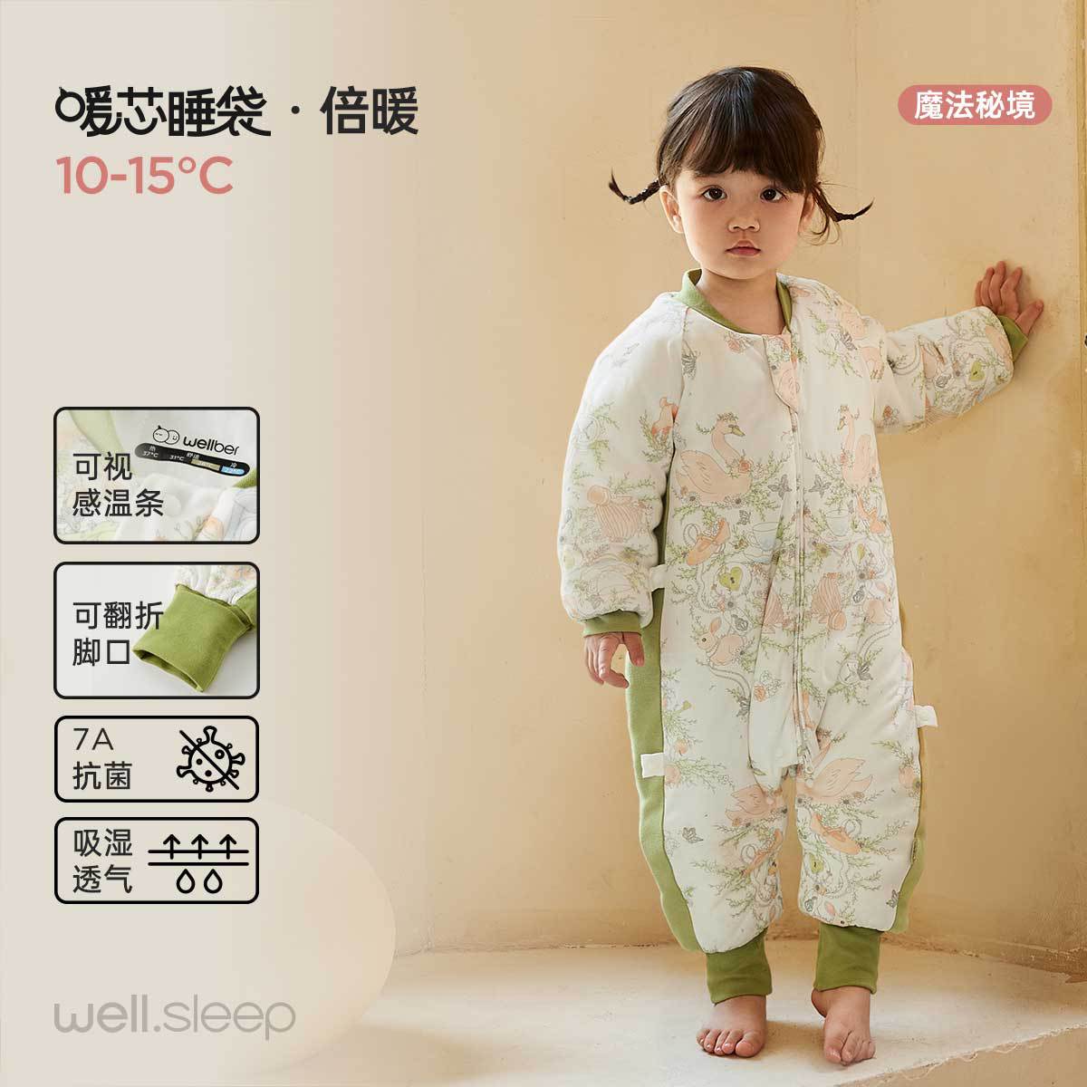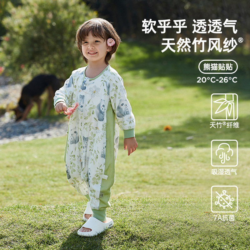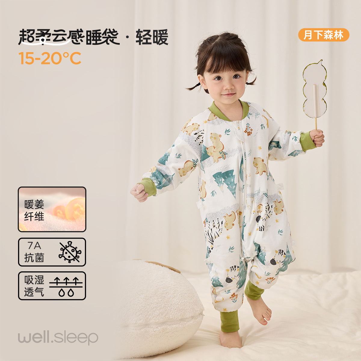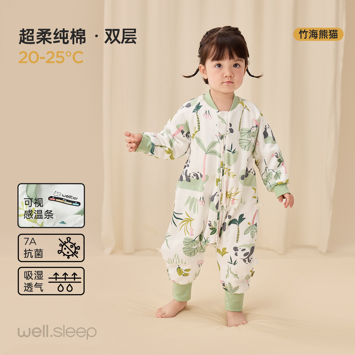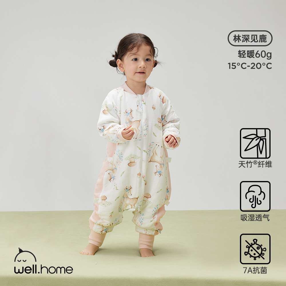 威尔贝鲁婴儿睡袋春夏a类宝宝连体儿童防踢被竹棉纱布