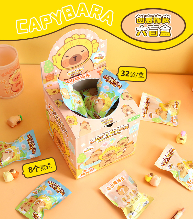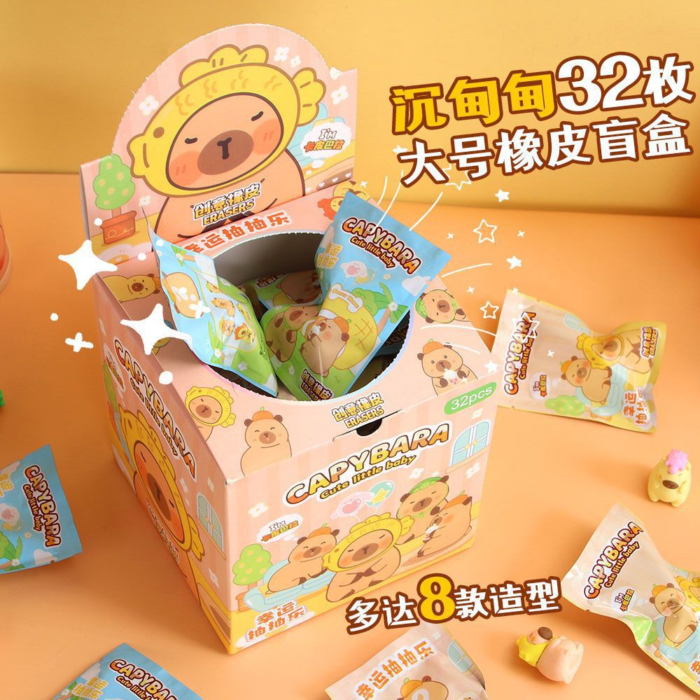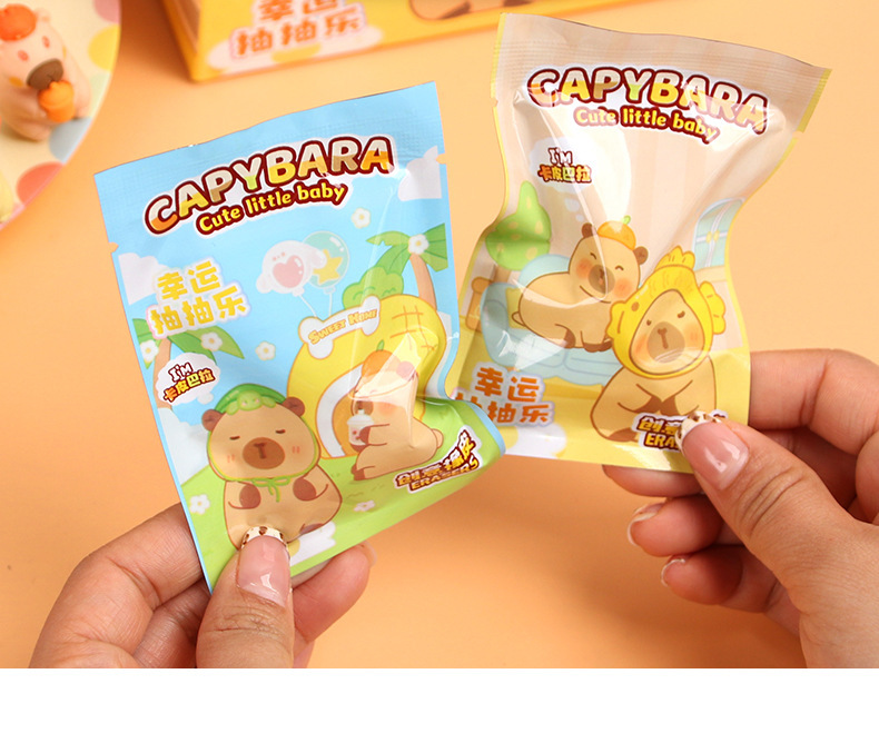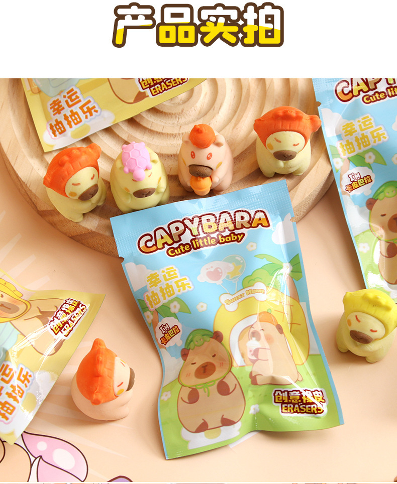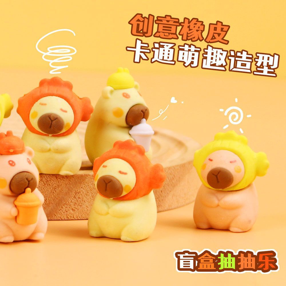 卡皮巴拉橡皮擦学生可爱盲袋卡通无屑3D水豚造型儿童学习文具奖品