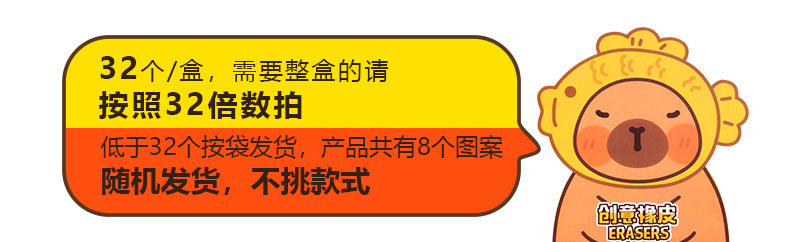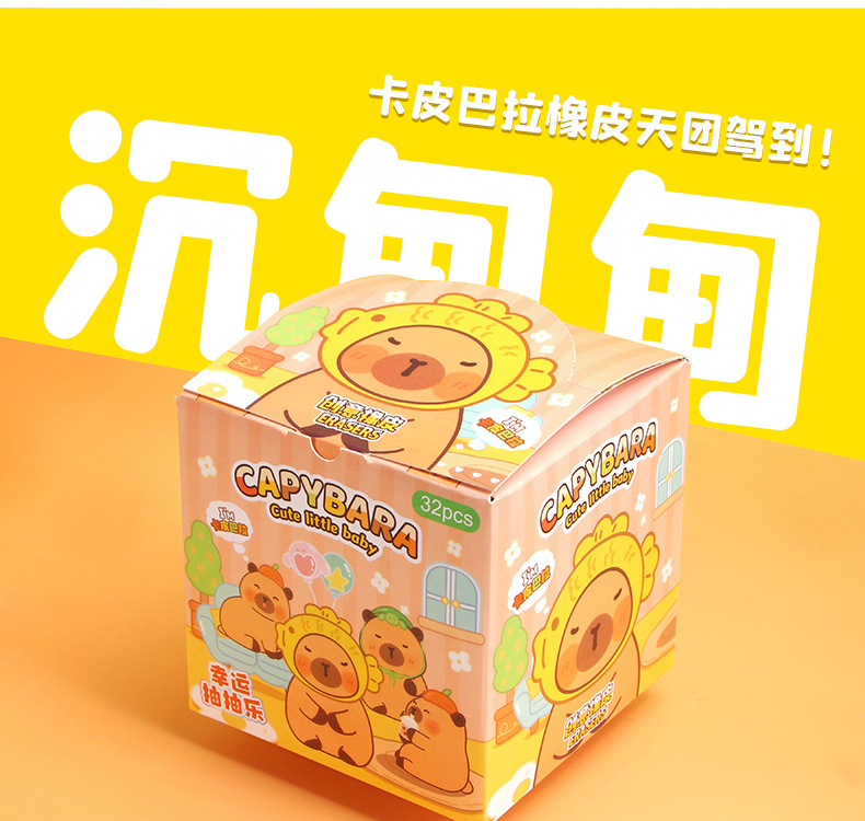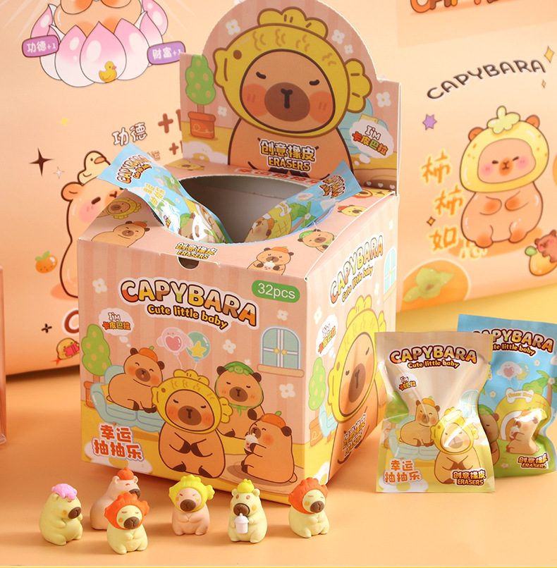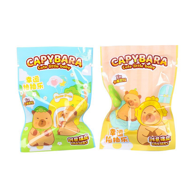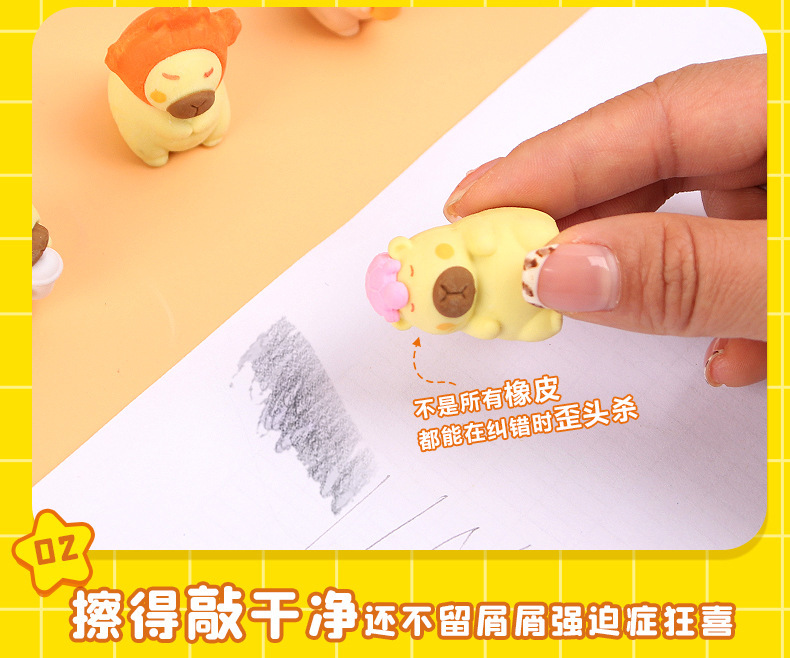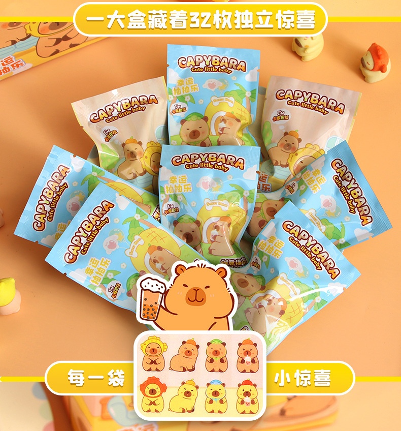 卡皮巴拉橡皮擦学生可爱盲袋卡通无屑3D水豚造型儿童学习文具奖品