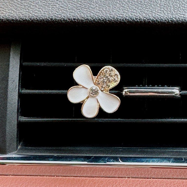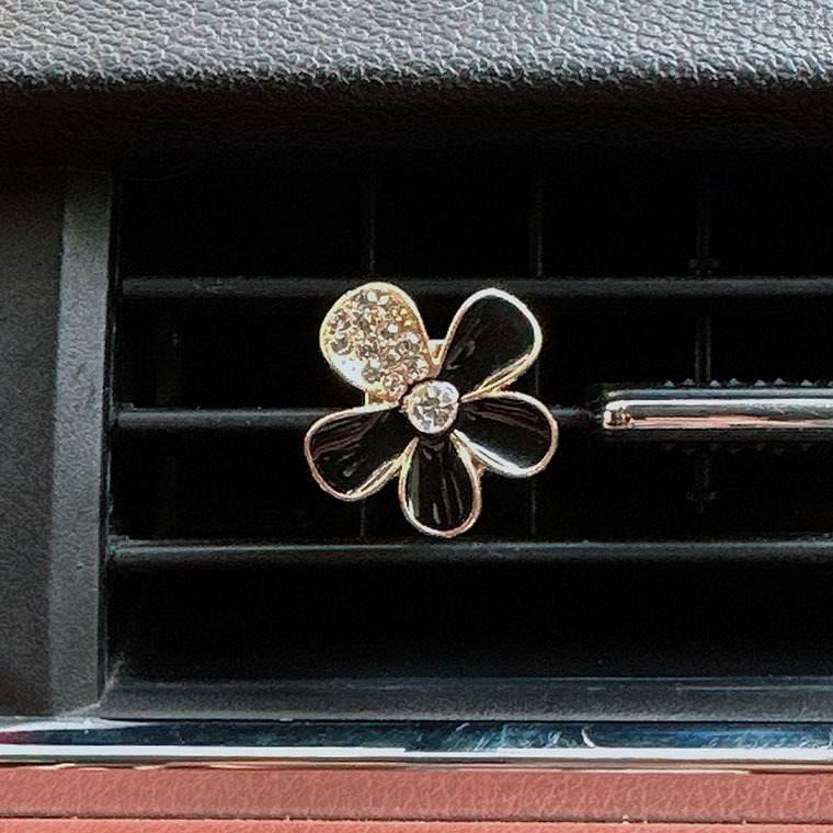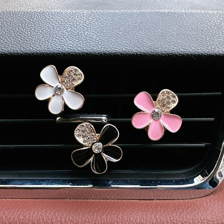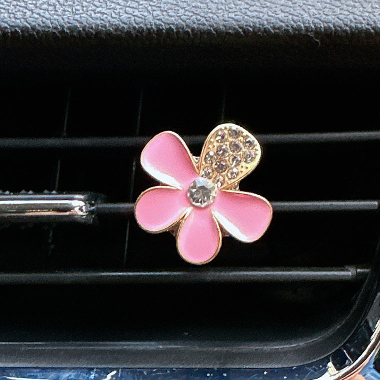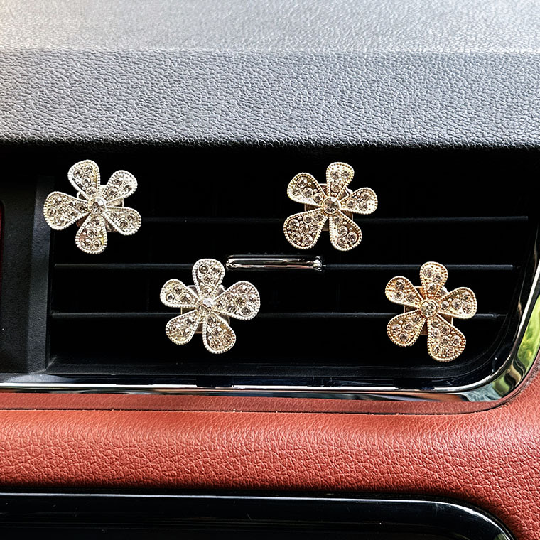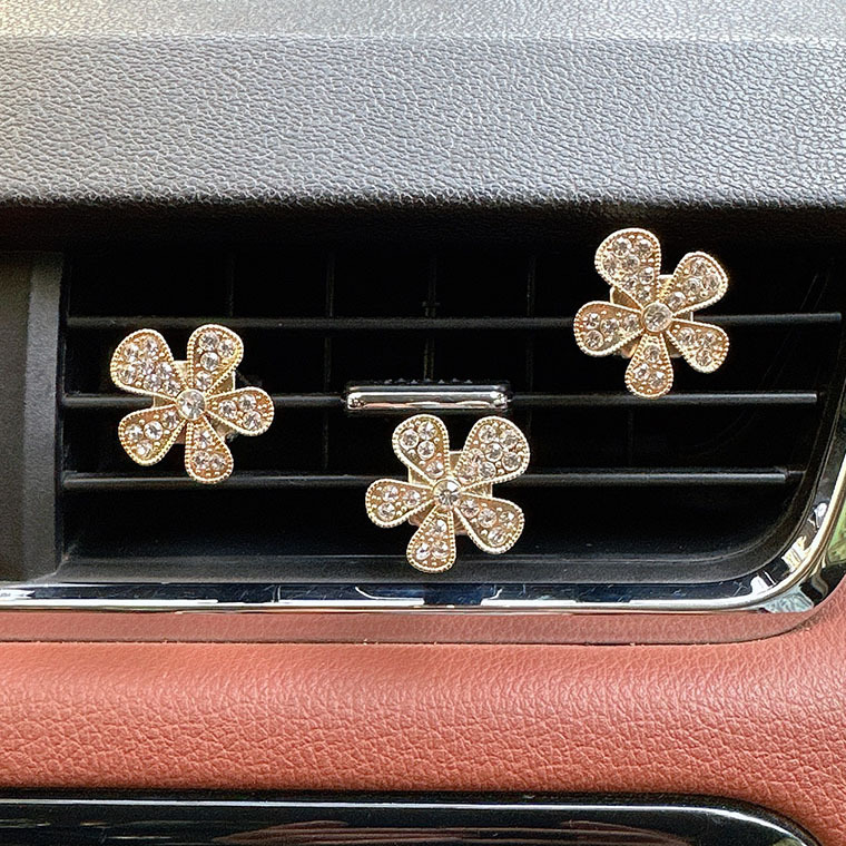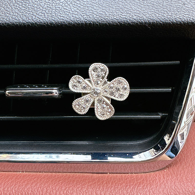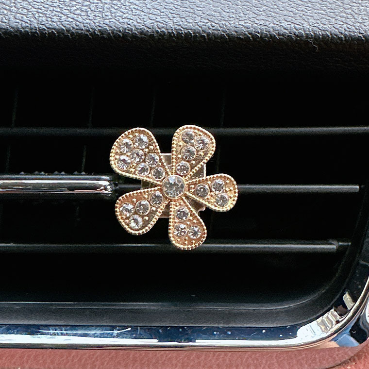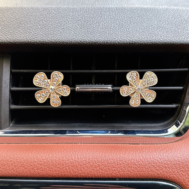 跨境贸易车载五瓣花朵满钻水钻汽车出风口香香薰夹空调风口装饰品