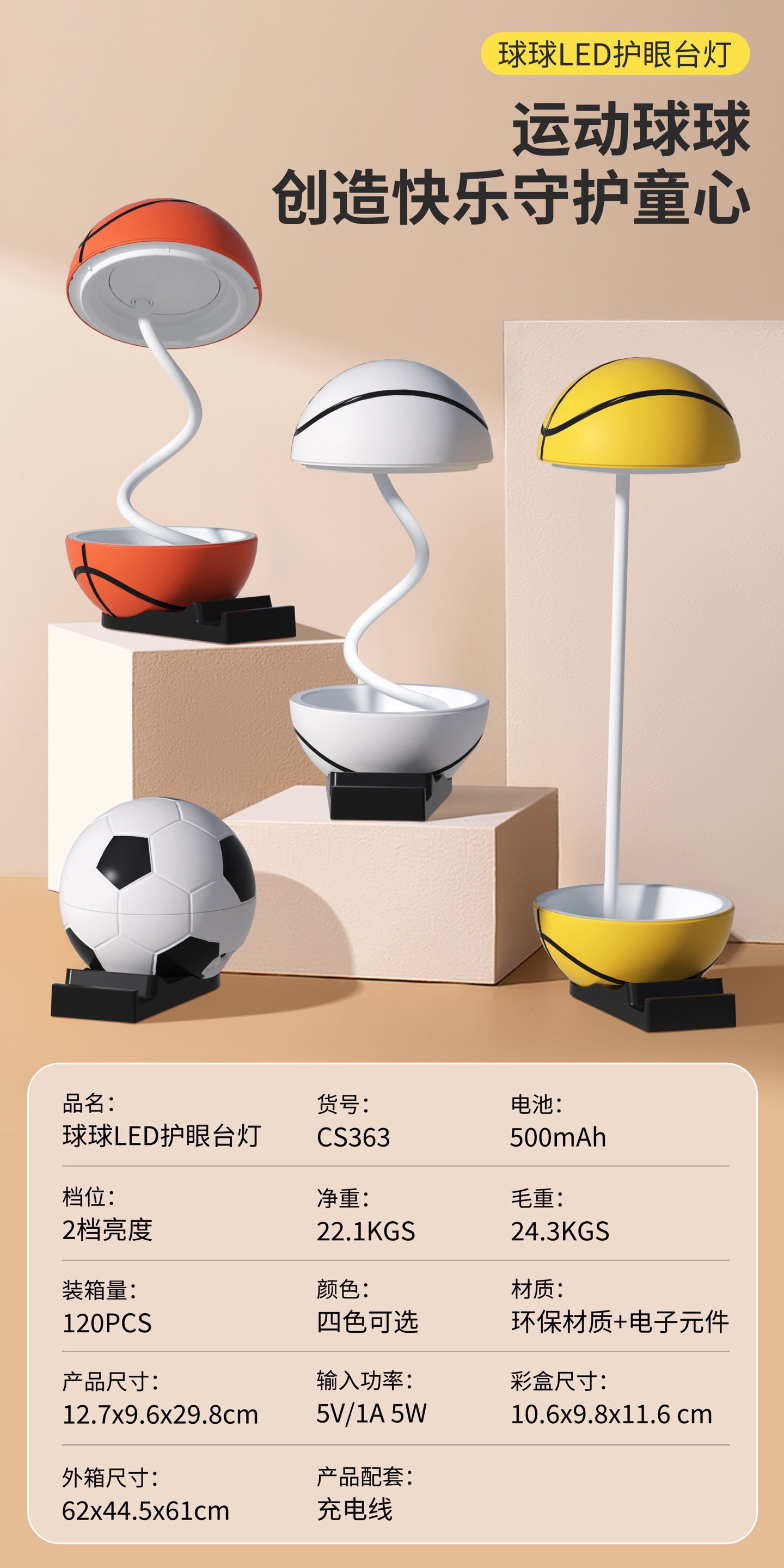 创意足球LED护眼台灯家居卧室桌面阅读台灯学习护眼创意夹子台灯