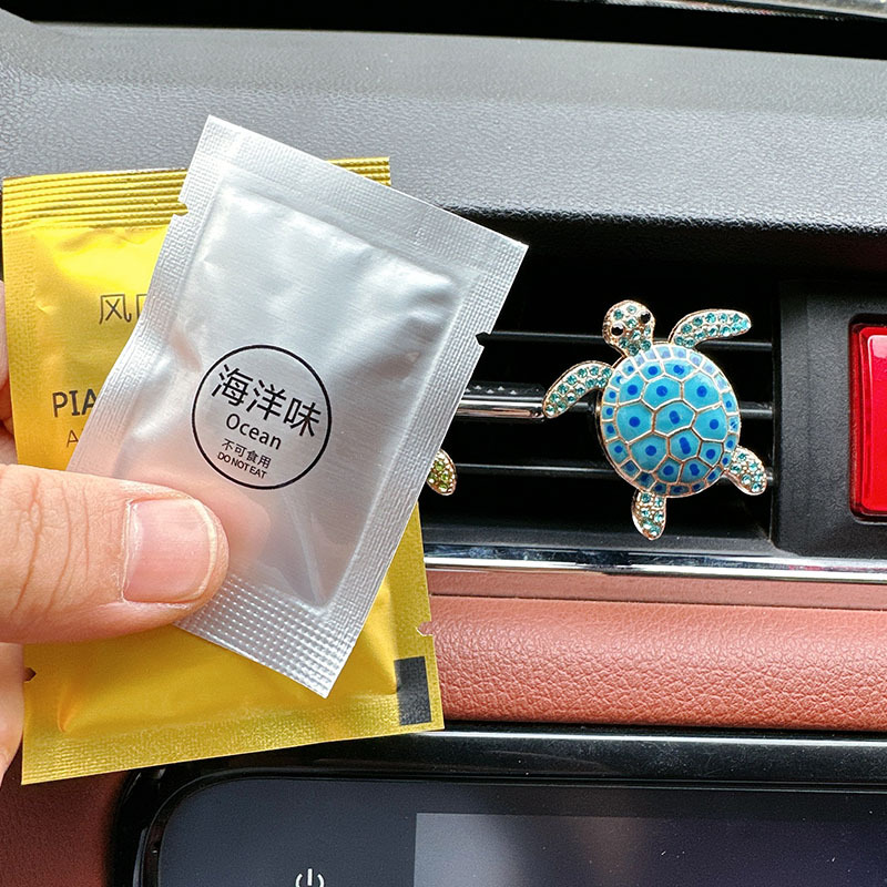 欧美跨境复古海龟汽车出风口香薰夹可爱乌龟车内空调风口香片夹