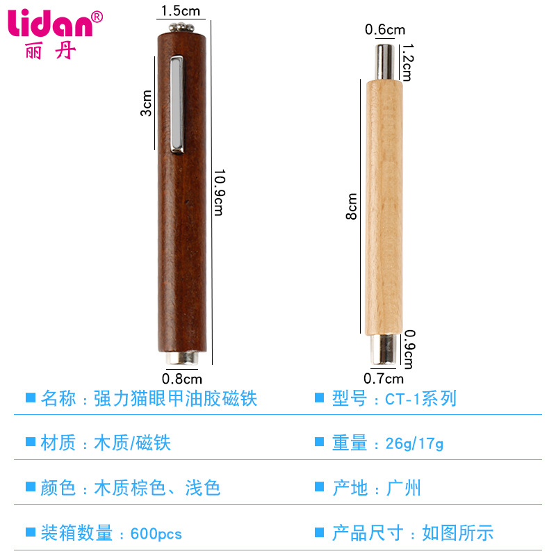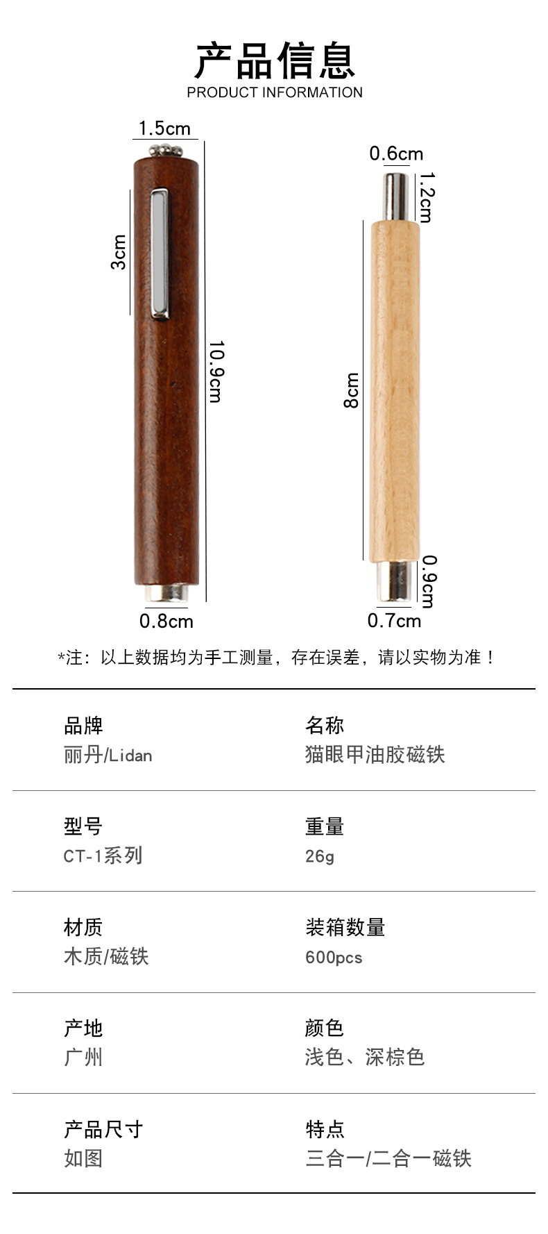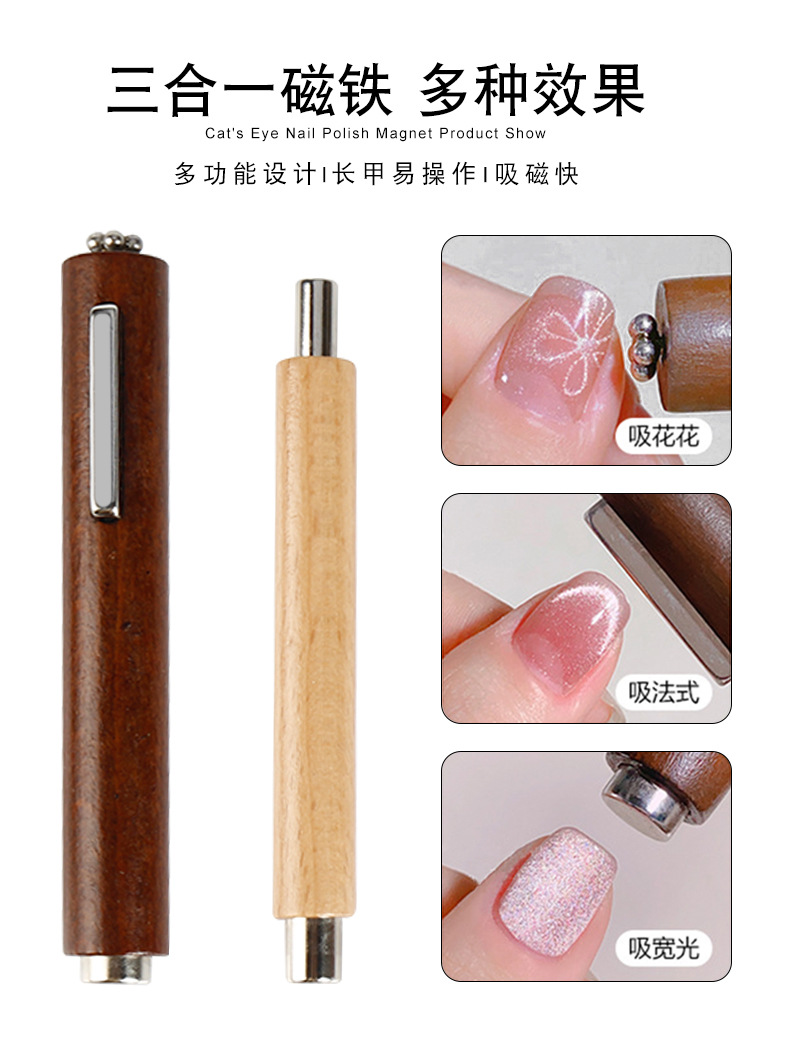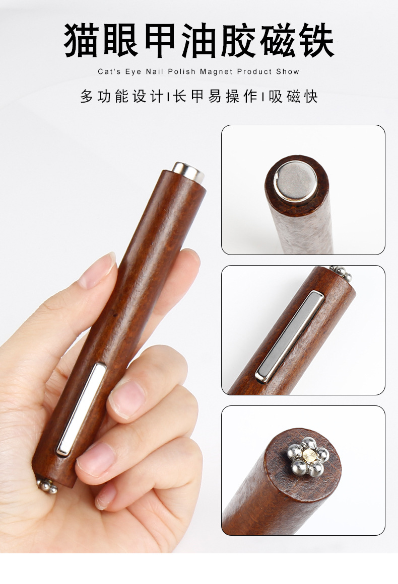 多功能雪茄大磁铁三合一猫眼强吸力加粗4合1原木圆柱磁铁美甲工具