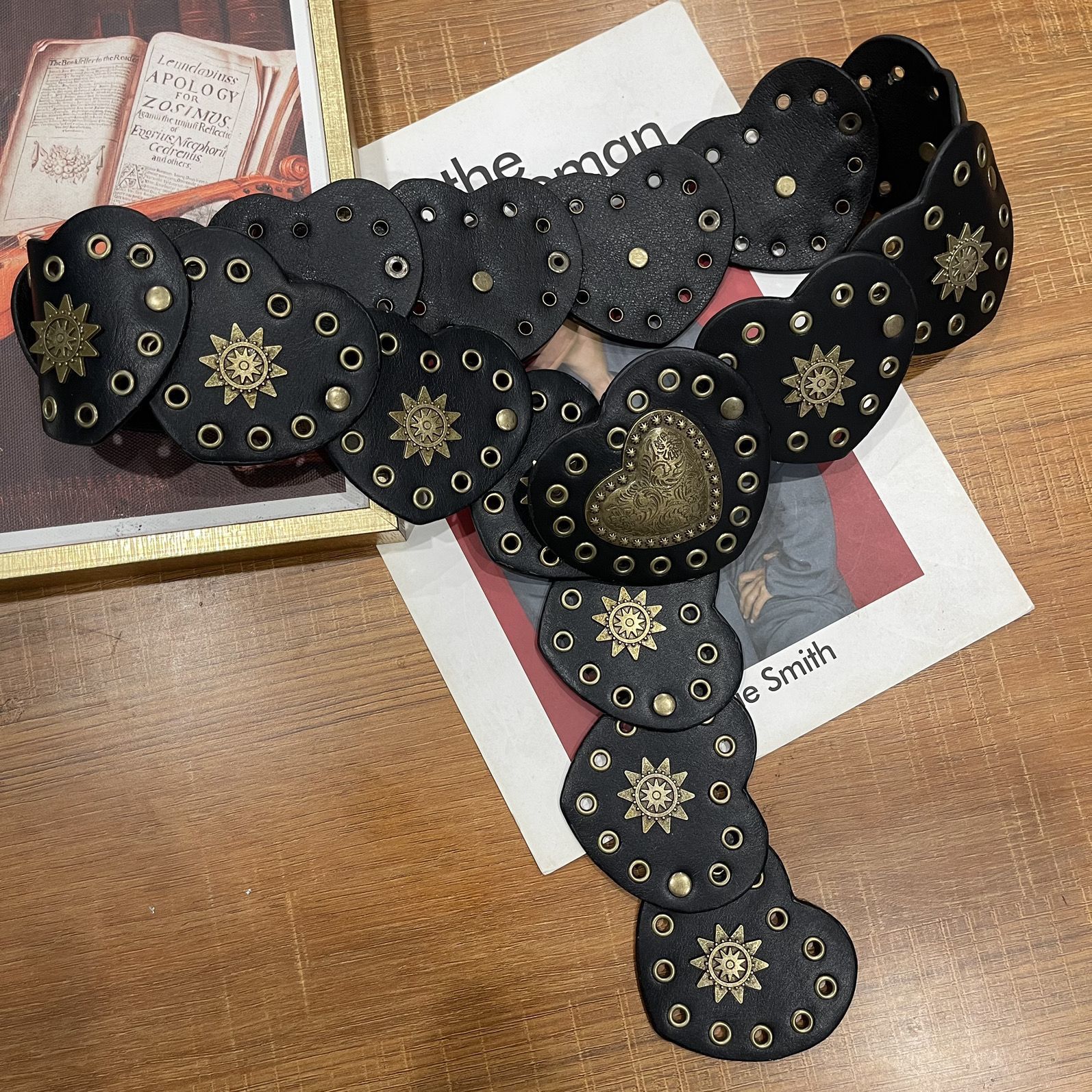 复古西部风部落感金属拼接爱心腰带y2k辣妹vintage小众古着感皮带