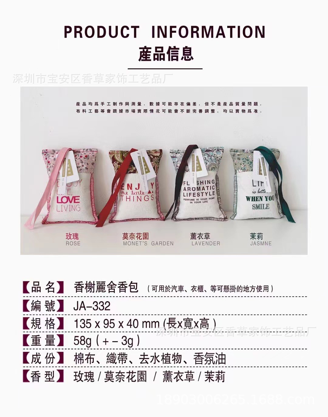 布袋香氛车载香囊除味衣柜香包aroma酒店香薰礼品赠品gifts