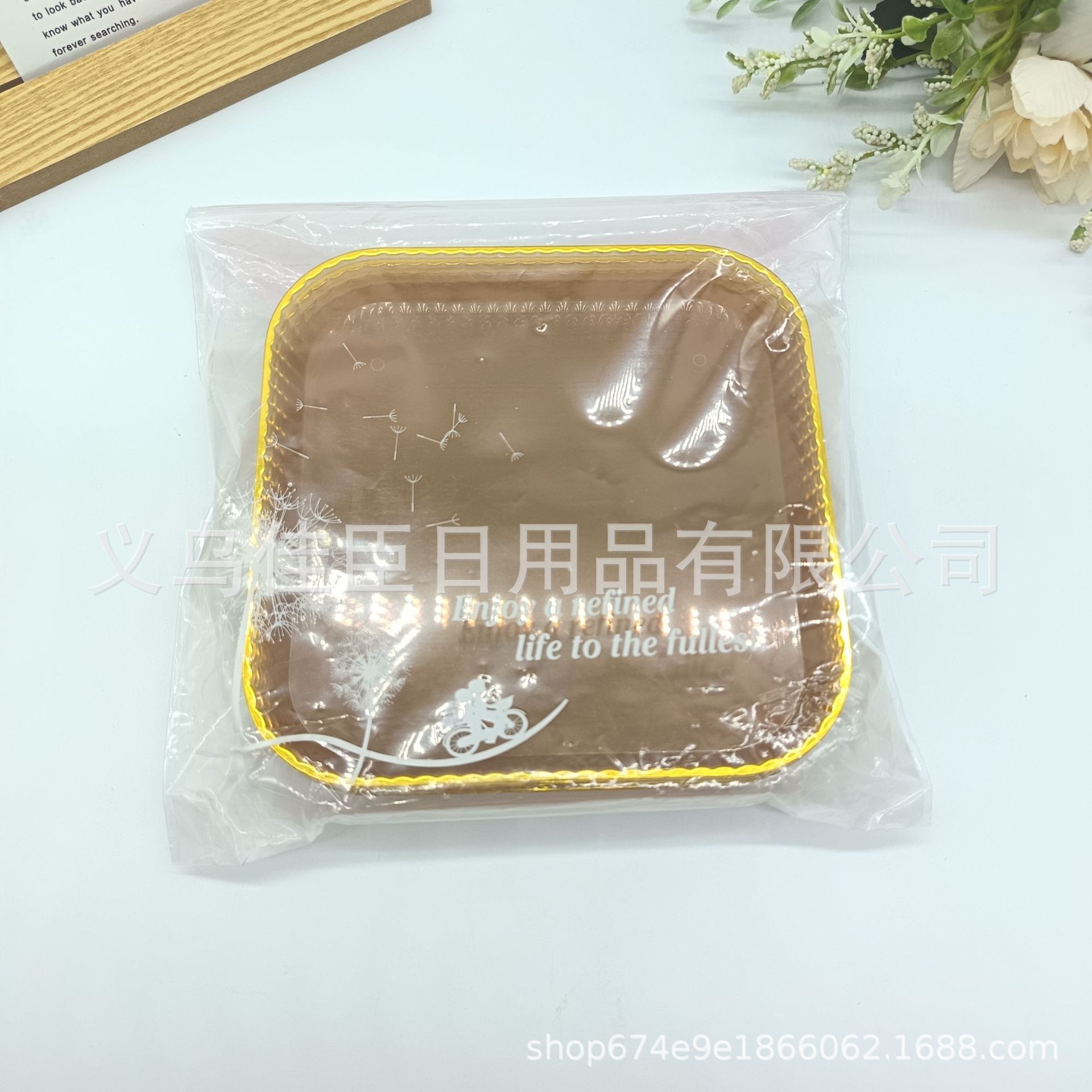 外贸塑料果盘金边款透明方形碟高颜值4个一袋现代简约干果碟骨碟