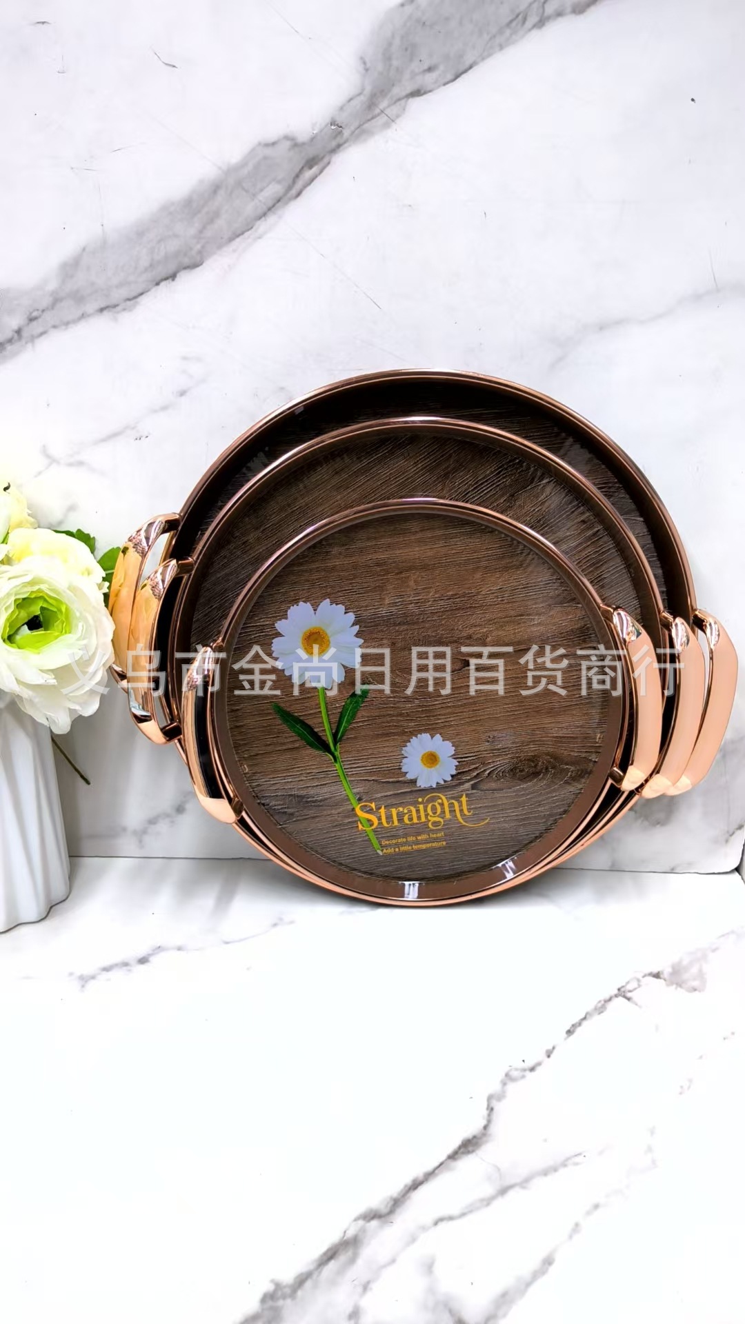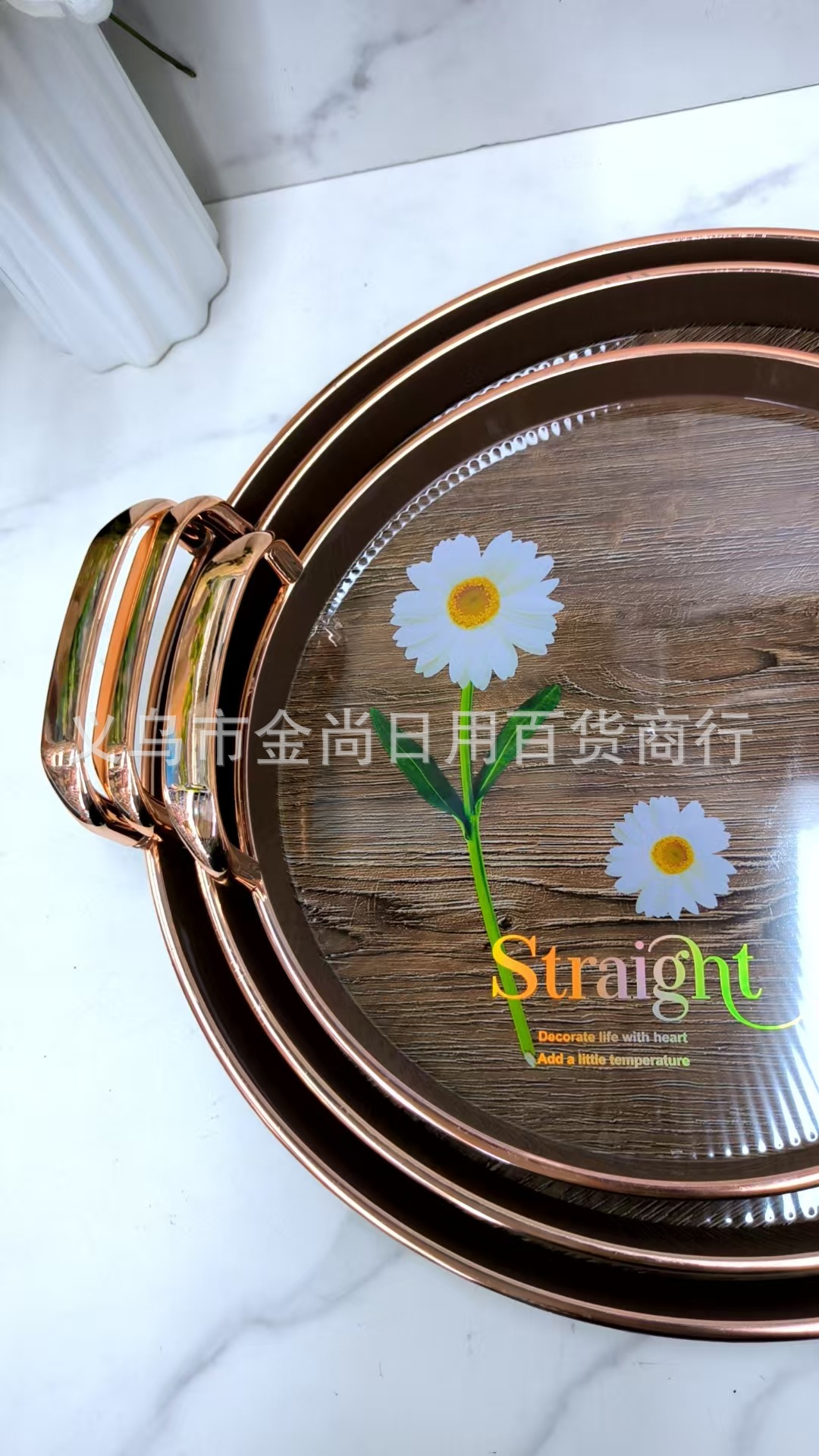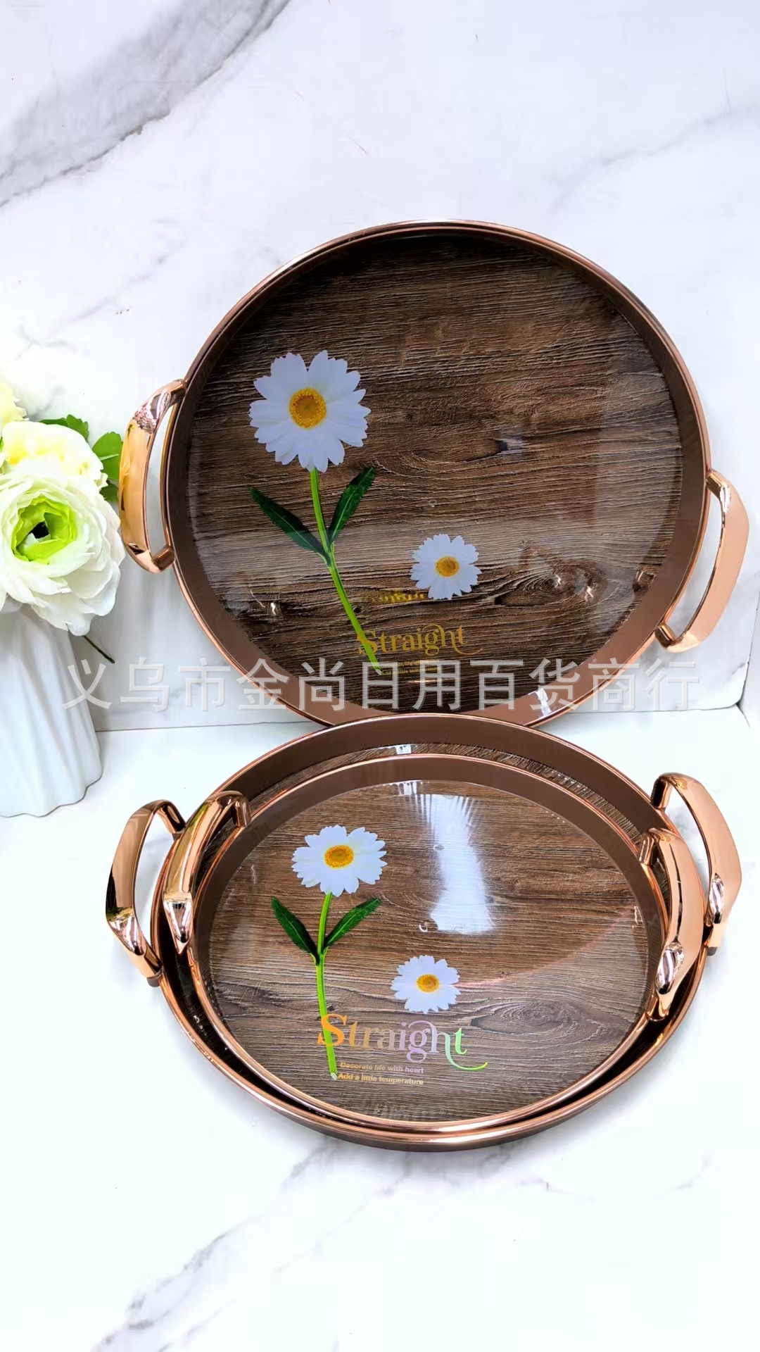 圆形家用塑料图案花托盘餐用水果托盘高级感饮料盘子圆形塑料