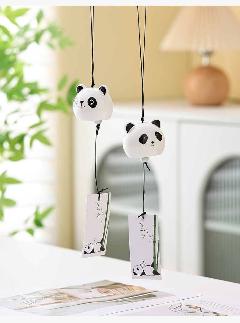 原创熊猫风铃挂饰四川旅游小商品纪念品祈愿车挂晴天娃娃陶瓷风铃