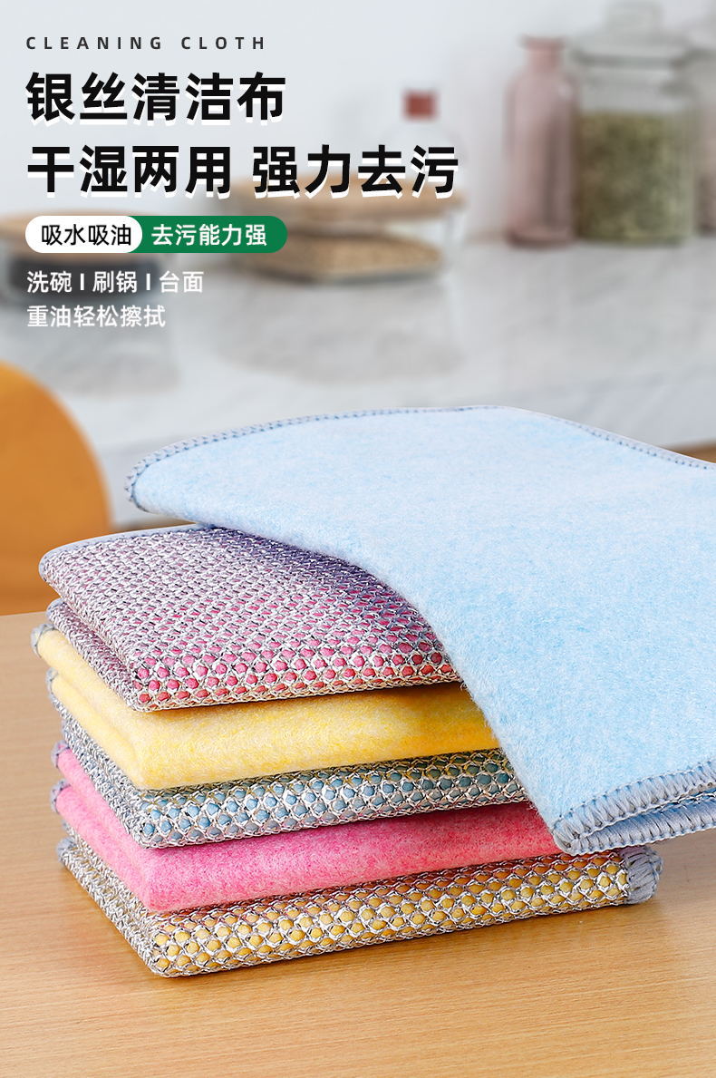 单双面银丝抹布钢丝洗碗布厨房洗碗锅不沾油替代钢丝球抹布厂家