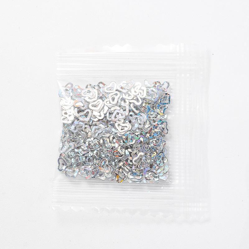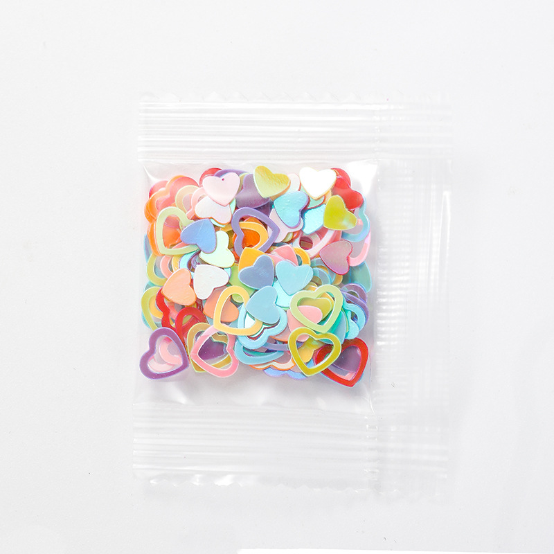 1G装镂空爱心饰品配件幻彩镭射滴胶史莱姆模具填充物亮片配件批发