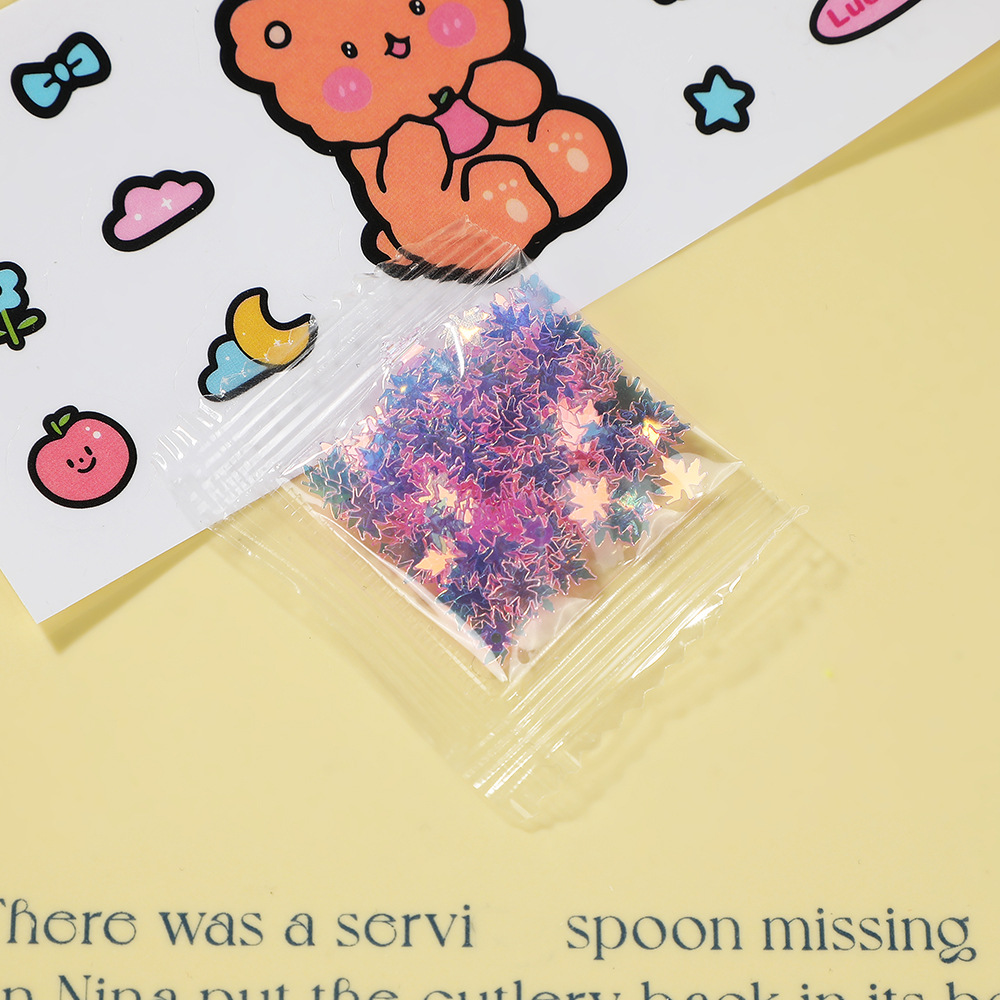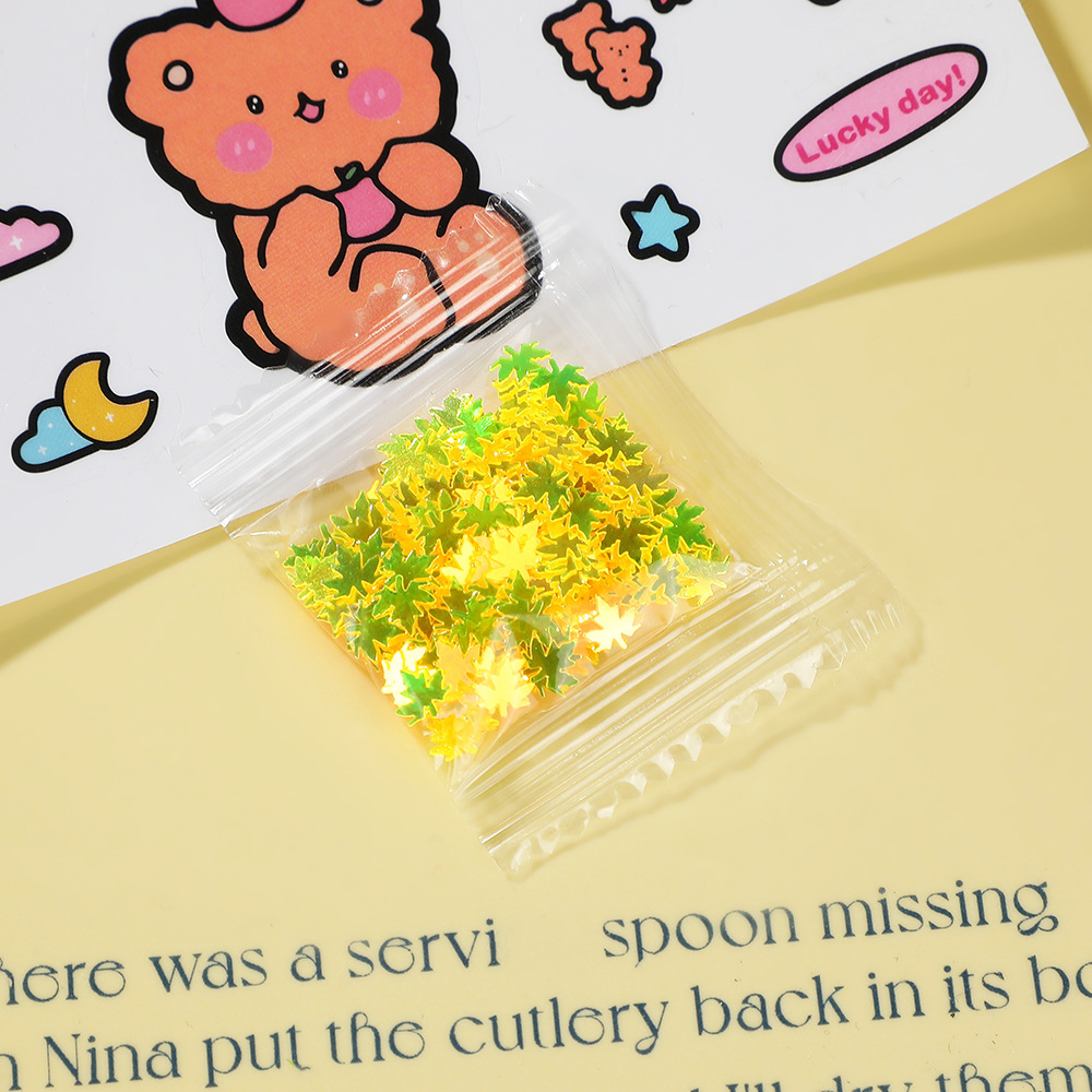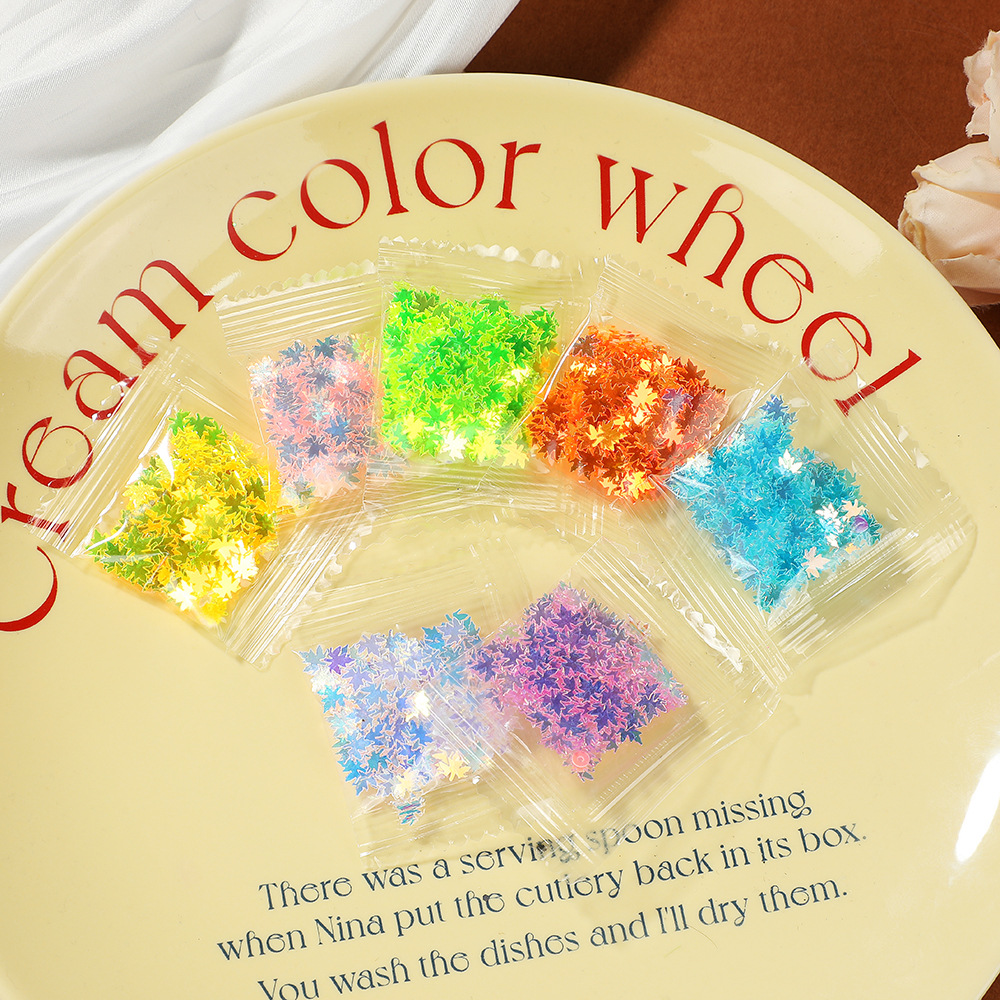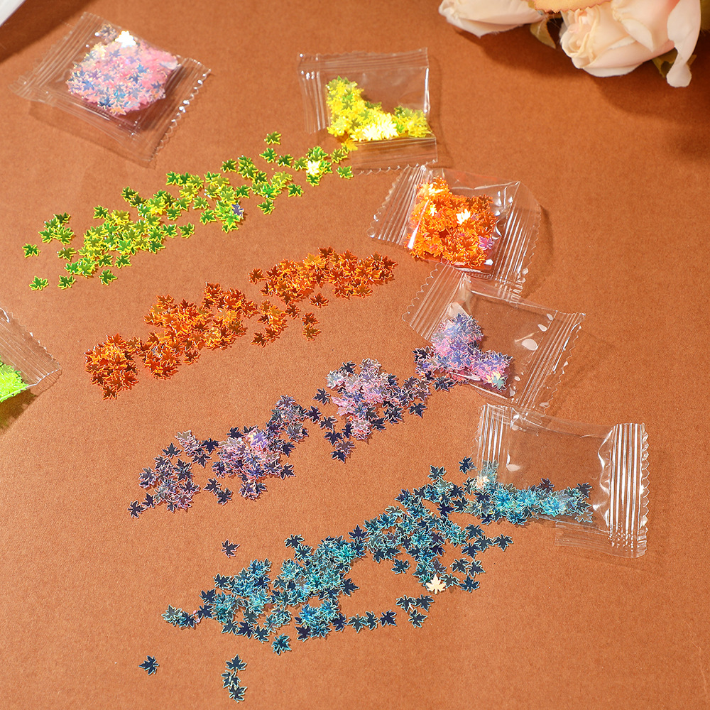 跨境爆款时尚环保超薄枫叶大亮片镭射渐变美甲饰品贴片配件1g袋装