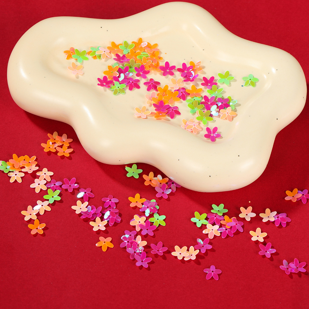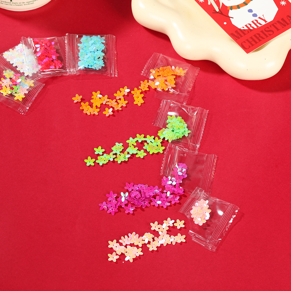 新款夏季个性网红美甲亮片彩色多边形五叶花混装指甲装饰厂家批发