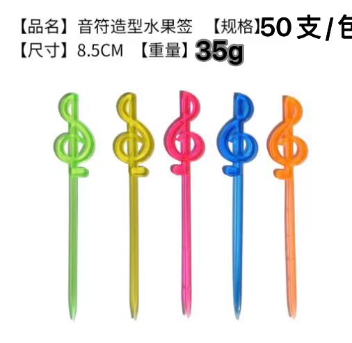 一次性创意爱心音符彩色塑料水果叉拼盘装饰水果签酒吧KTV用品