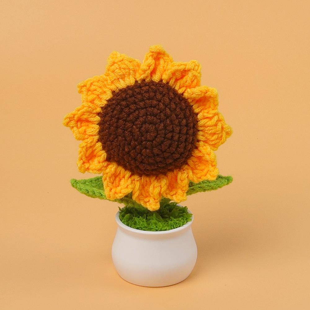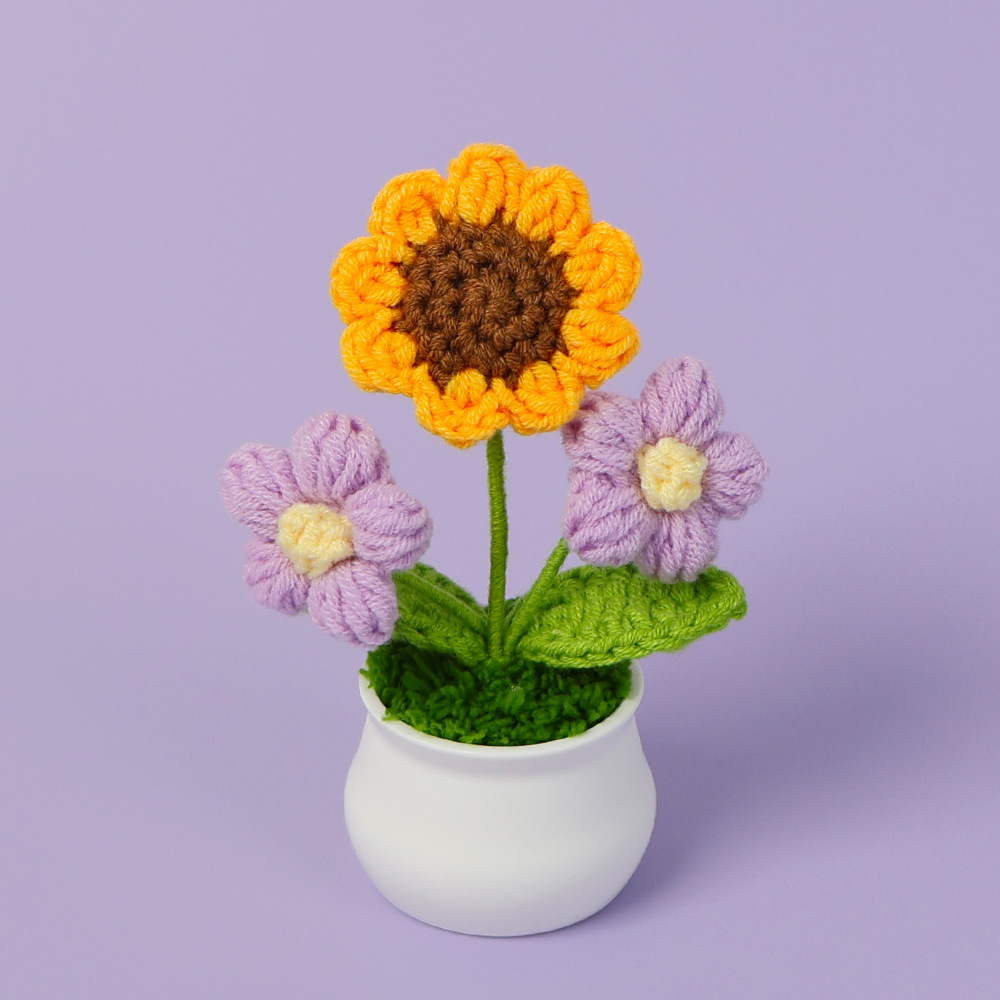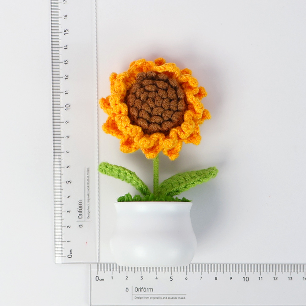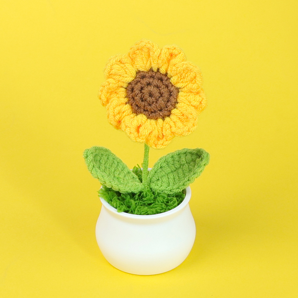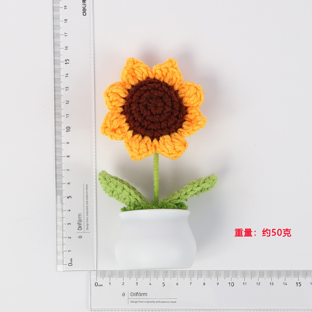 跨境毛线向日葵盆栽铃兰花勿忘我仿真花郁金香摆件高考毕业季礼物