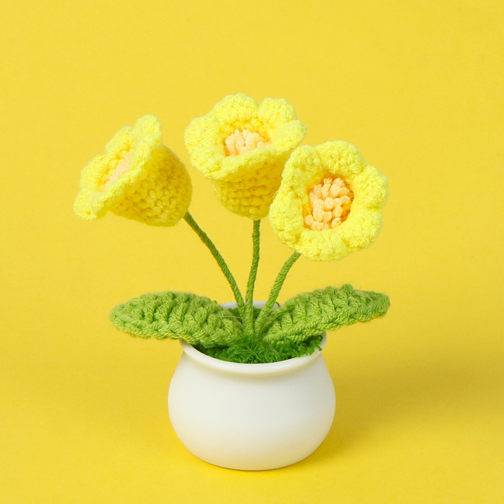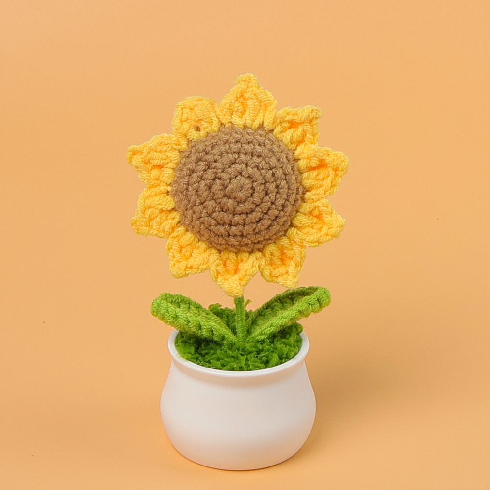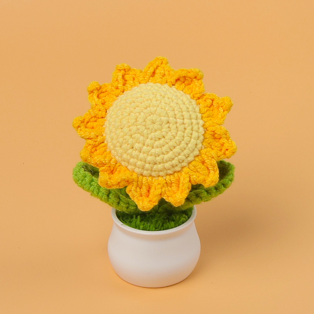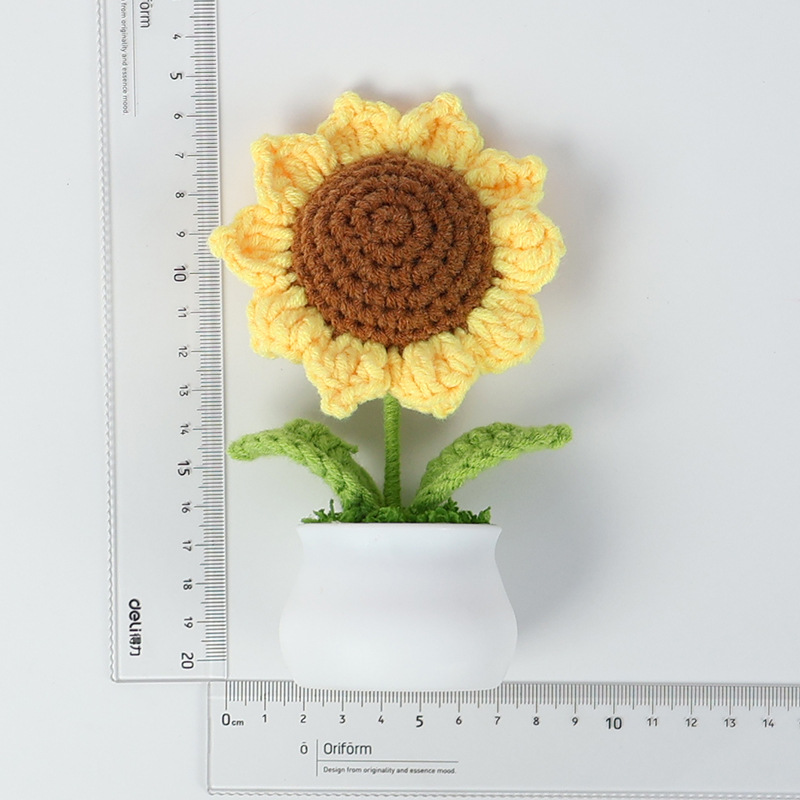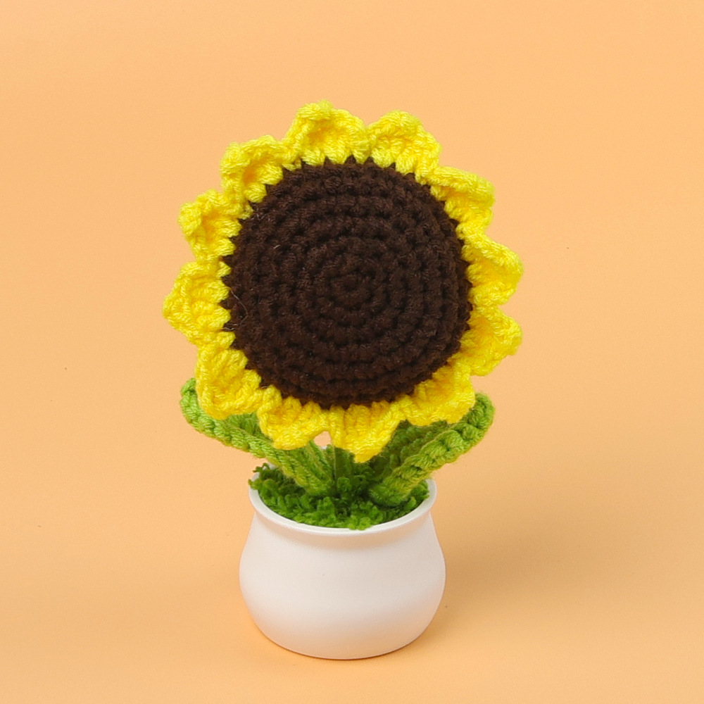 跨境毛线向日葵盆栽铃兰花勿忘我仿真花郁金香摆件高考毕业季礼物