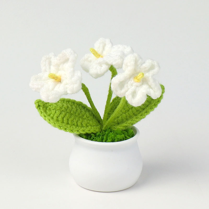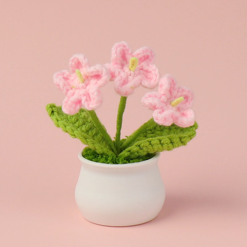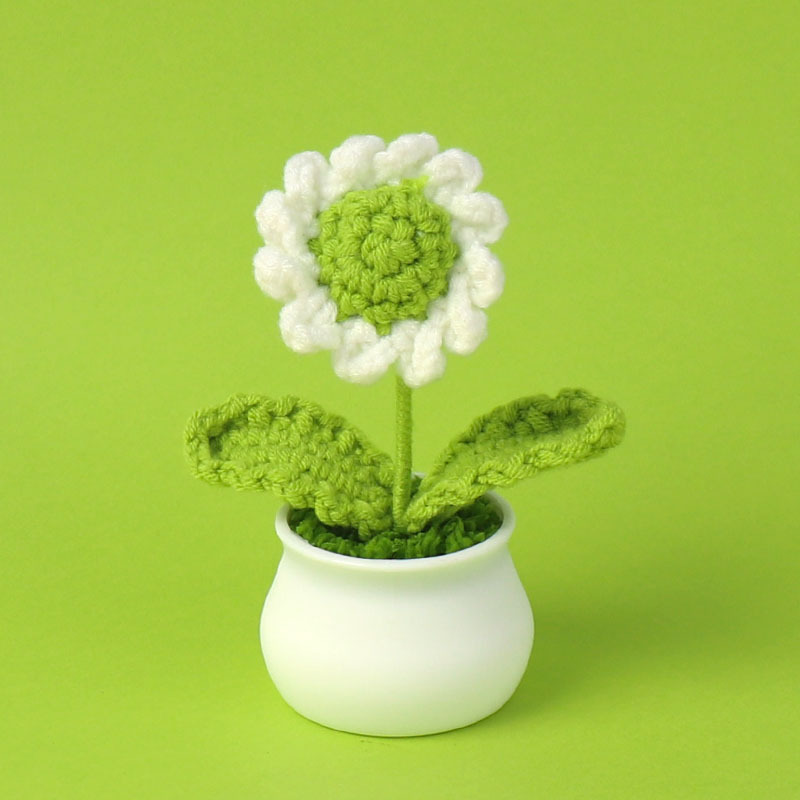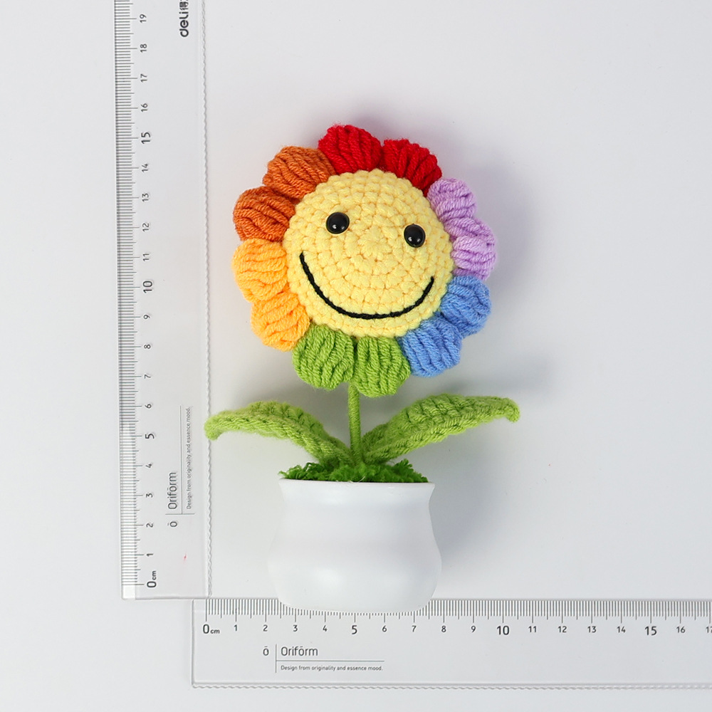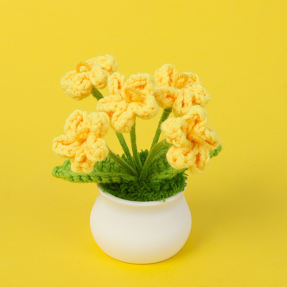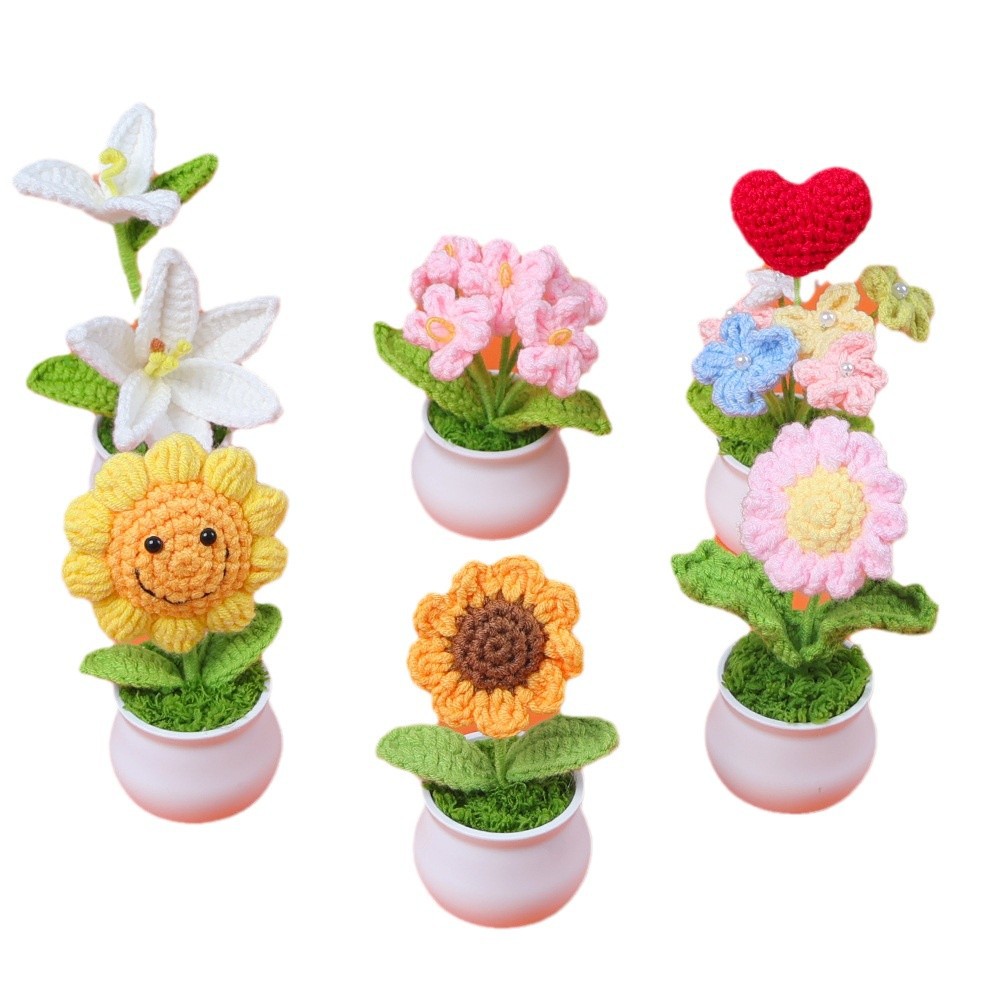 跨境毛线向日葵盆栽铃兰花勿忘我仿真花郁金香摆件高考毕业季礼物