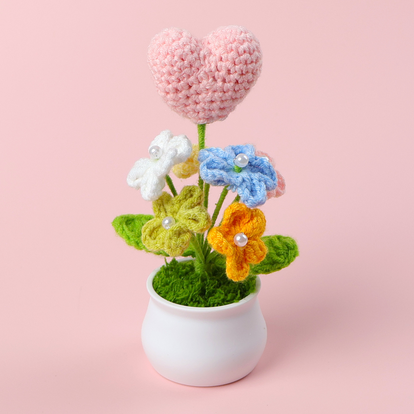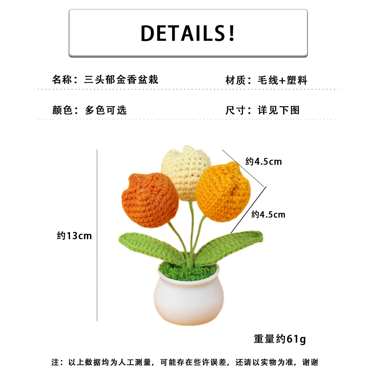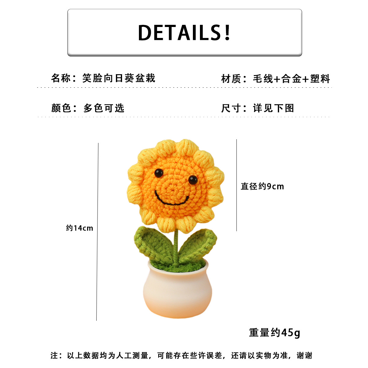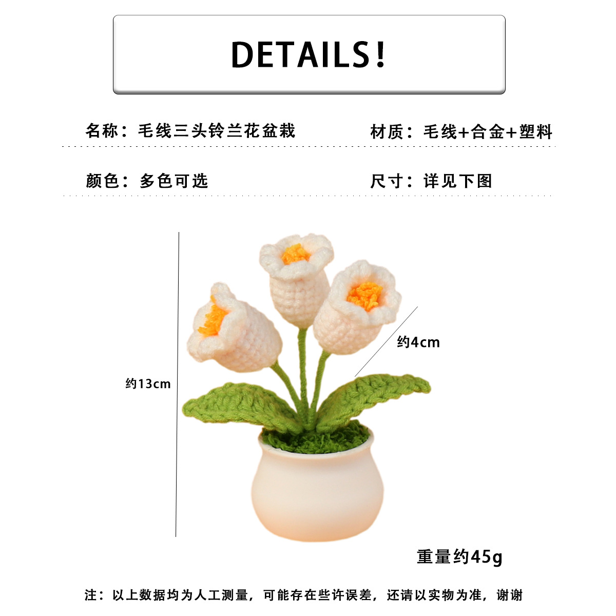 跨境毛线向日葵盆栽铃兰花勿忘我仿真花郁金香摆件高考毕业季礼物