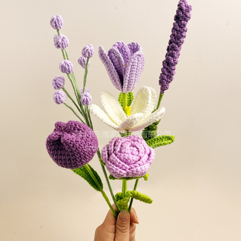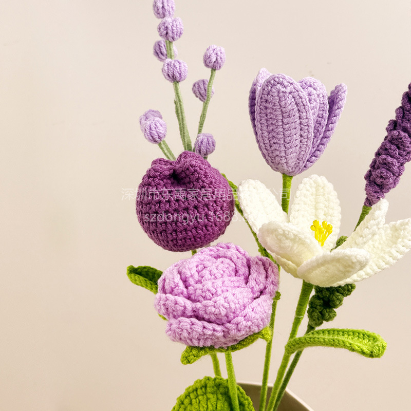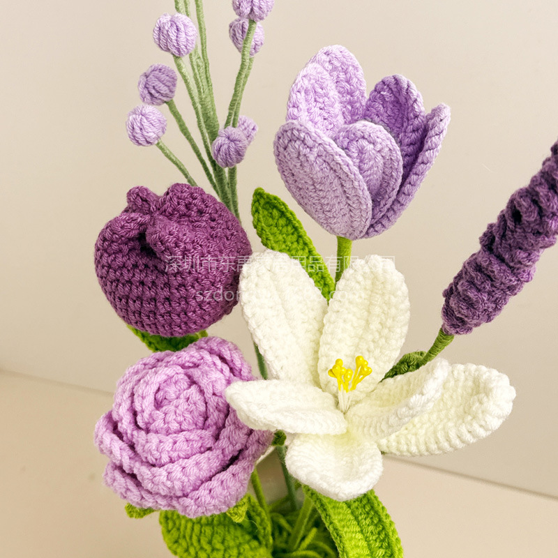 郁金香薰衣草玫瑰花手工钩针编织毛线仿真花创意家居装饰花束成品