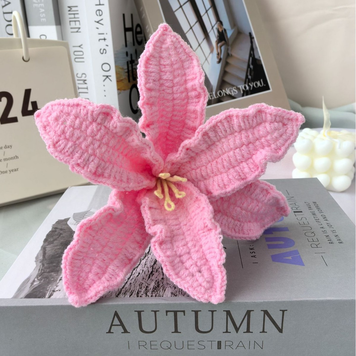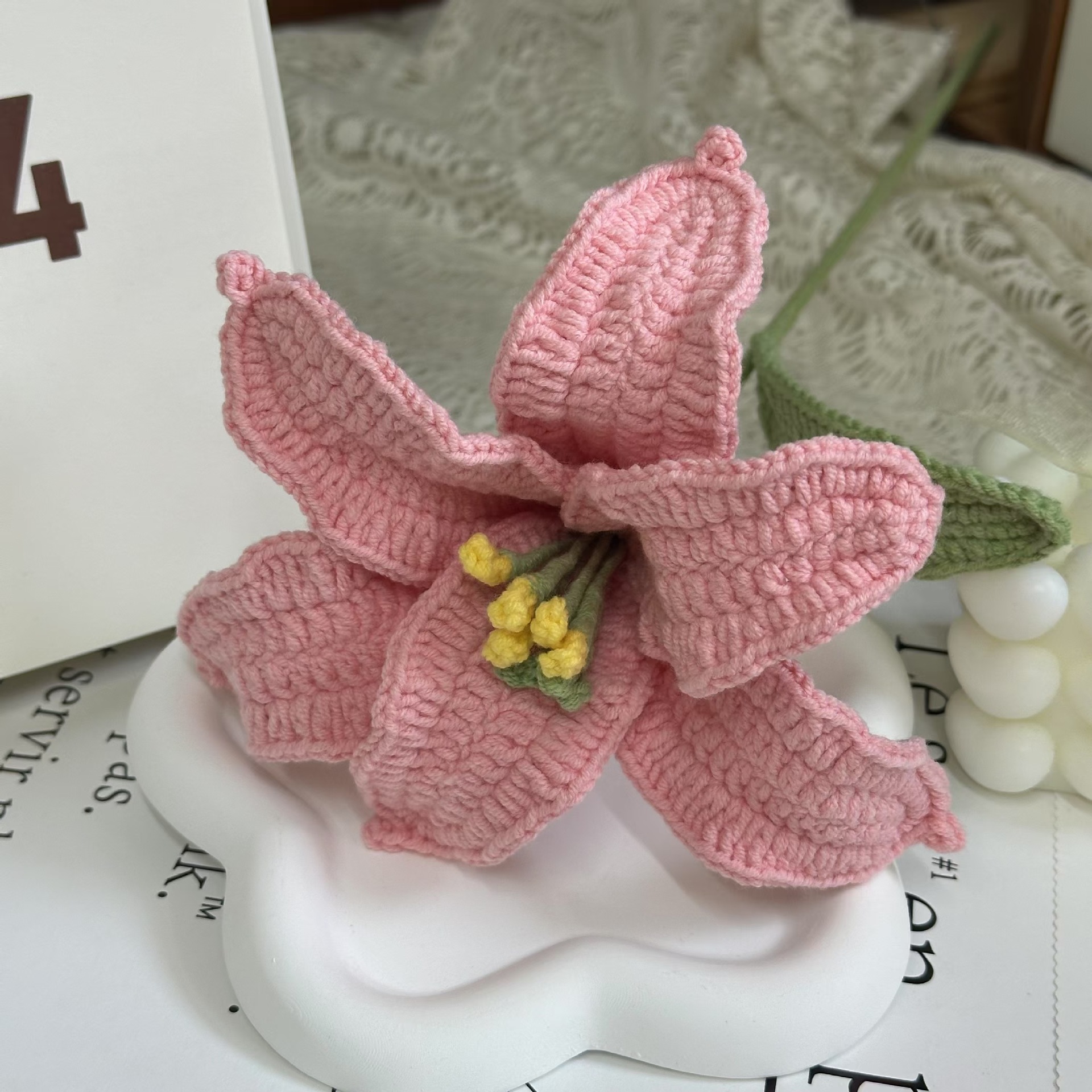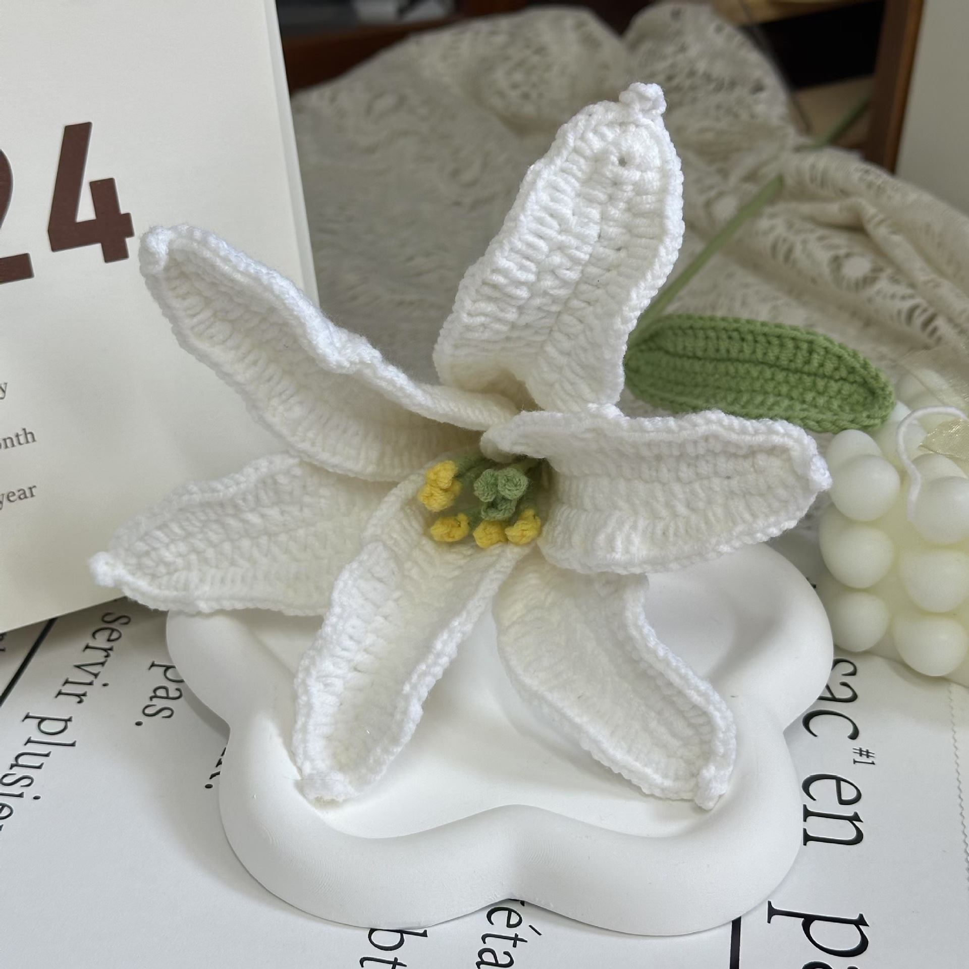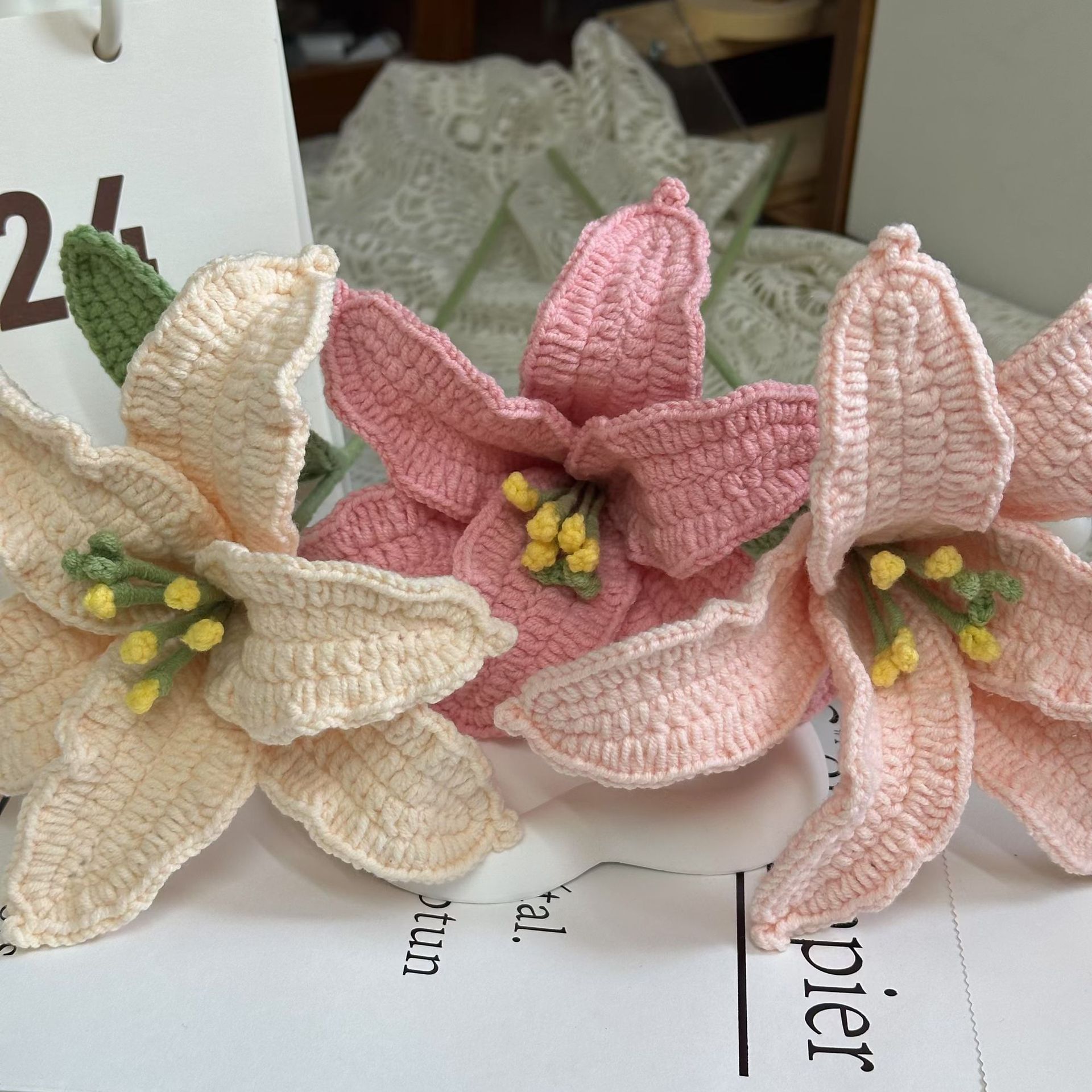 纯手工钩织百合针织花毛线花仿真花现货成品插瓶摆件搭配花束