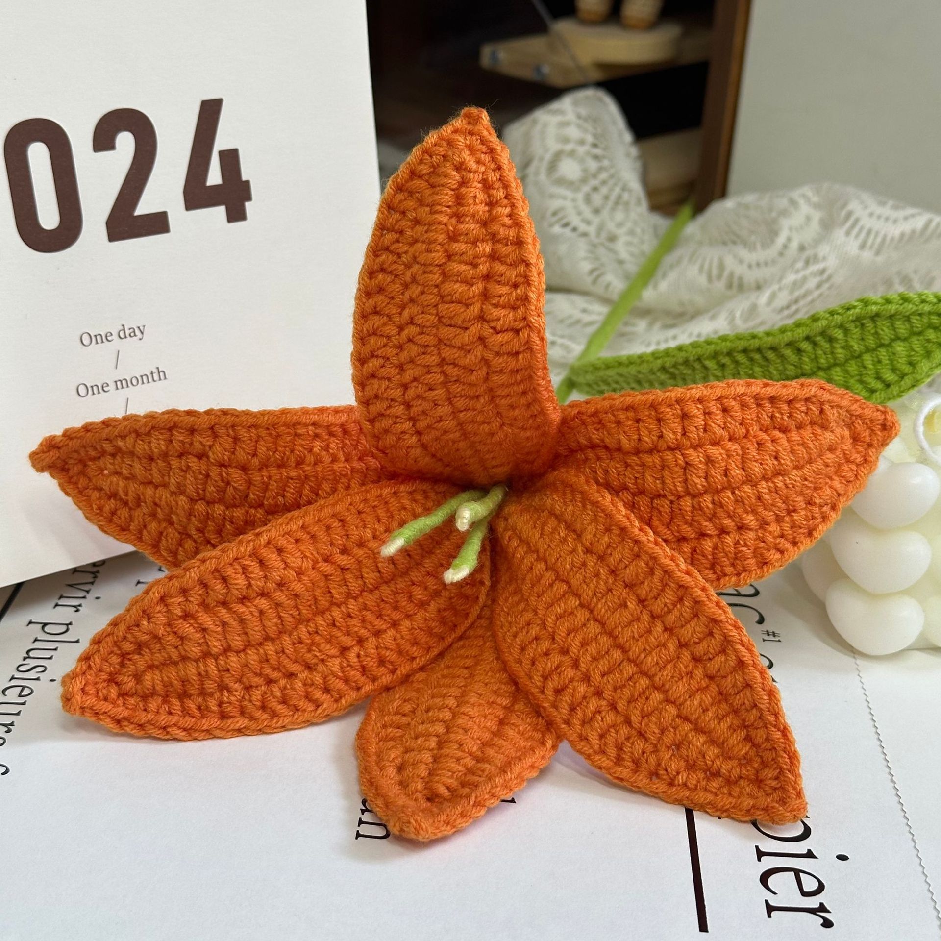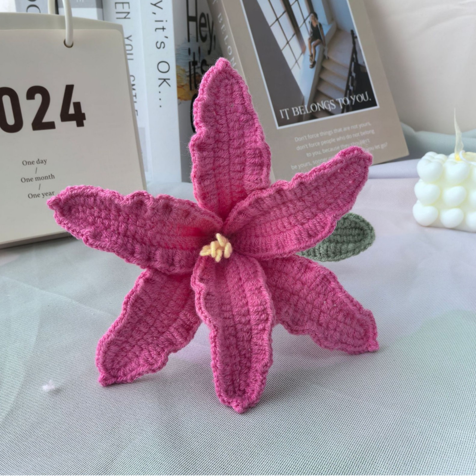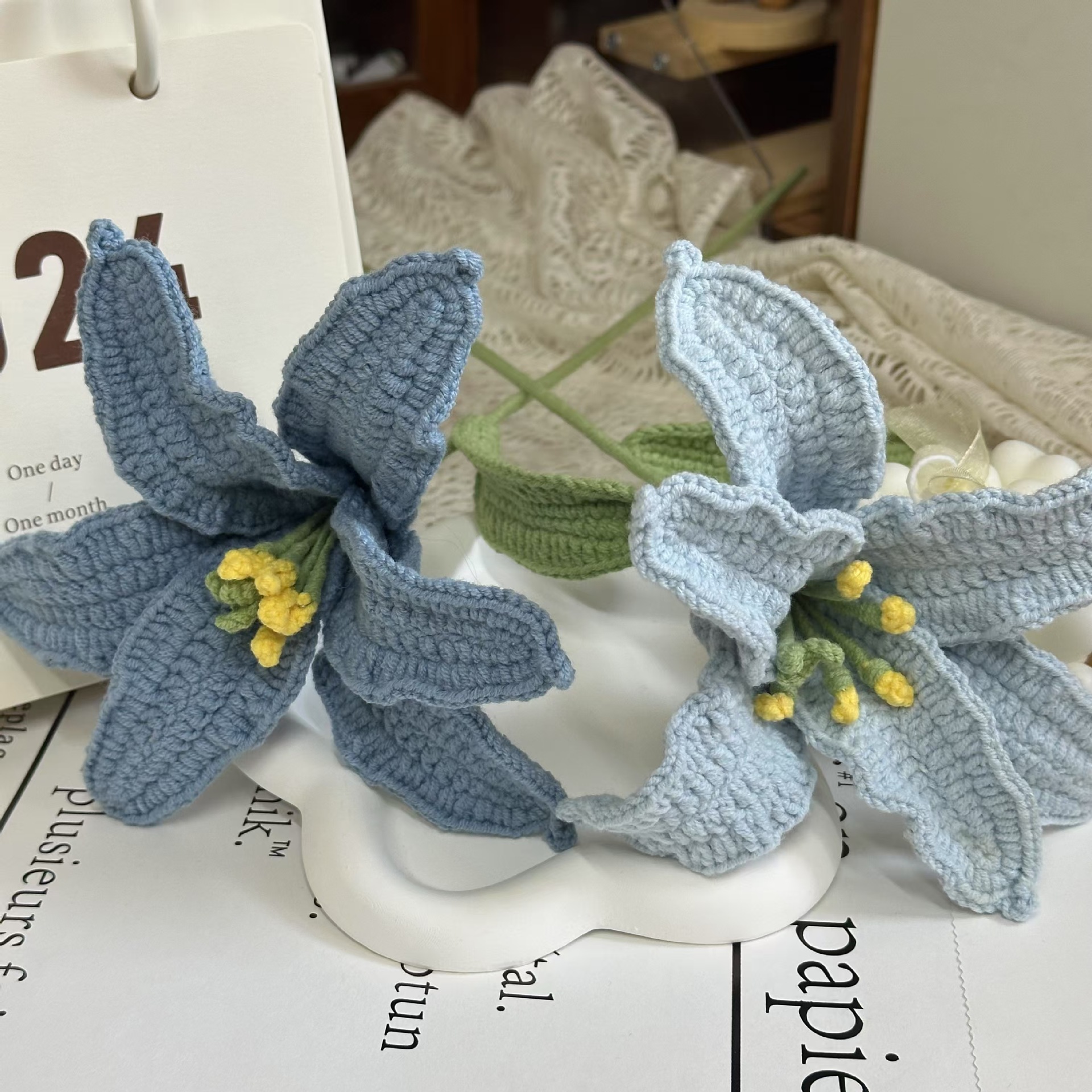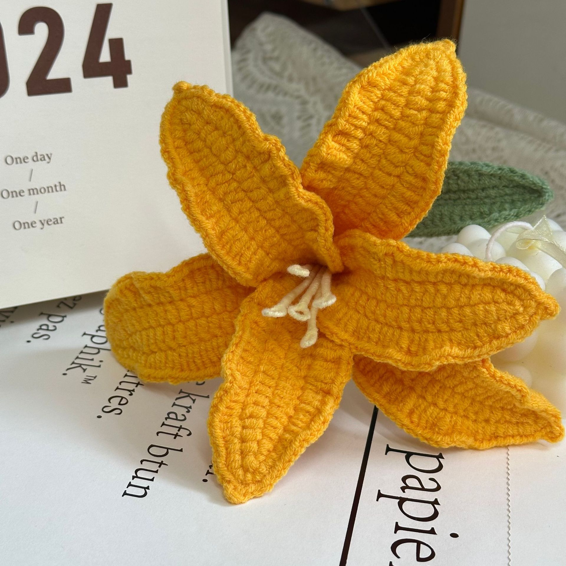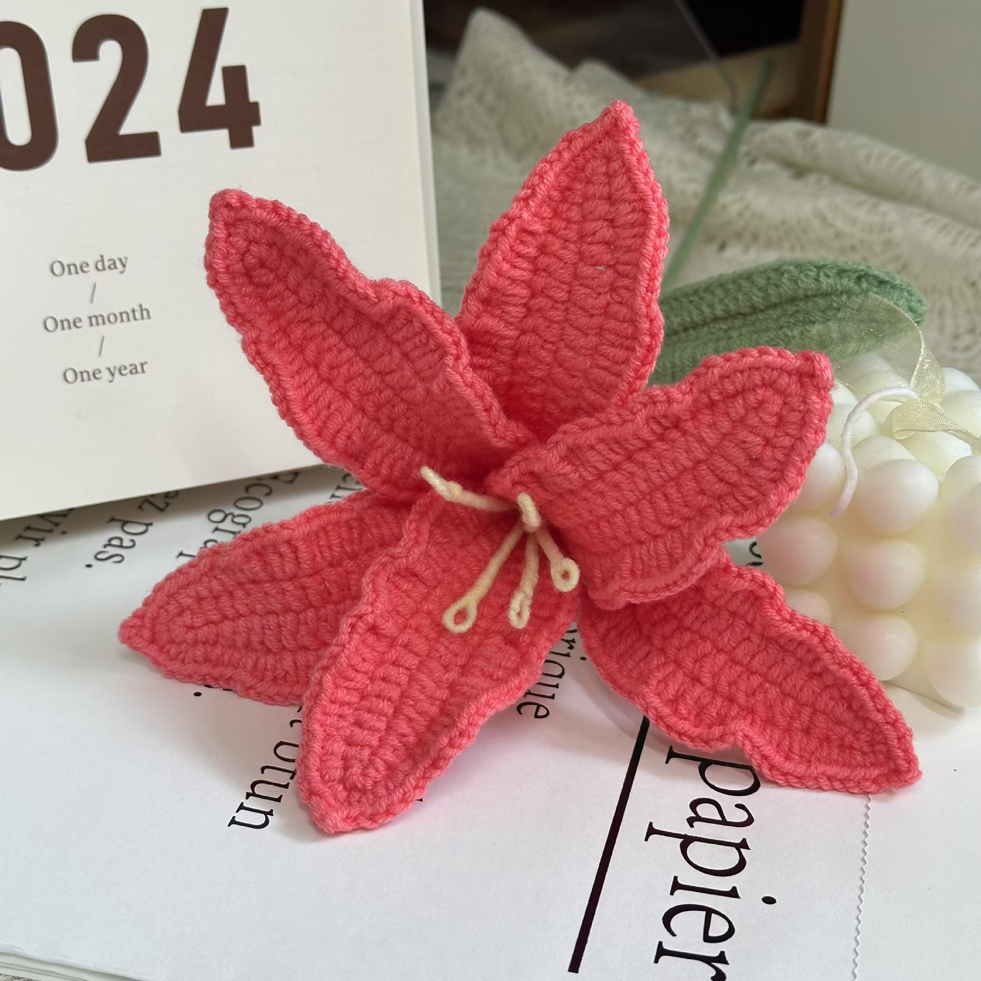 纯手工钩织百合针织花毛线花仿真花现货成品插瓶摆件搭配花束