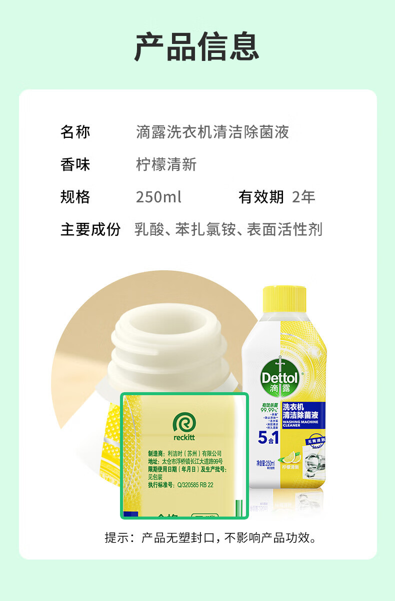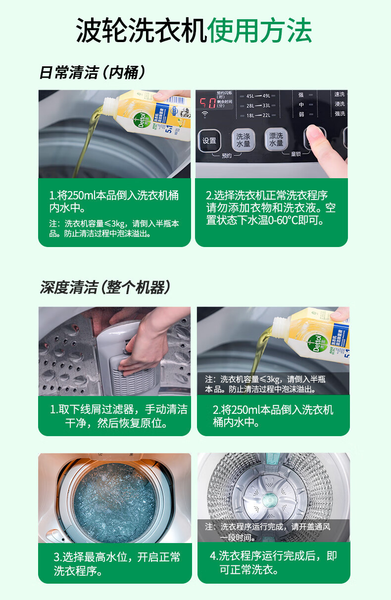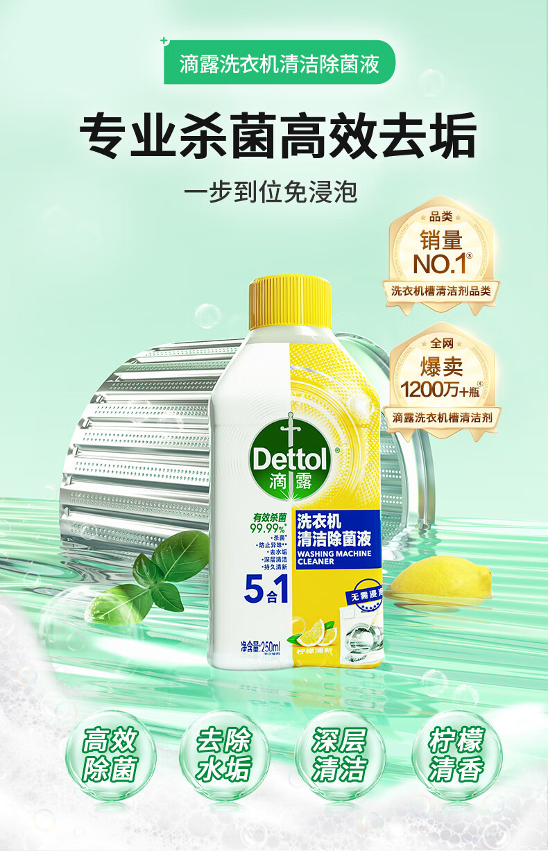 滴露洗衣机清洗剂清洁剂除菌液消毒液杀菌除垢250ml清洁劳保福利