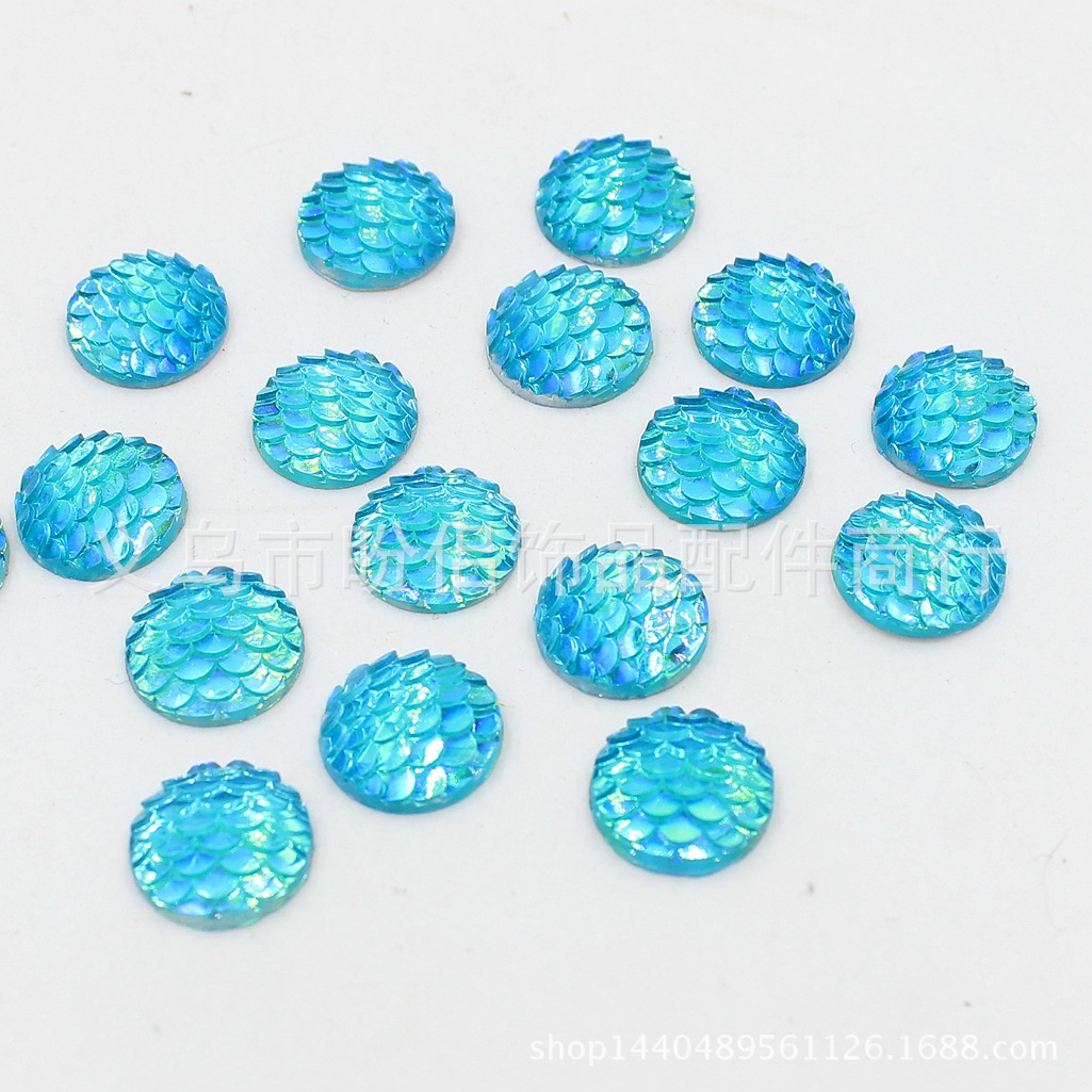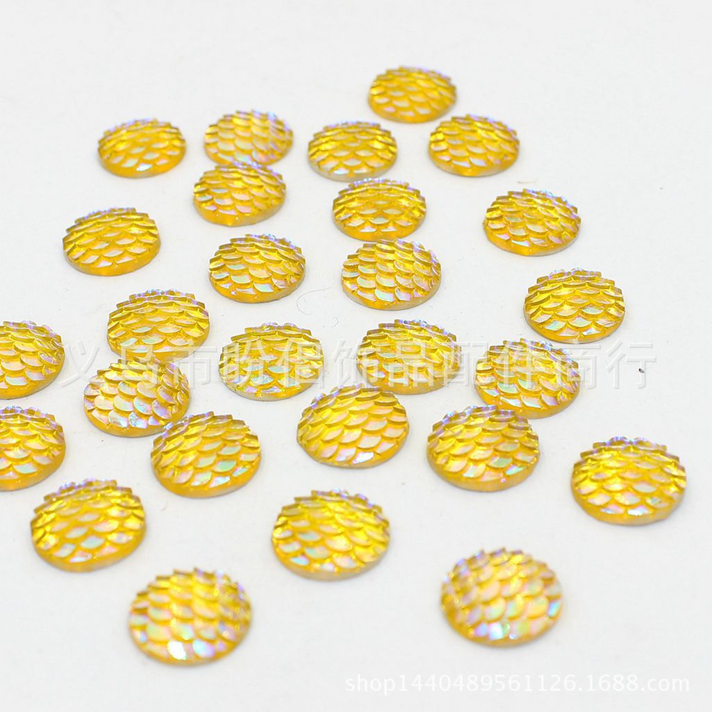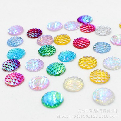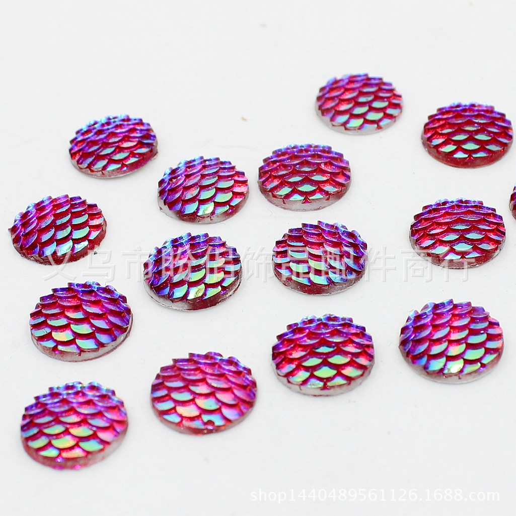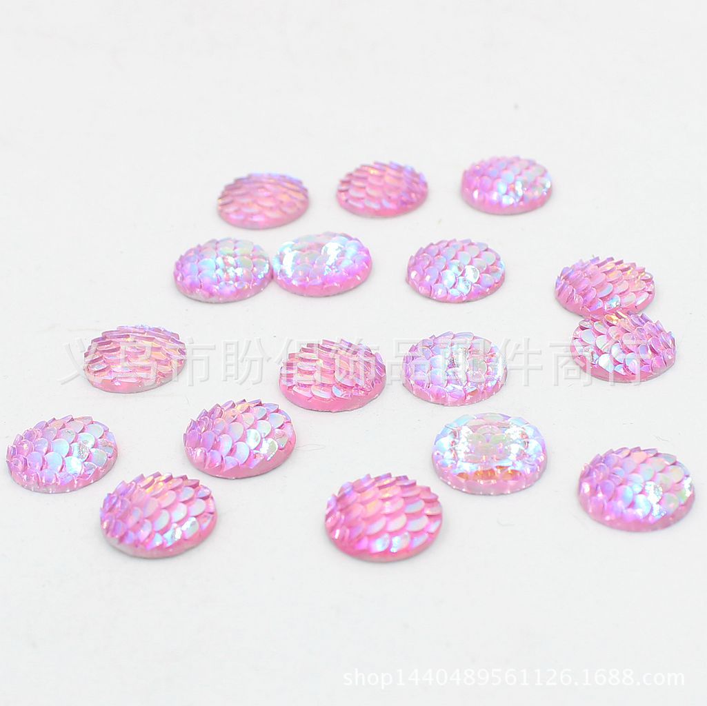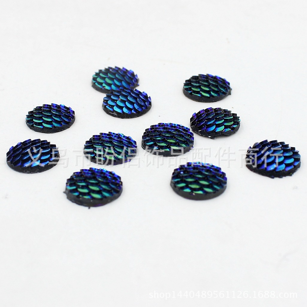 12mm 晶簇 树脂钻圆形鱼鳞片 光滑镀AB彩钻 蛇纹图案饰品配件