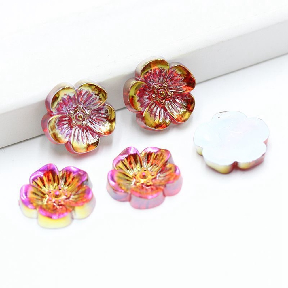 15mm亚克力镀ab彩梅花平底钻立体幻彩五瓣花diy发夹发饰装饰材料