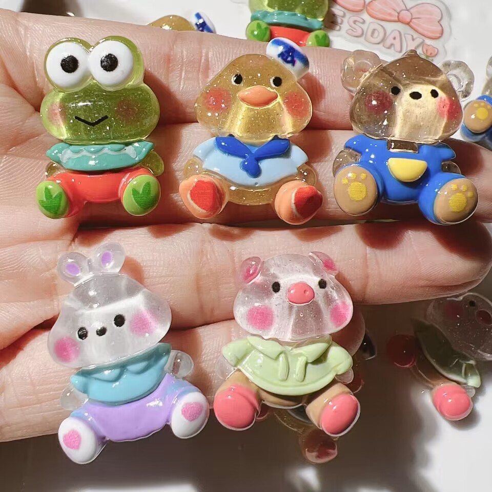 透色卡通坐坐小动物diy饰品树脂配件手工奶油胶发夹手机壳洞洞鞋