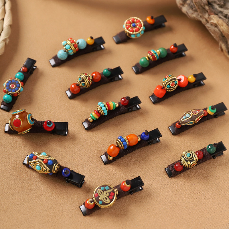 藏式民族风发夹复古小众精致手工编织异域风藏族女刘海侧边夹发饰