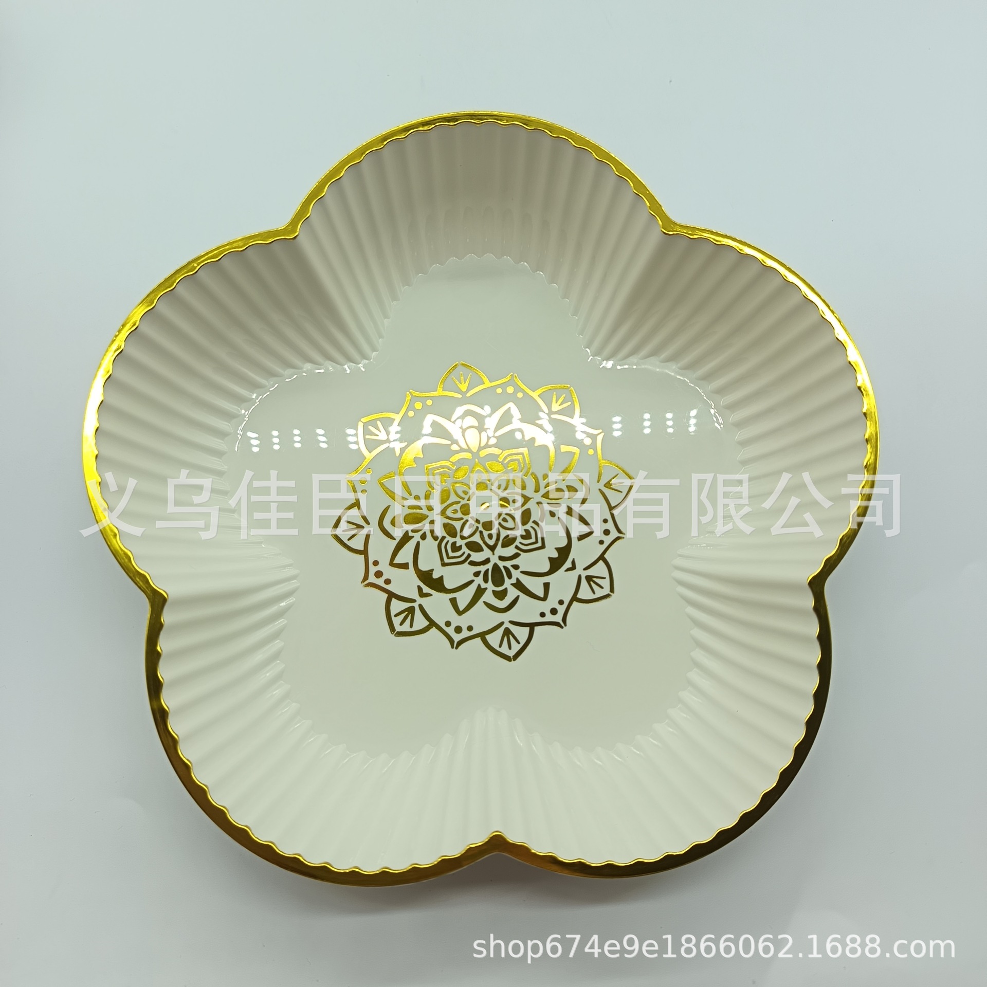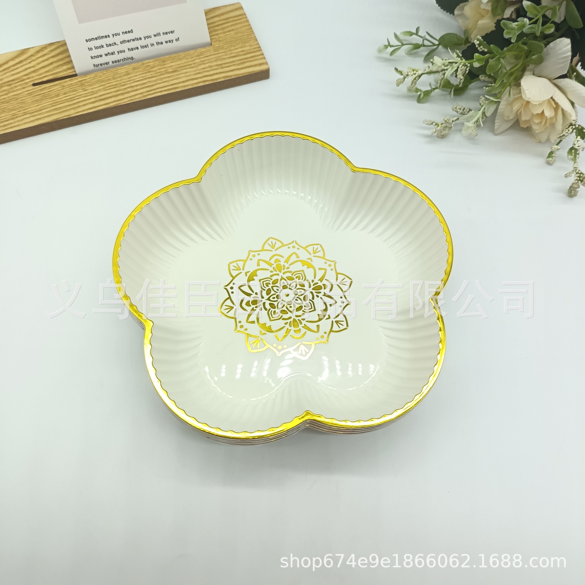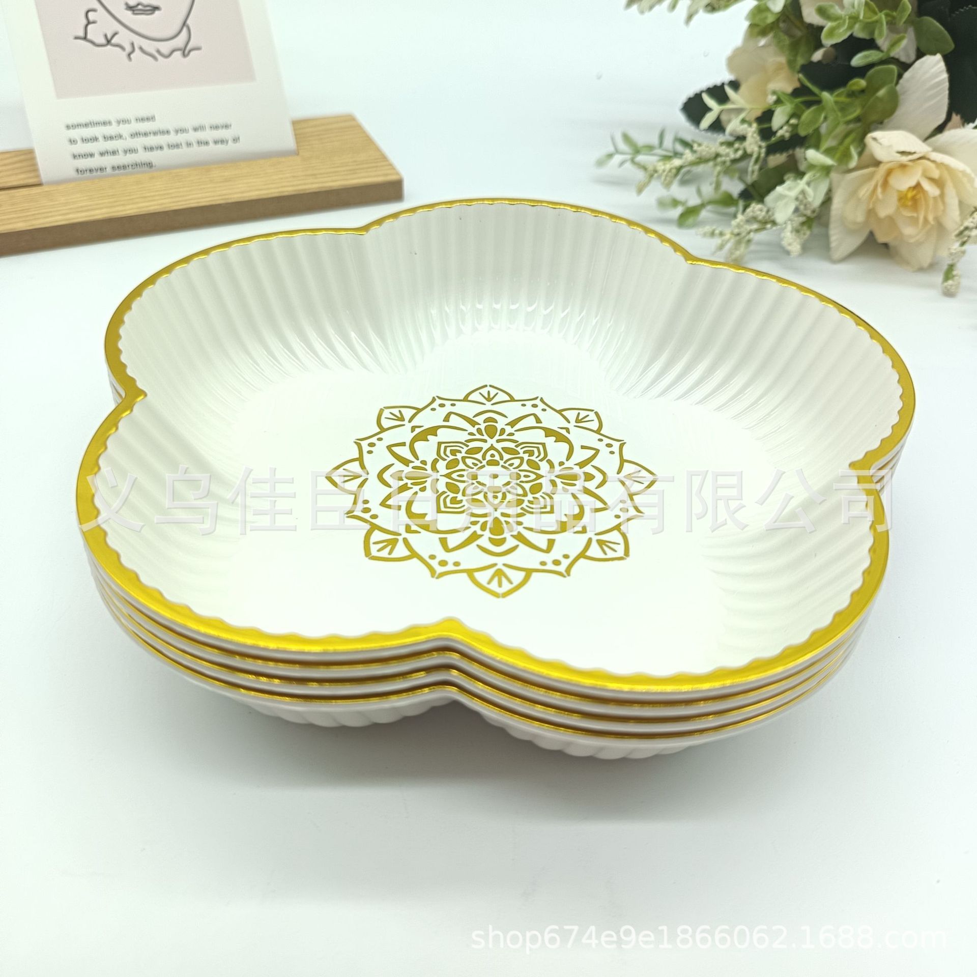 外贸PET金边轻奢零食盘子沙拉碗高颜值水果盘客厅茶几摆放盘果盘