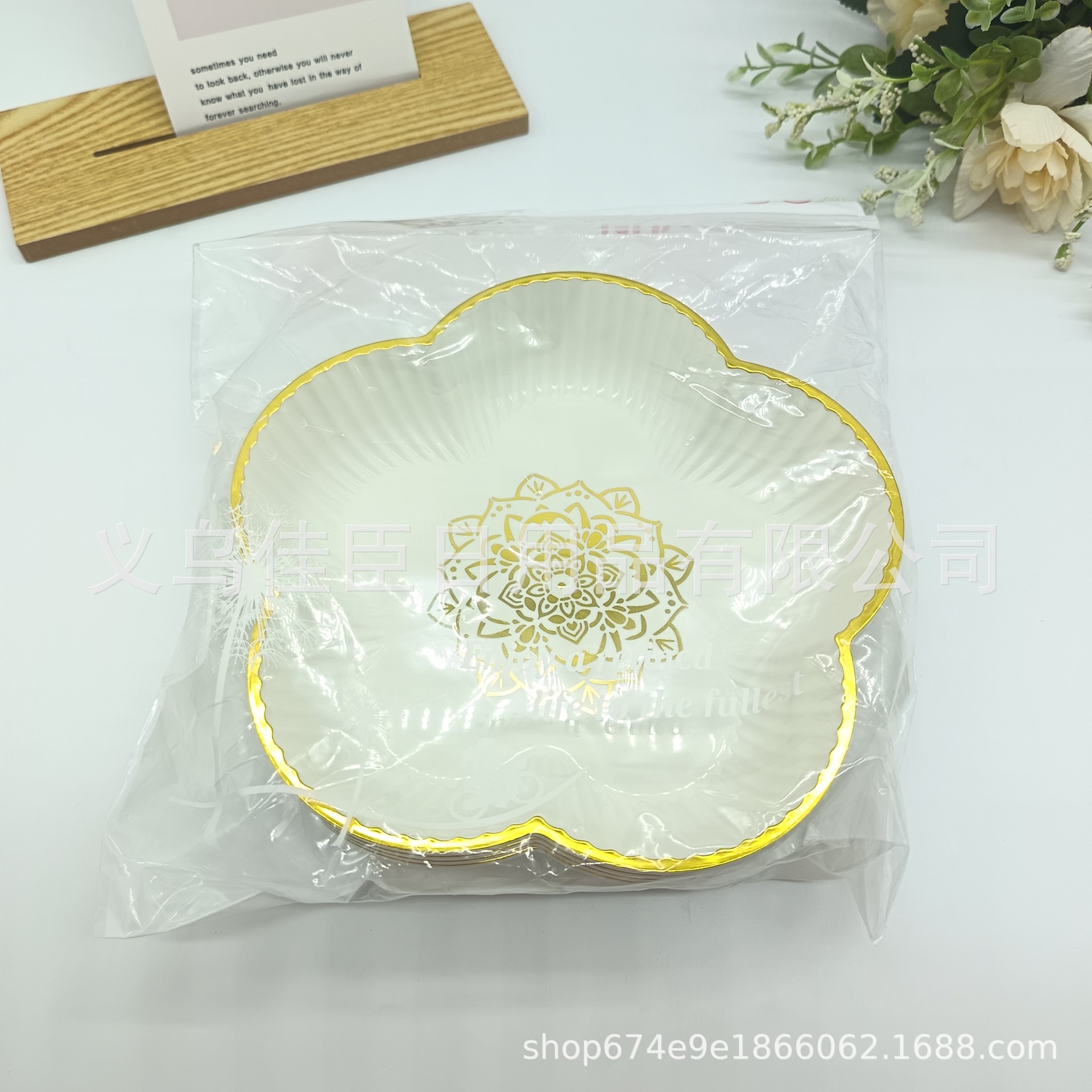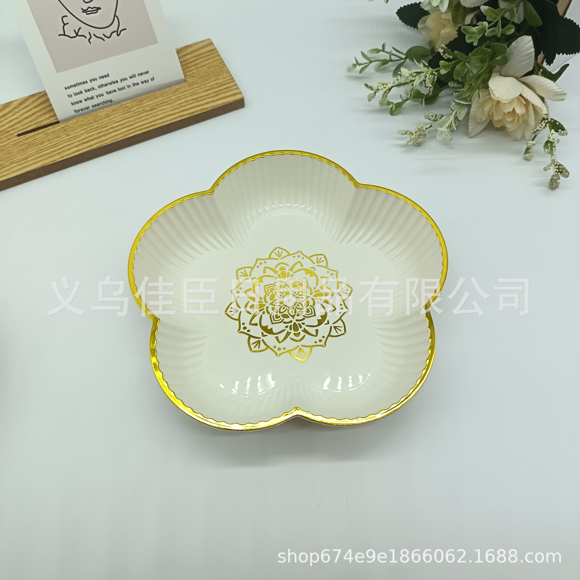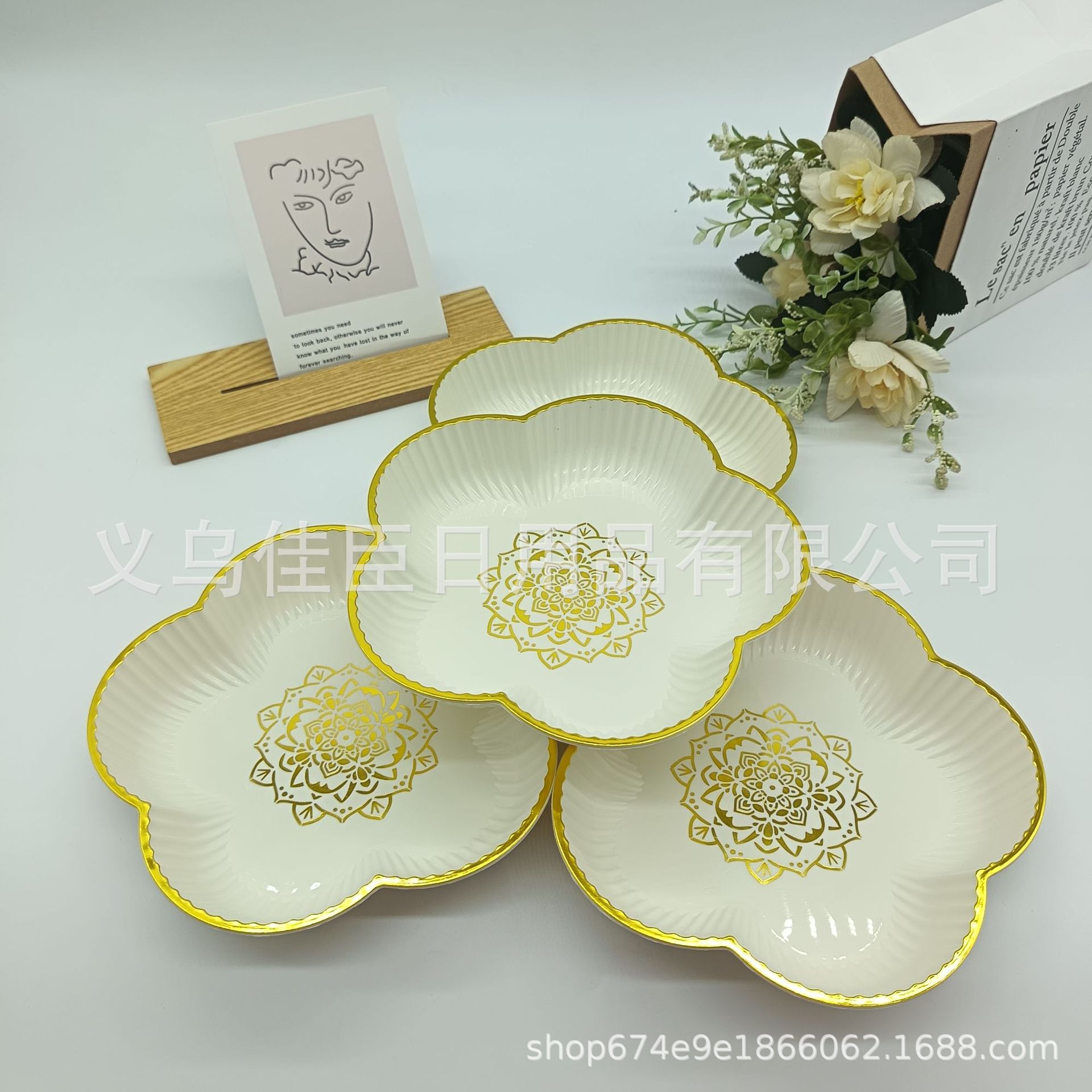 外贸PET金边轻奢零食盘子沙拉碗高颜值水果盘客厅茶几摆放盘果盘