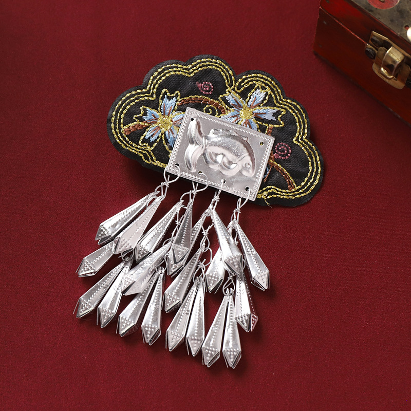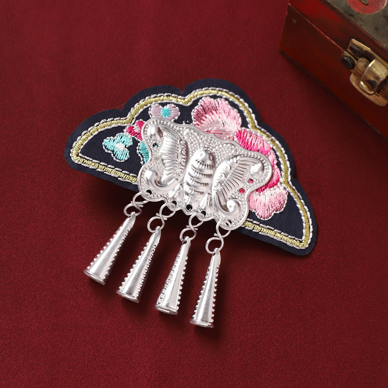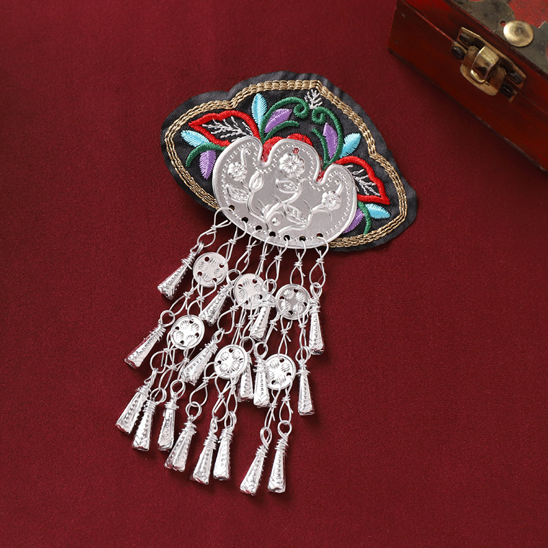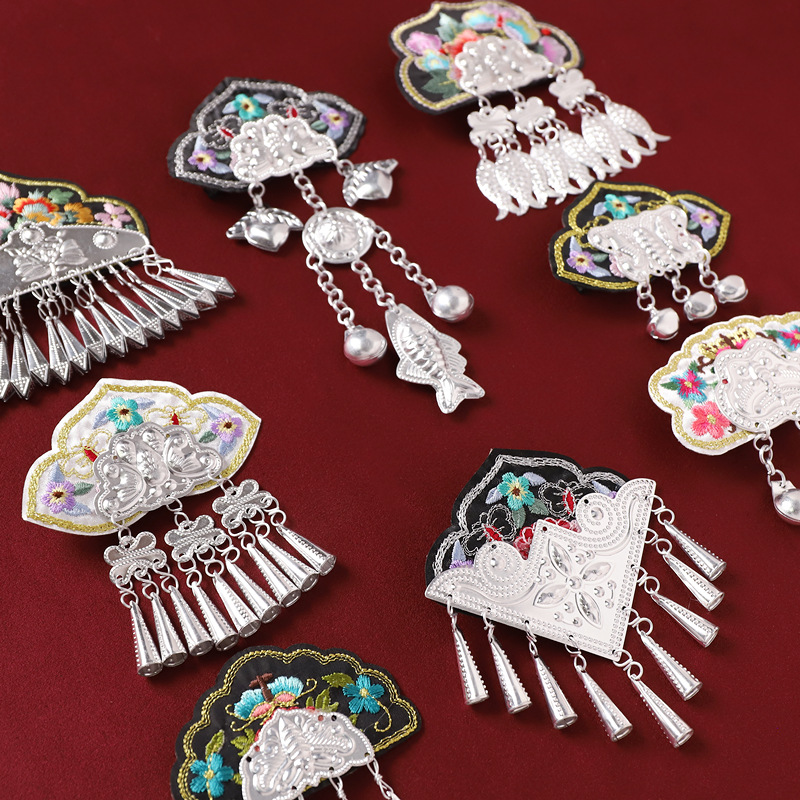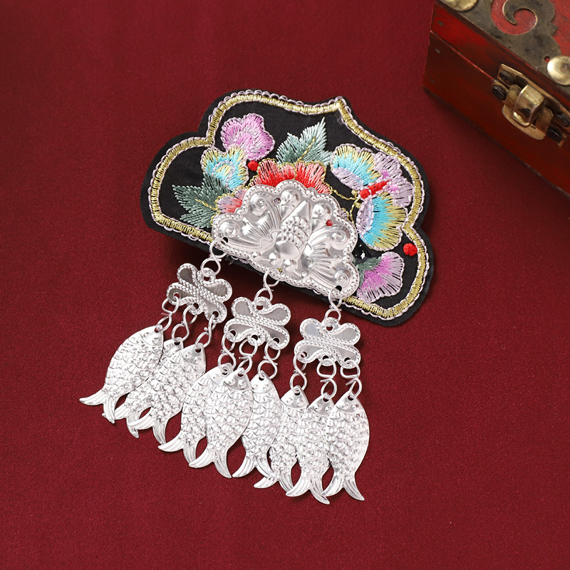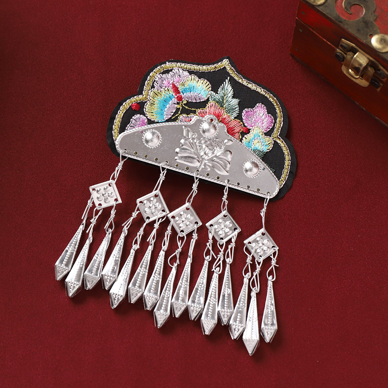 新中式民族风刺绣发夹手工苗绣苗银流苏苗疆异域设计感古风发饰女
