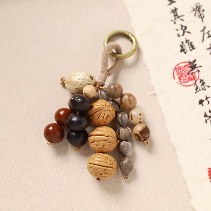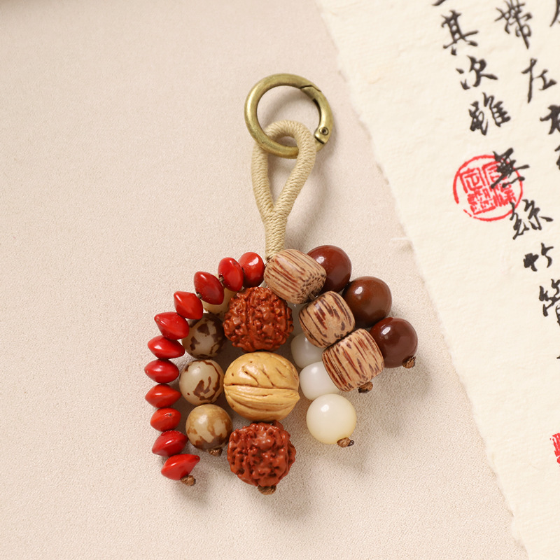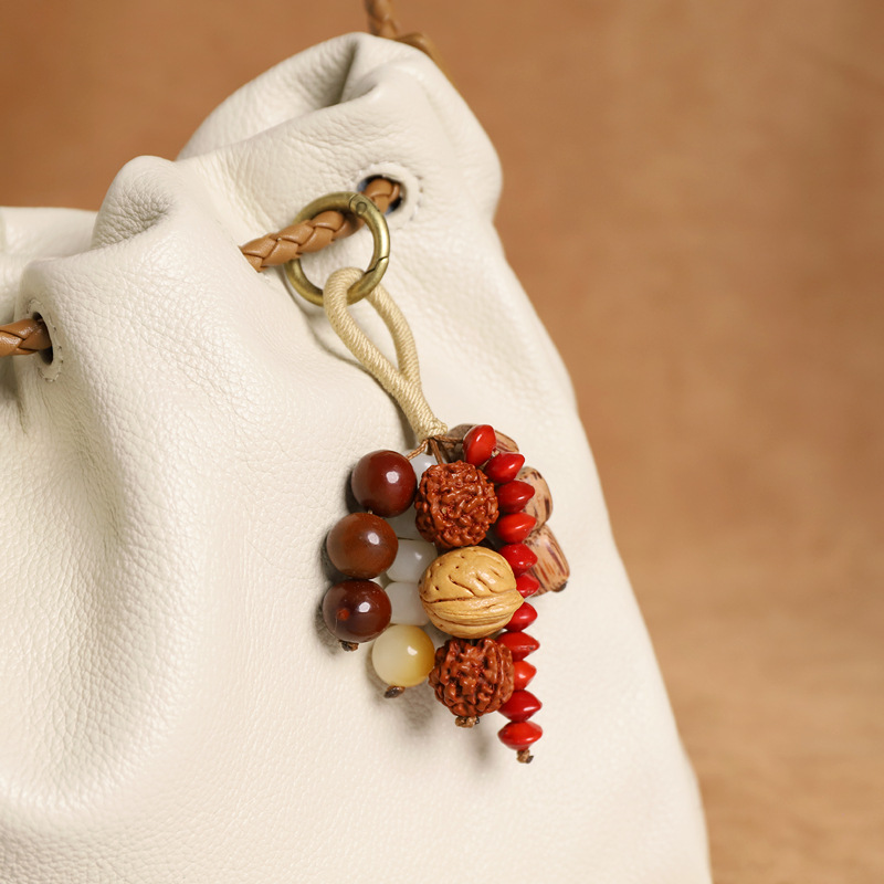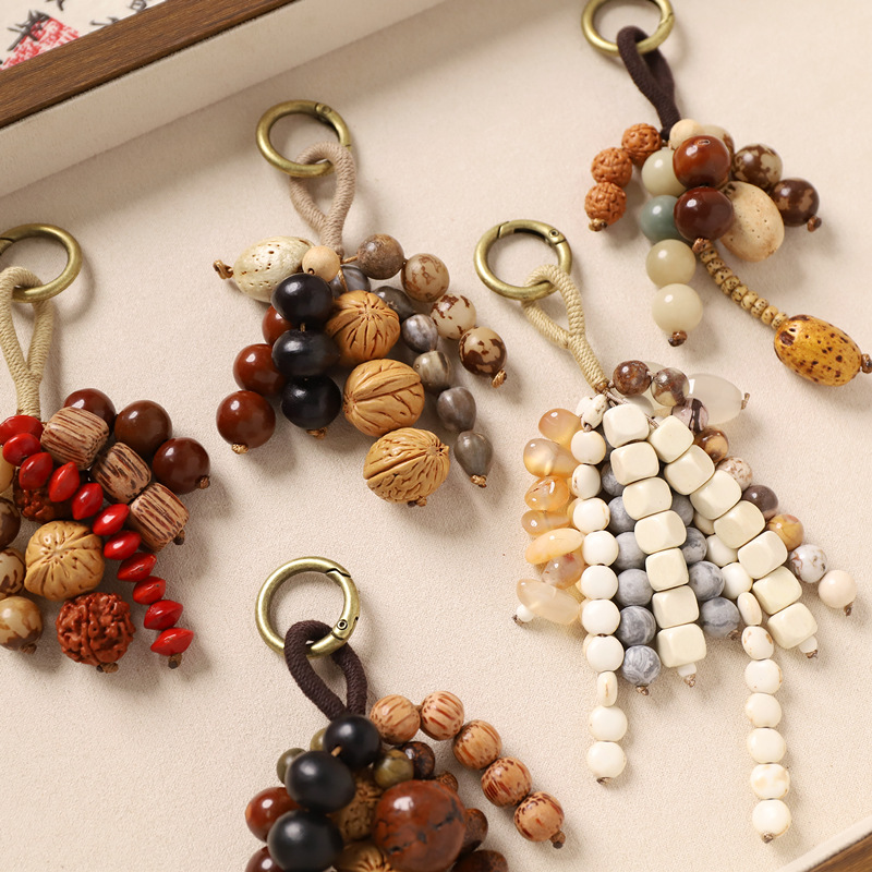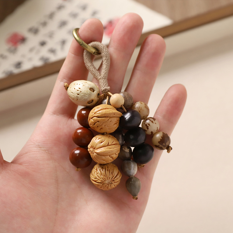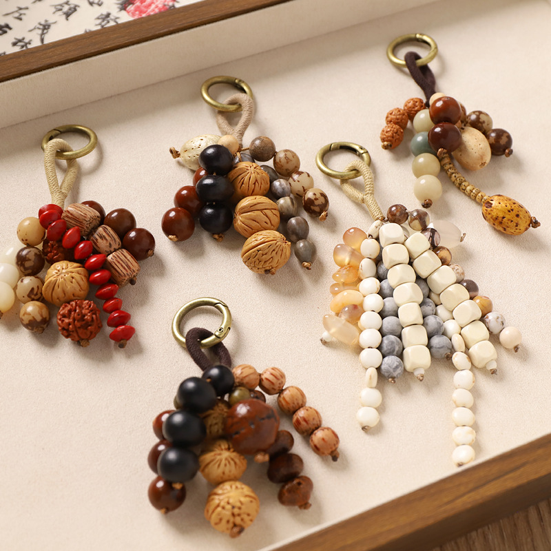 新中式满愿种子串包包挂件手工编织天然菩提钥匙扣文艺复古包挂饰